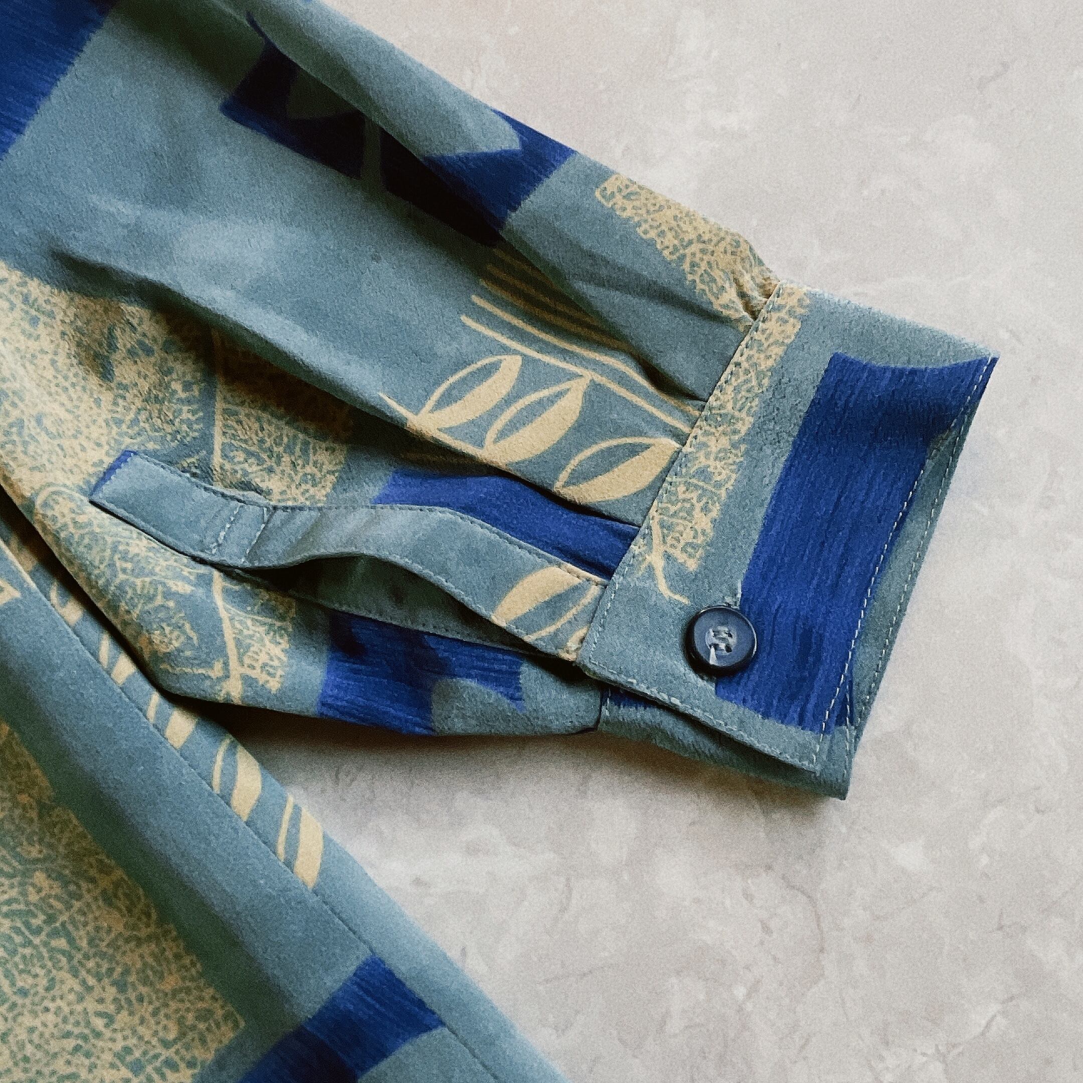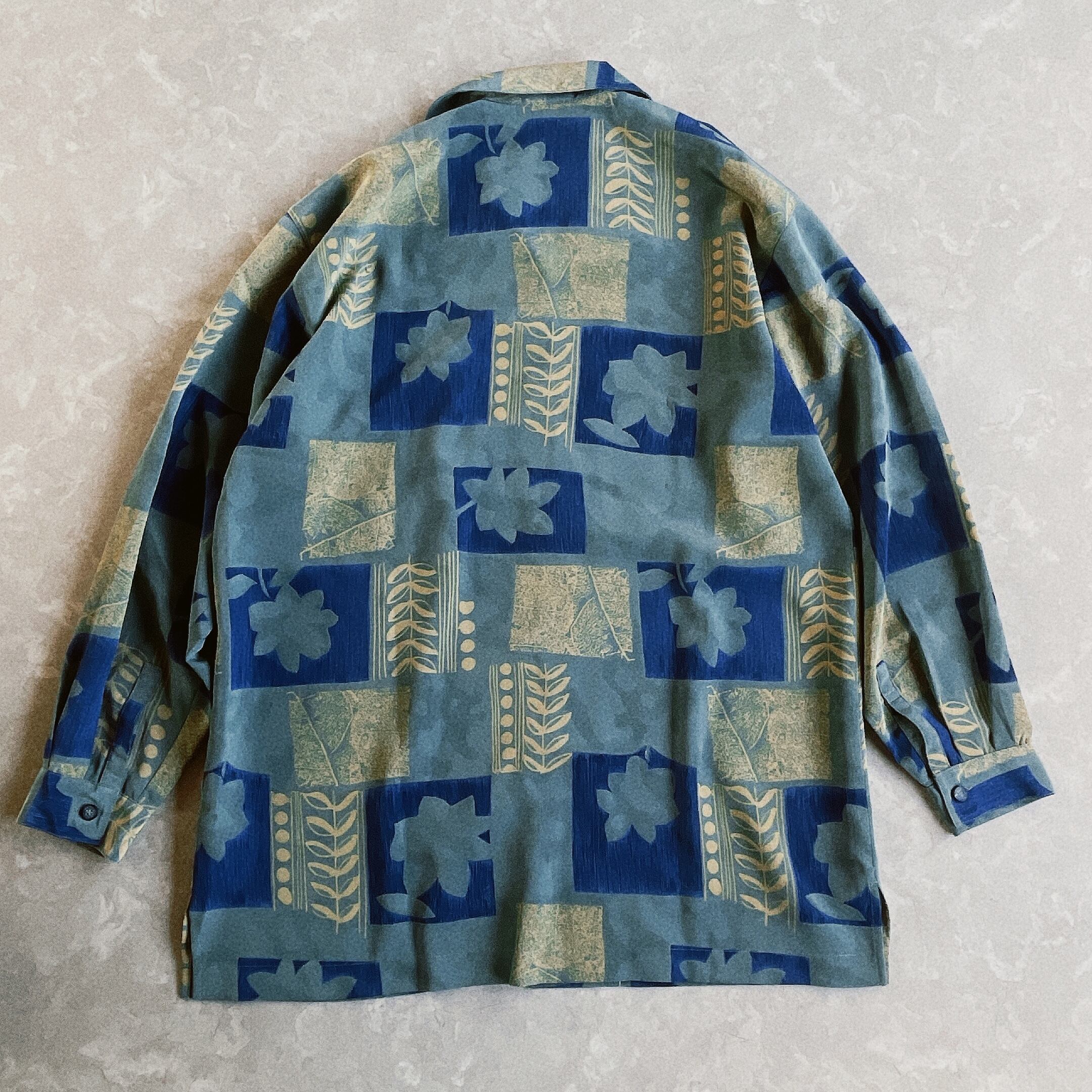 used レトロ 青系 総柄 ブラウス 古着 ヴィンテージ vintage