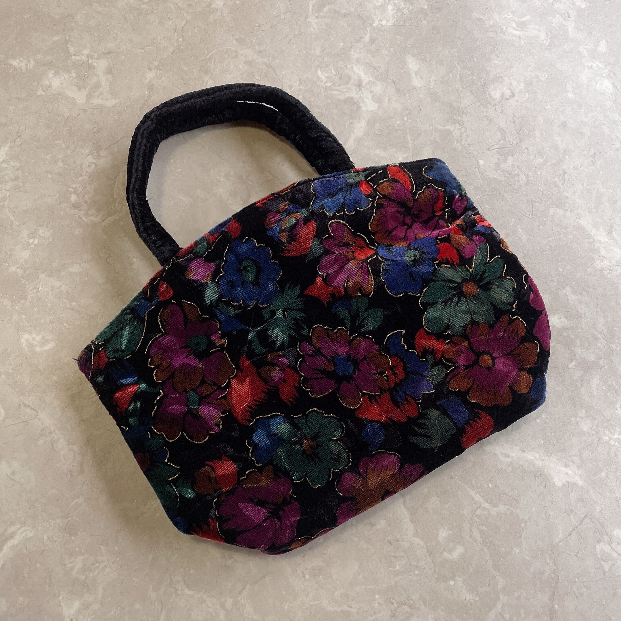 used レトロ ベロア 花柄 バッグ 古着 ヴィンテージ vintage