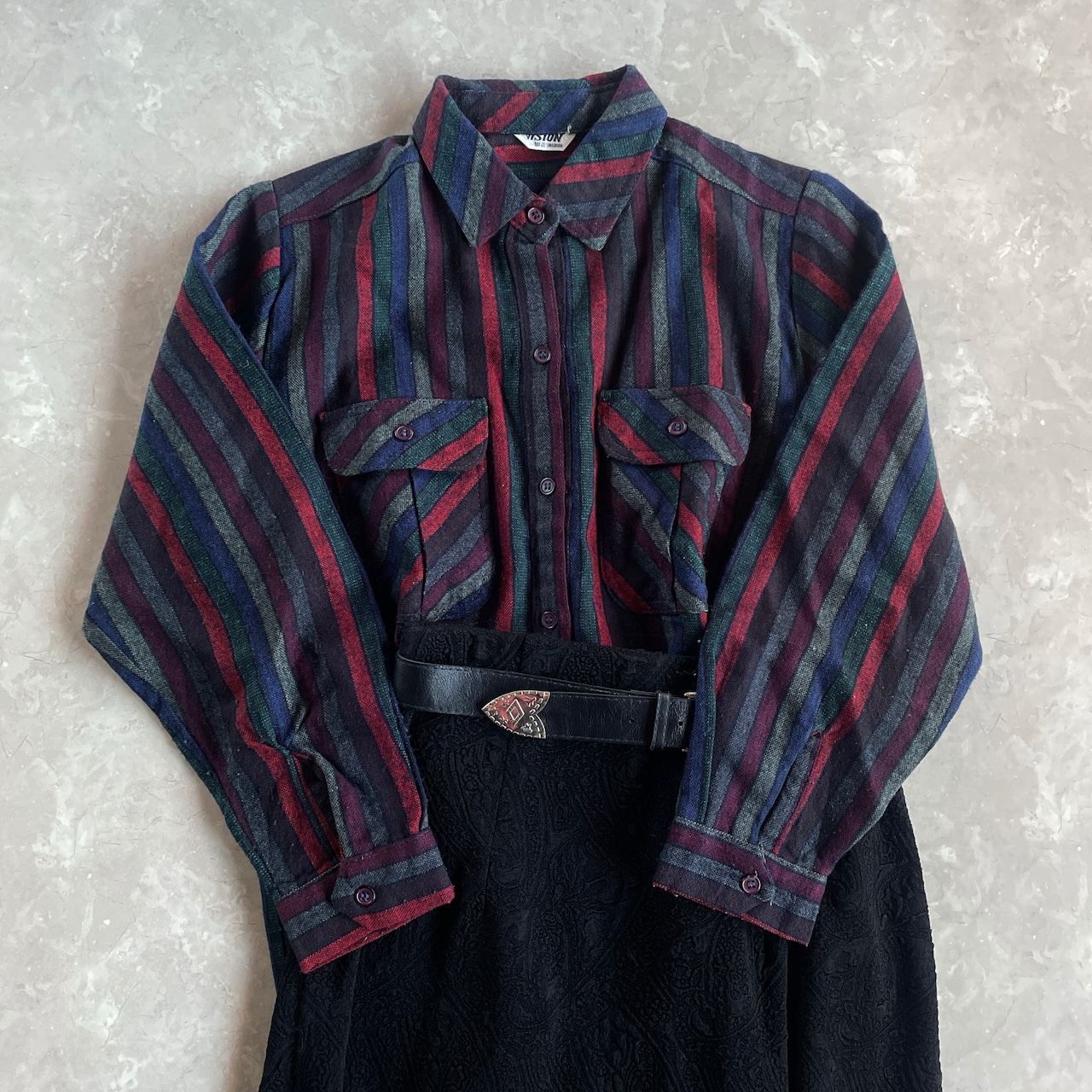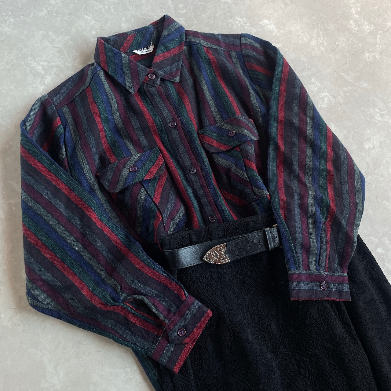 【SALE】used レトロ マルチストライプ シャツ 古着 ヴィンテージ vintage