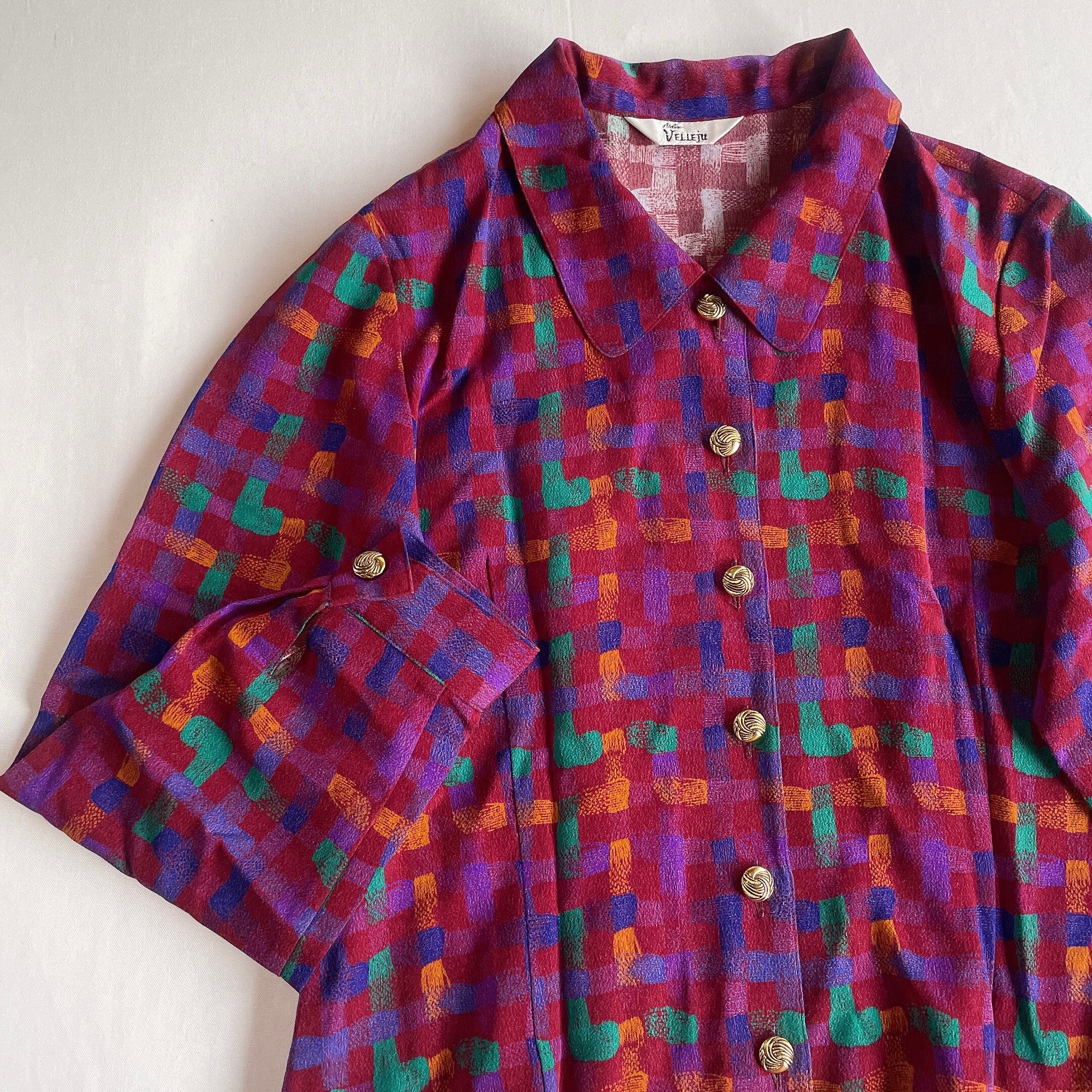 used レトロ 総柄 金ボタン ブラウス 古着 ヴィンテージ vintage