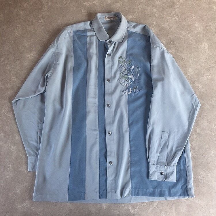 used レトロ 青系 刺繍 シャツ 古着 ヴィンテージ vintage