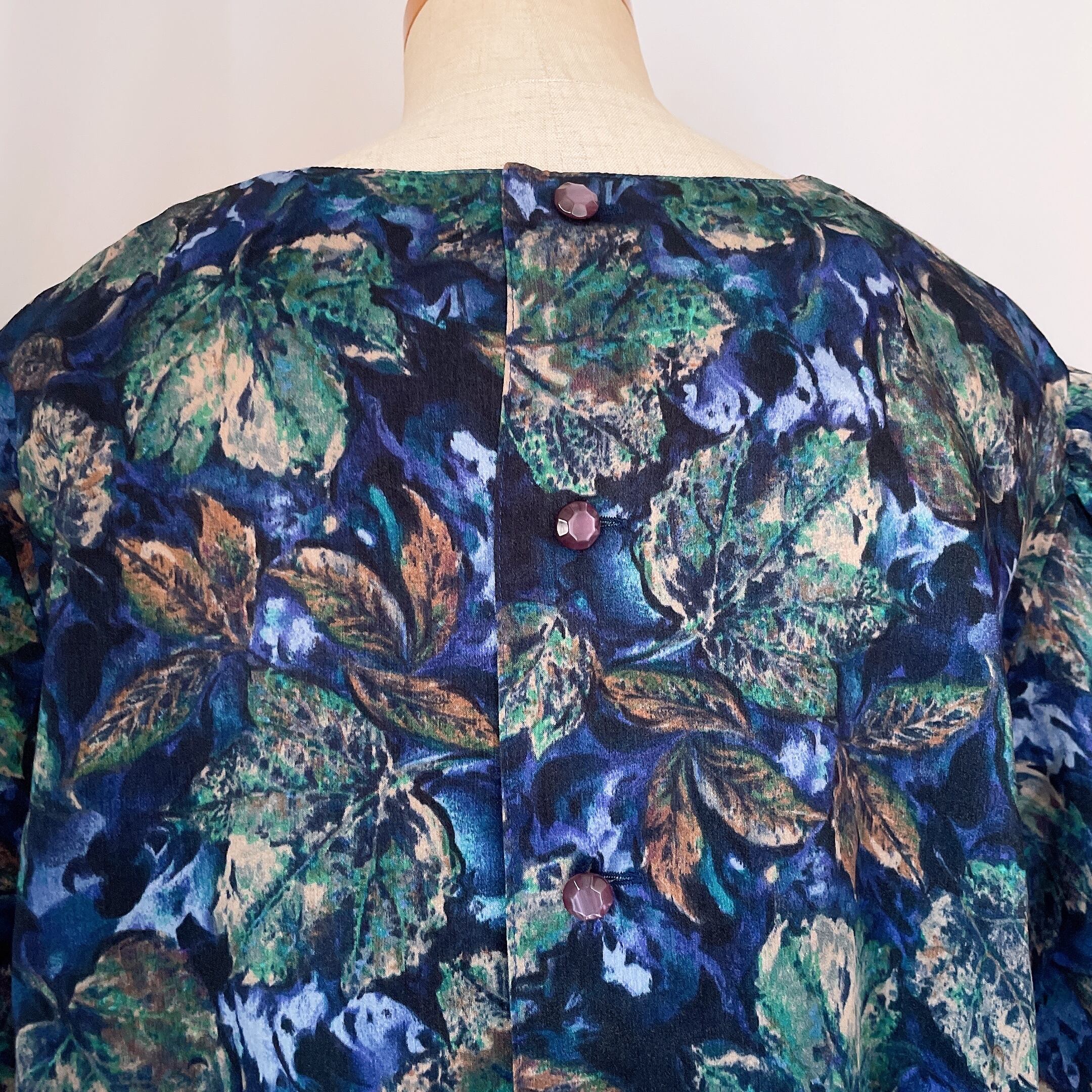 used レトロ ブルー系 総柄 トップス 古着 ヴィンテージ vintage