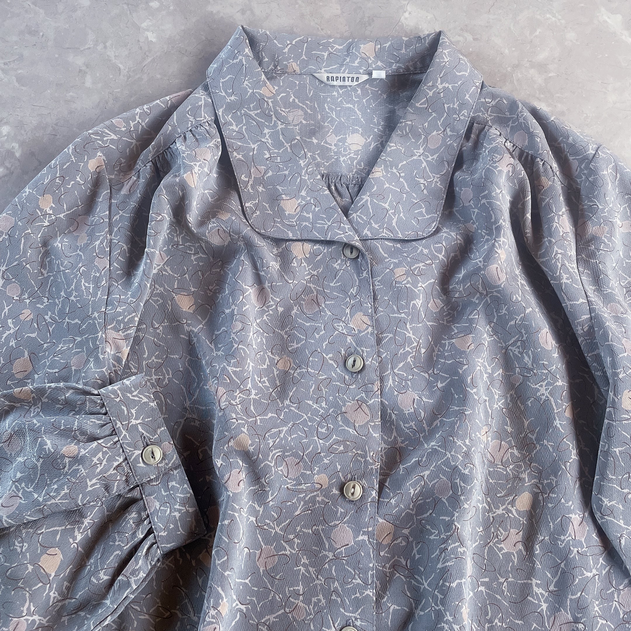 used レトロ グレー 総柄 ブラウス 古着 ヴィンテージ vintage