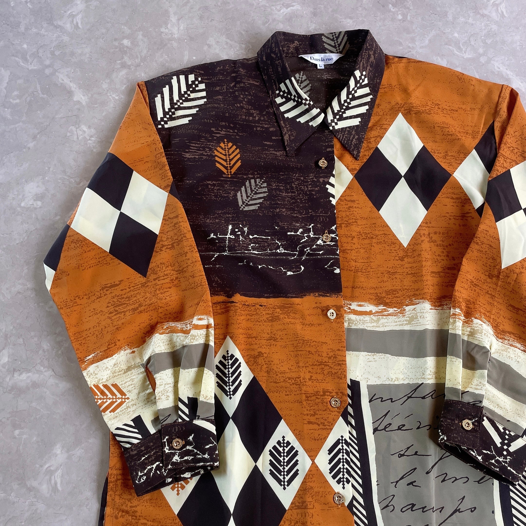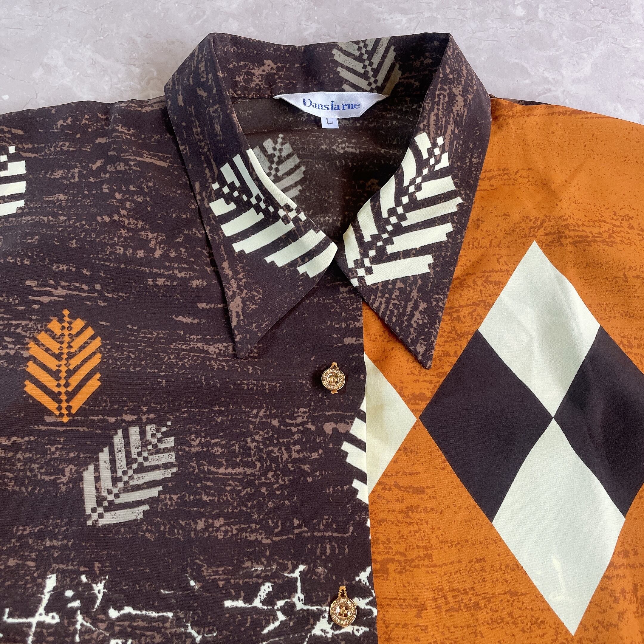 60s 70s 80s 90s の クラシカル で レトロ アンティーク ビンテージ / vintage ヴィンテージ なテイストの 古着 アート柄 個性的 シャツ ブラウス ワンピース を出品しております。一点物 ユニセックス 古着 もたくさん扱っておりますので、ご覧下さいませ♪