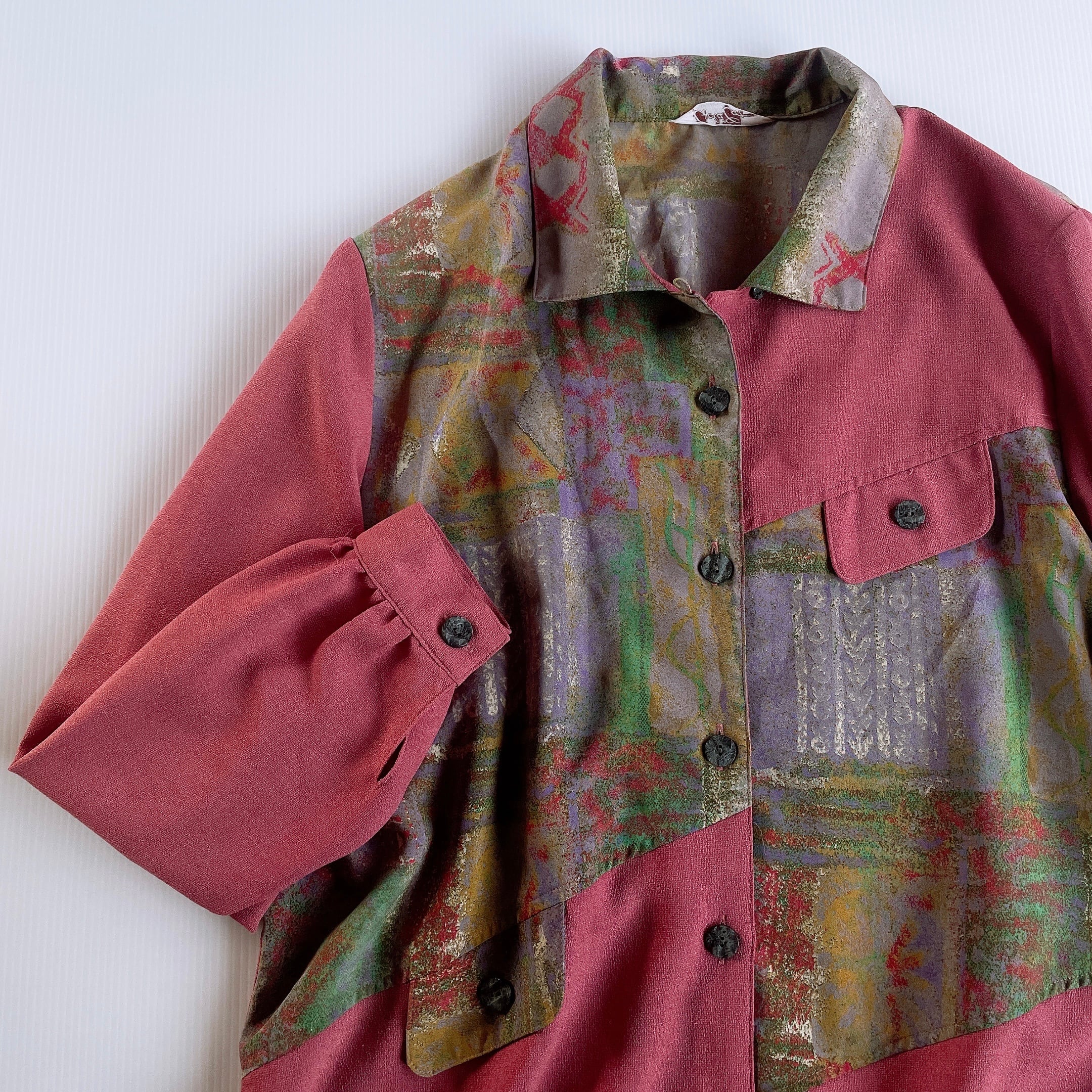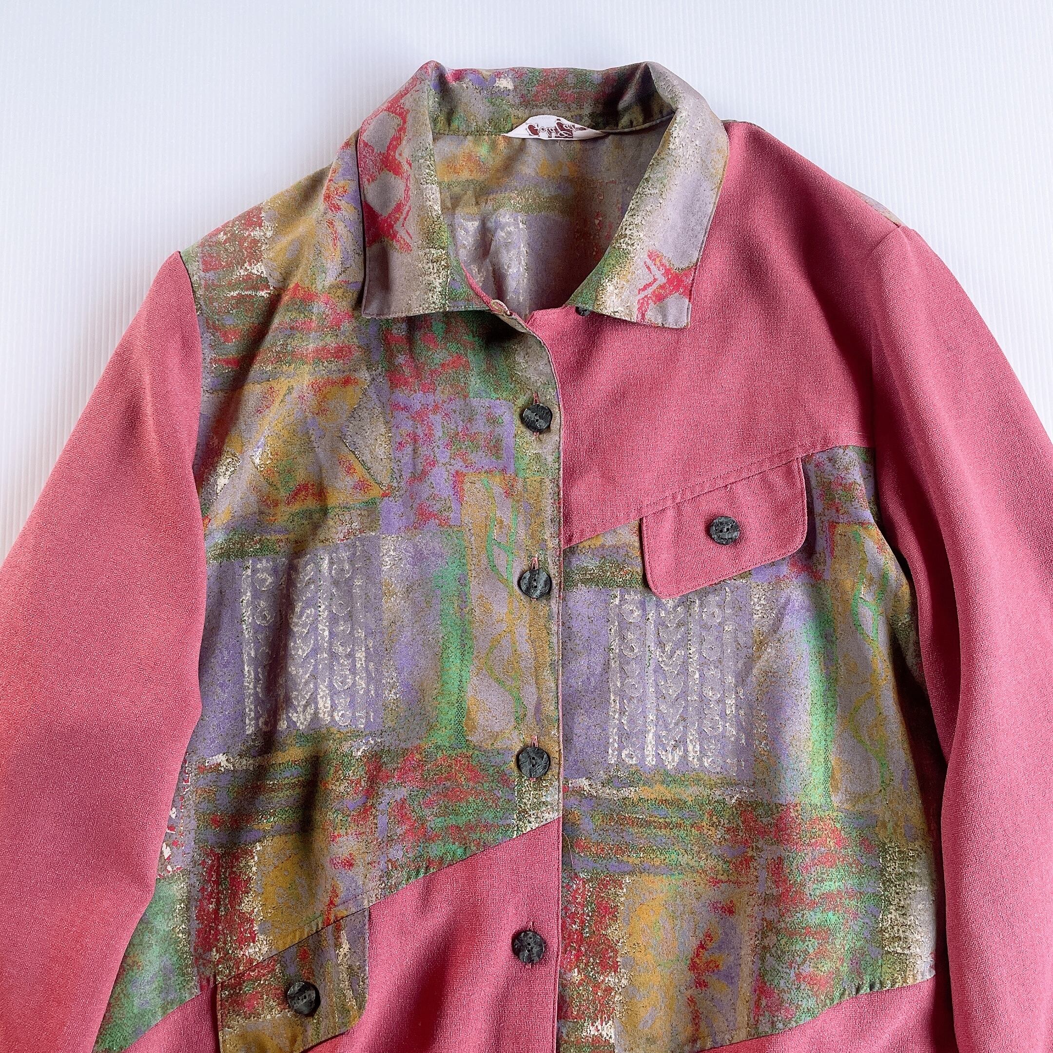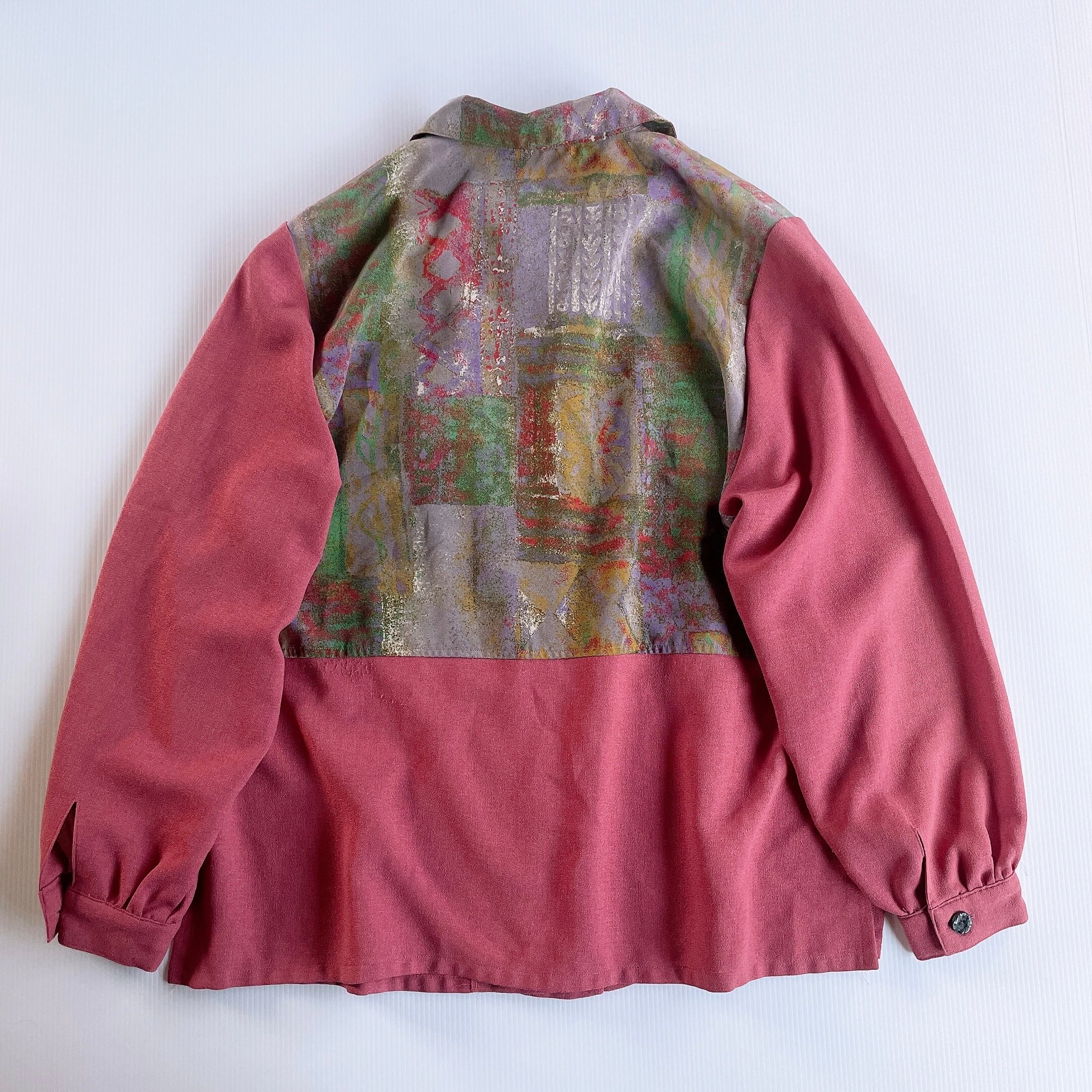 used レトロ ピンク 柄 ブラウス シャツ 古着 ヴィンテージvintage