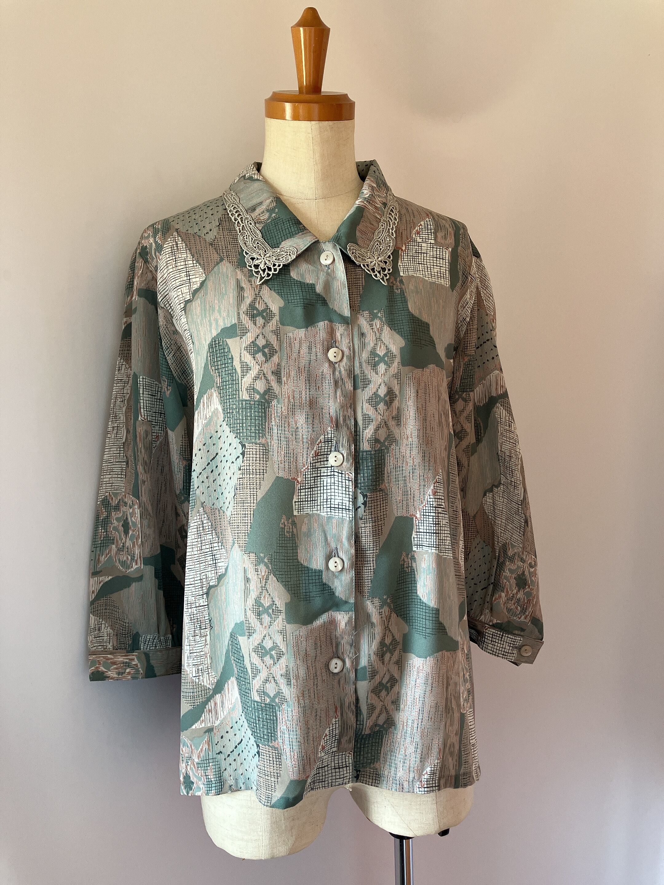 used レトロ 襟レース 総柄 ブラウス 古着 ヴィンテージ vintage