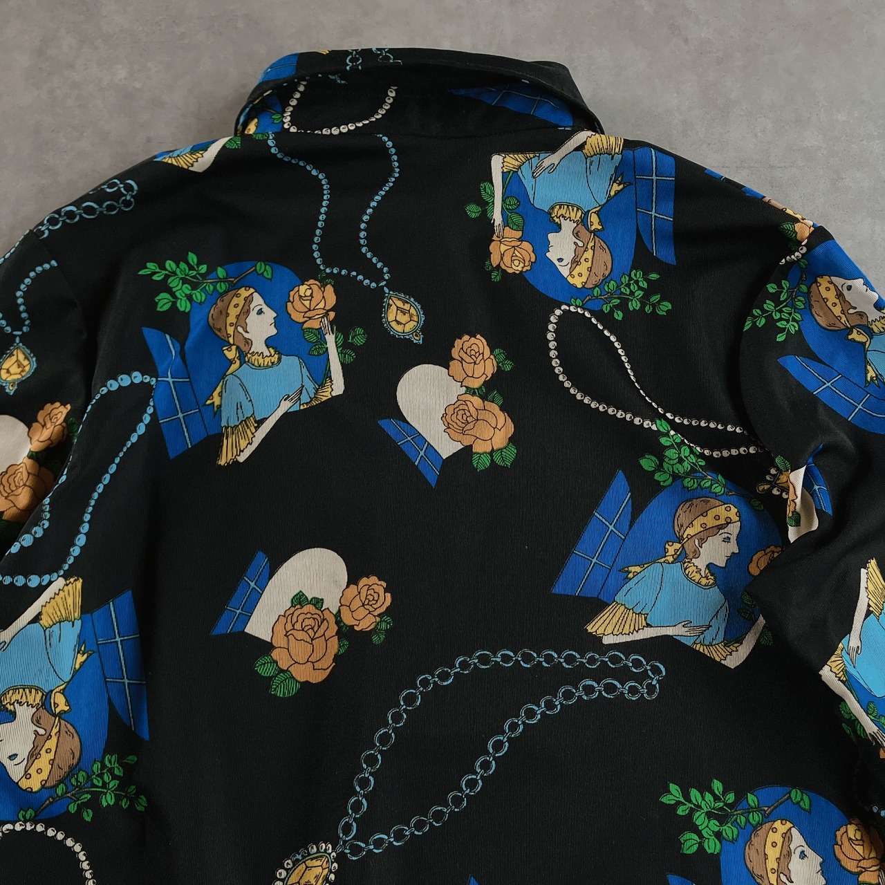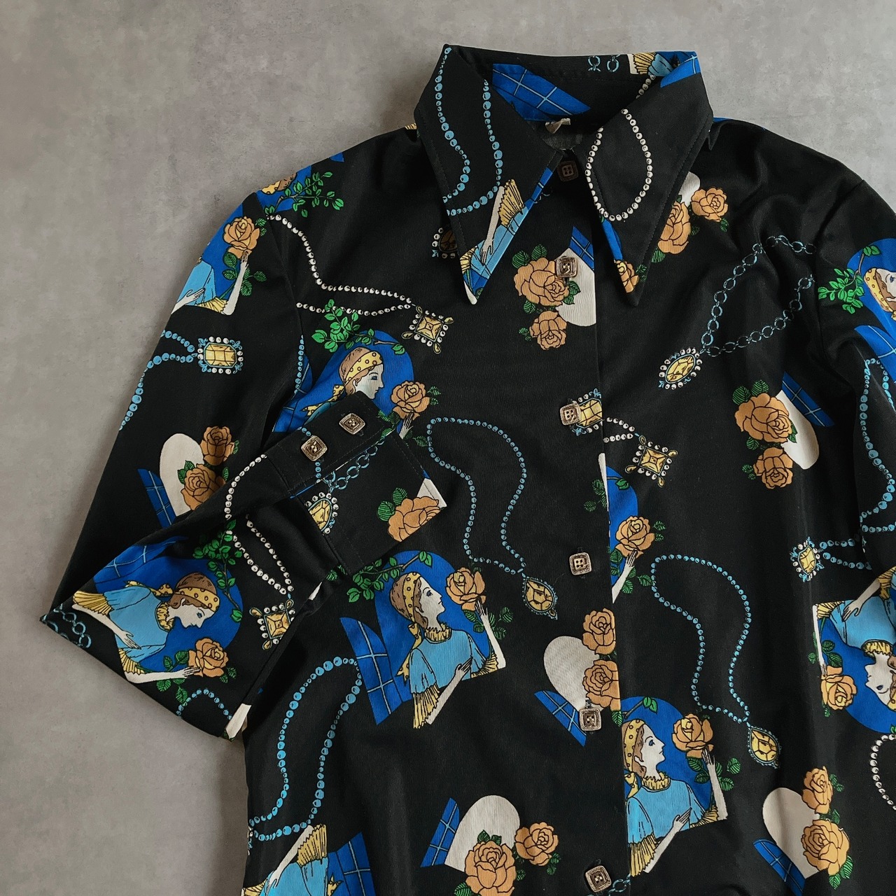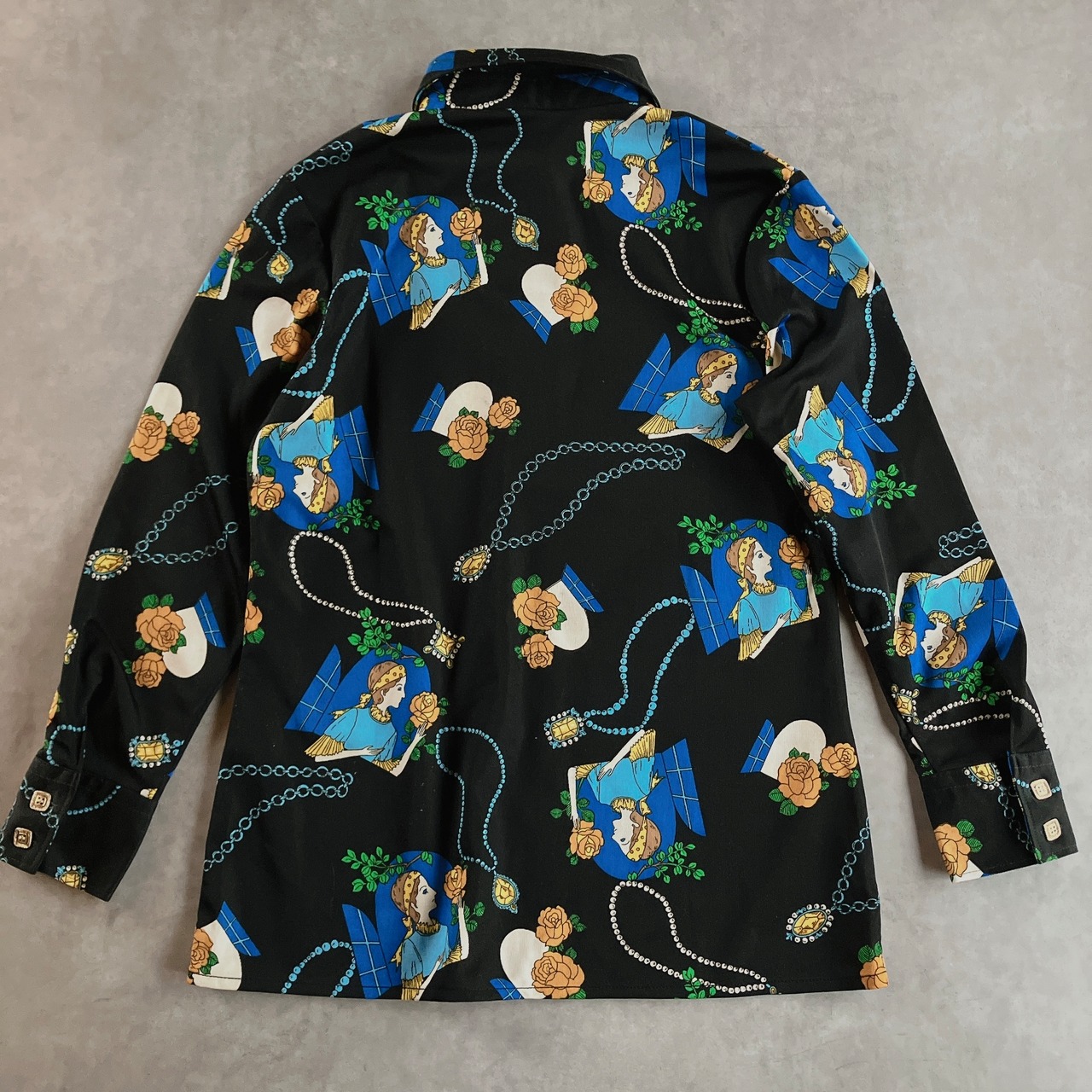 used レトロ お花と女性柄 ブラウス シャツ古着 ヴィンテージvintage
