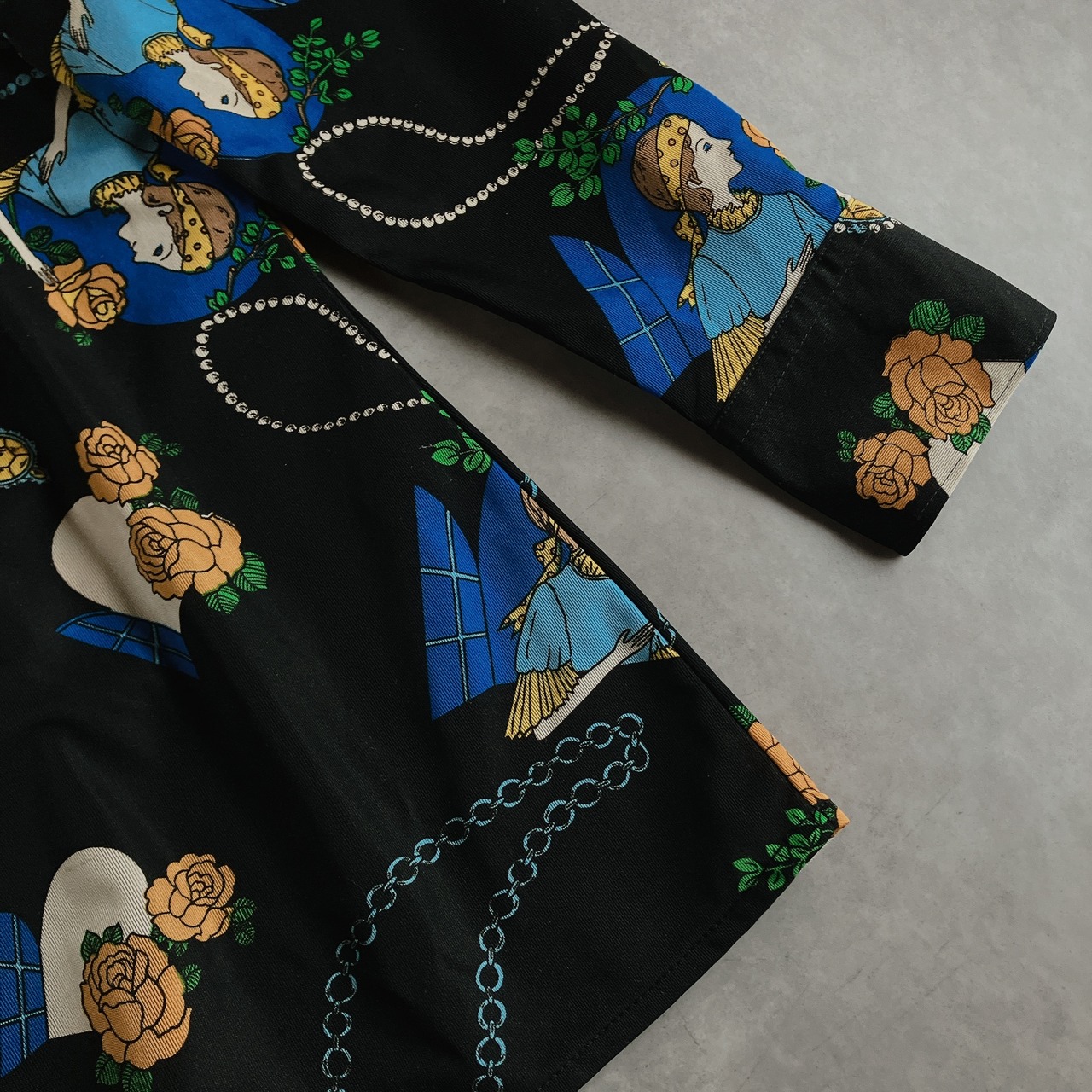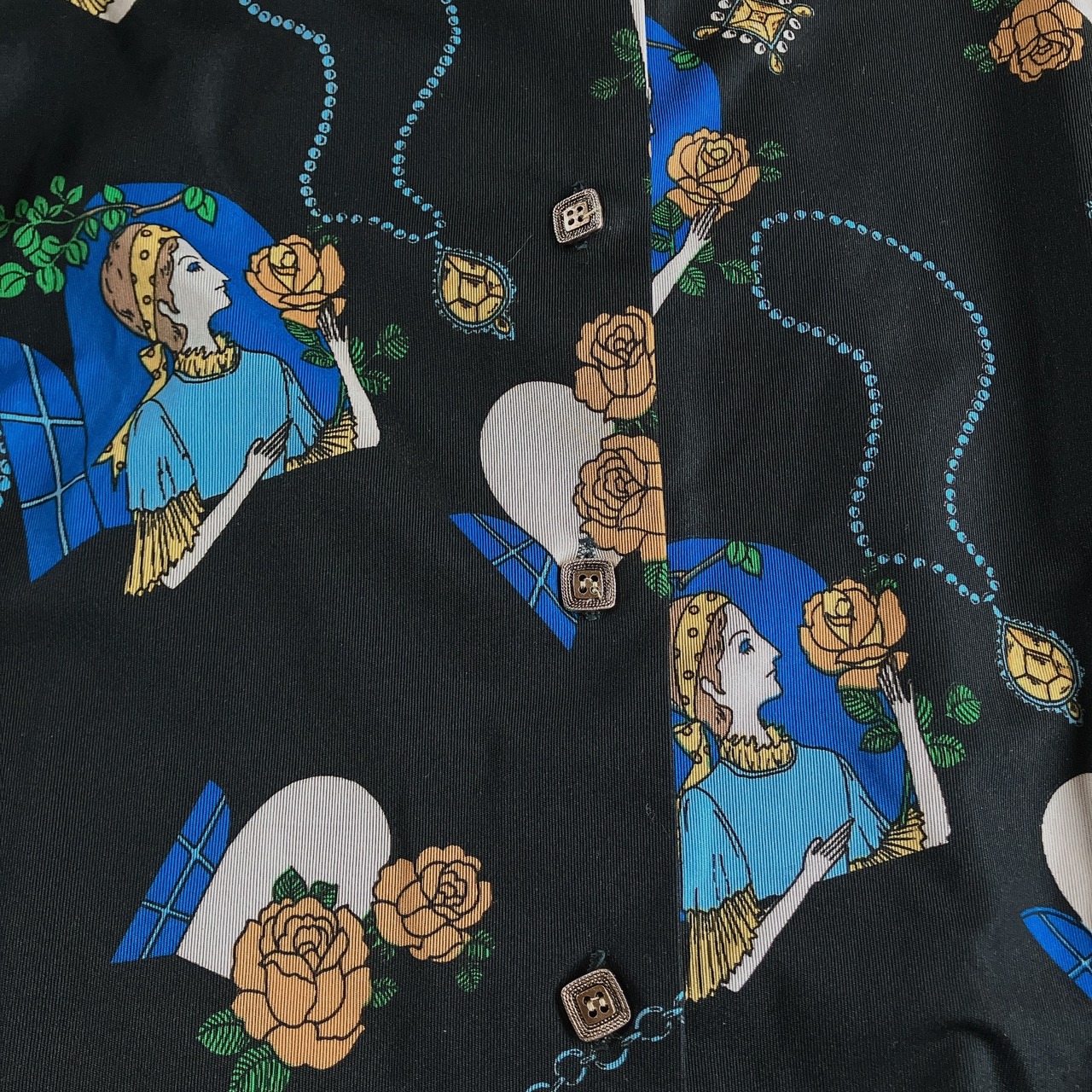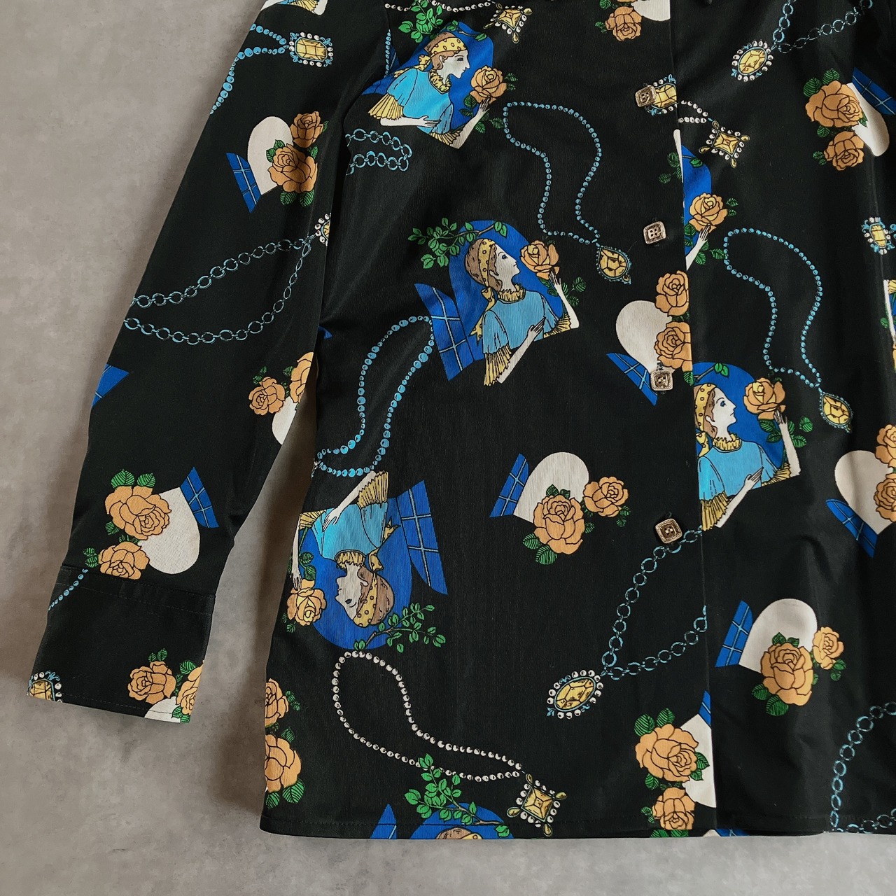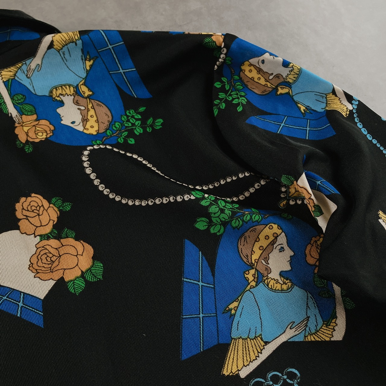 used レトロ お花と女性柄 ブラウス シャツ古着 ヴィンテージvintage