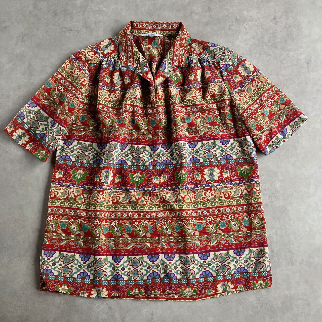 used レトロ 赤系 総柄 シャツ 古着 ヴィンテージ vintage