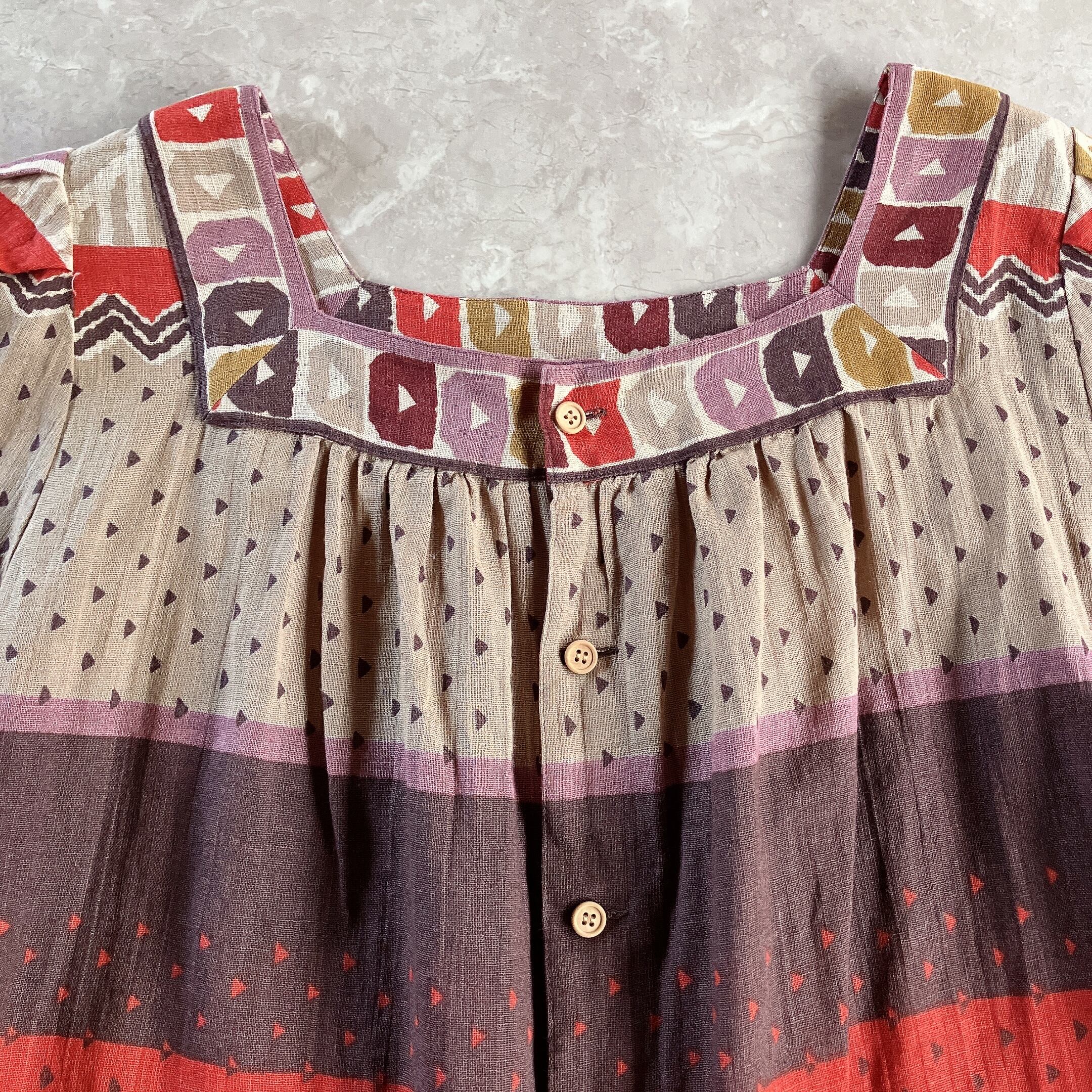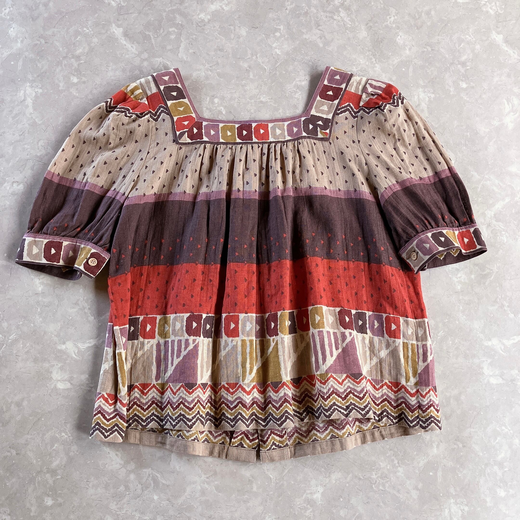 used レトロ 総柄 ノーカラー ブラウス 古着 ヴィンテージ vintage