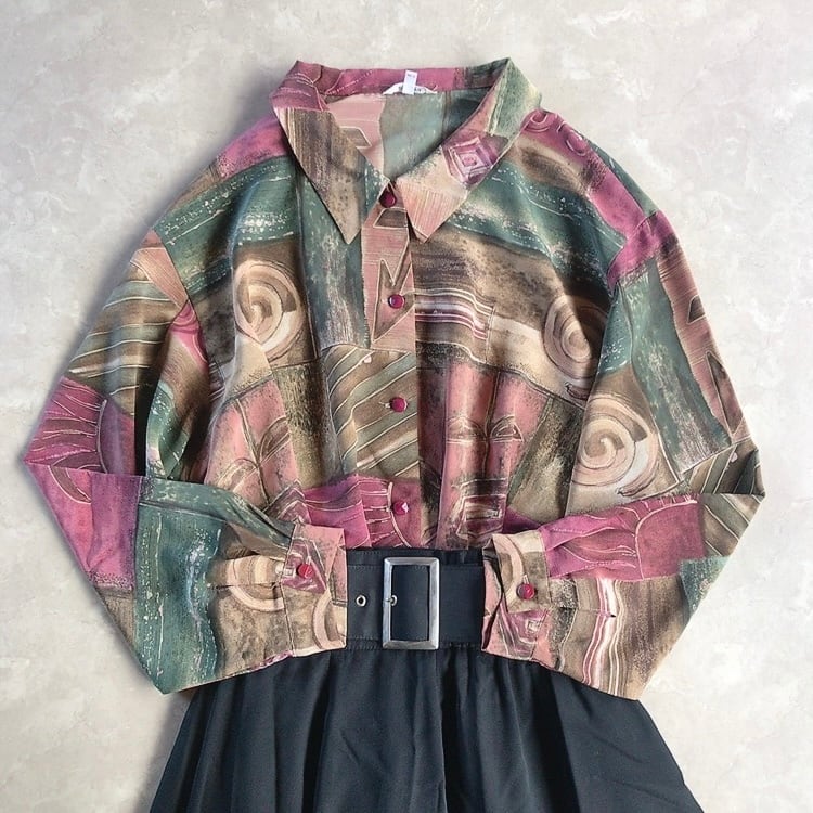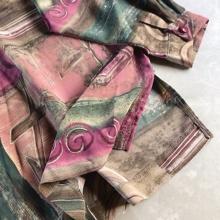60s 70s 80s 90s の クラシカル で レトロ アンティーク ビンテージ / vintage ヴィンテージ なテイストの 古着 アート柄 個性的 シャツ ブラウス ワンピース を出品しております。一点物 ユニセックス 古着 もたくさん扱っておりますので、ご覧下さいませ♪