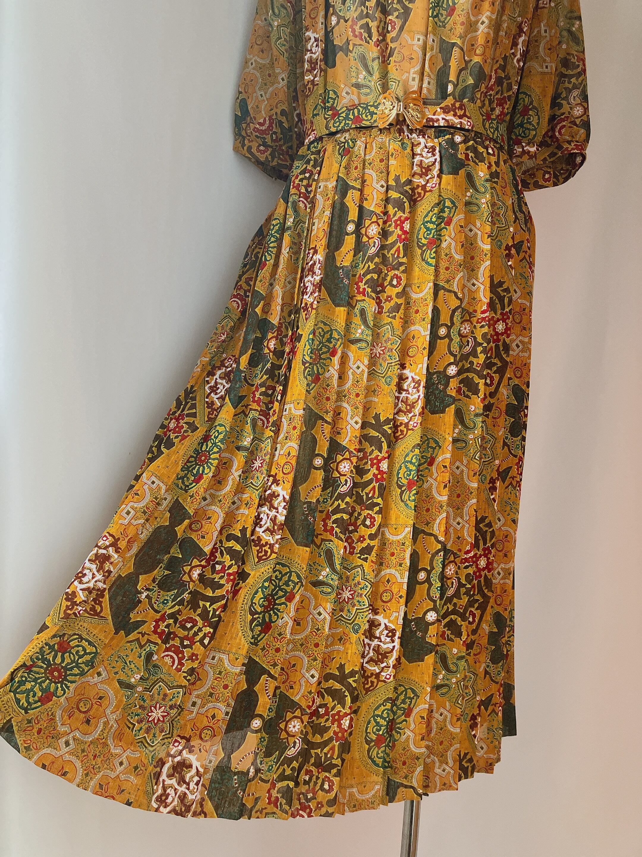 used レトロ 総柄 プリーツ ワンピース 古着 ヴィンテージ vintage