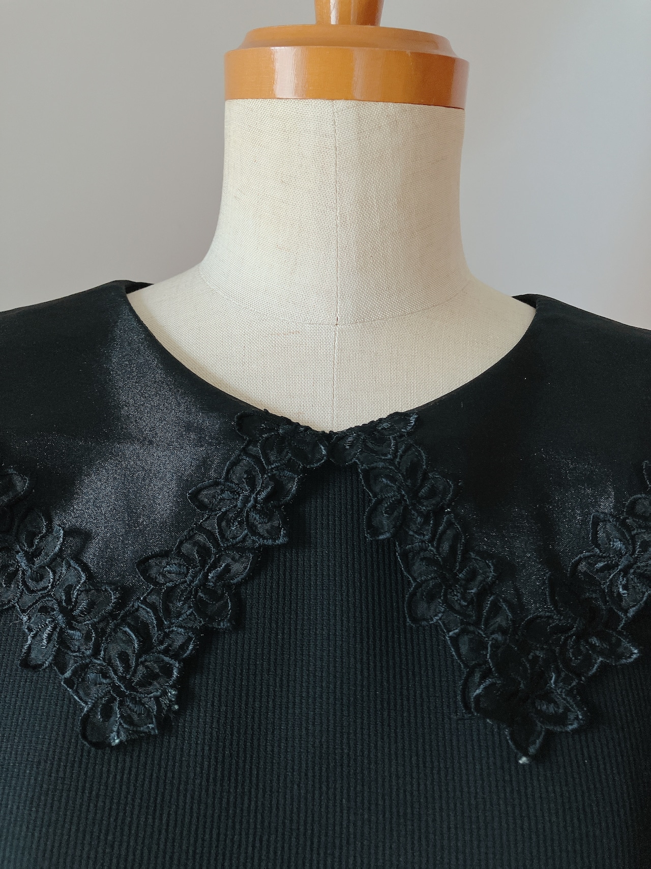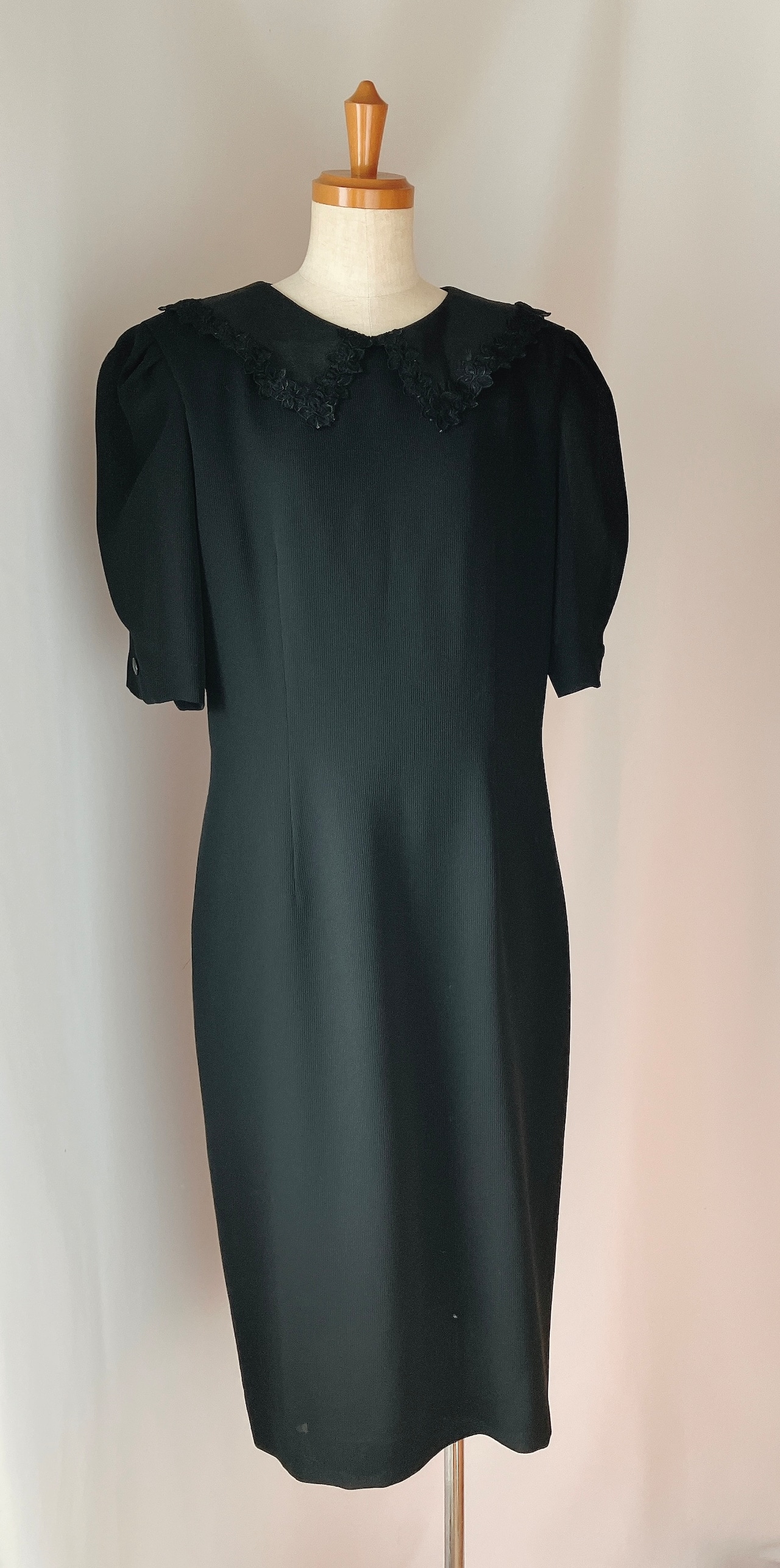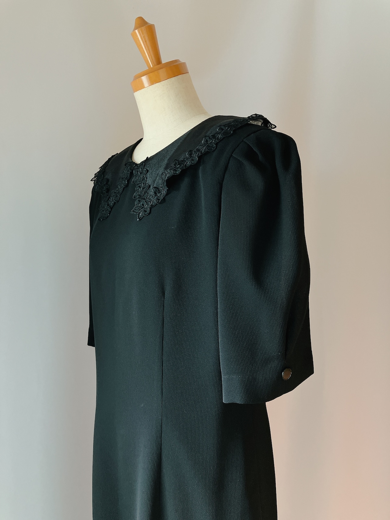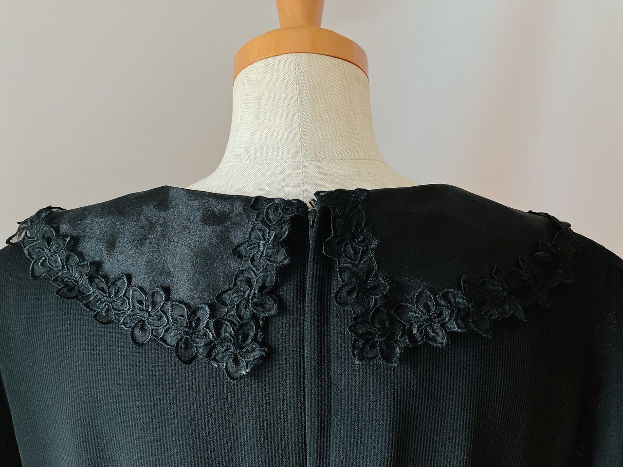 used レトロ シアー襟 黒 ワンピース 古着 ヴィンテージ vintage