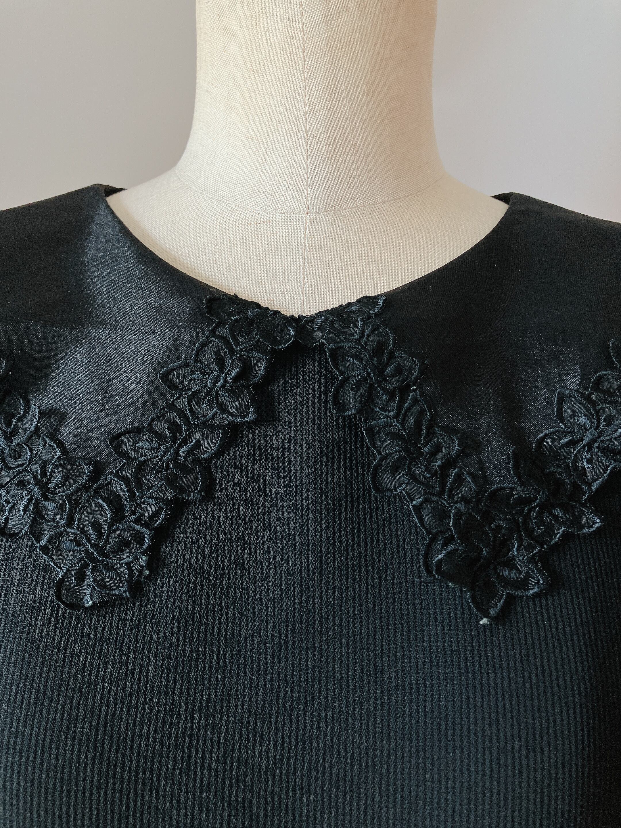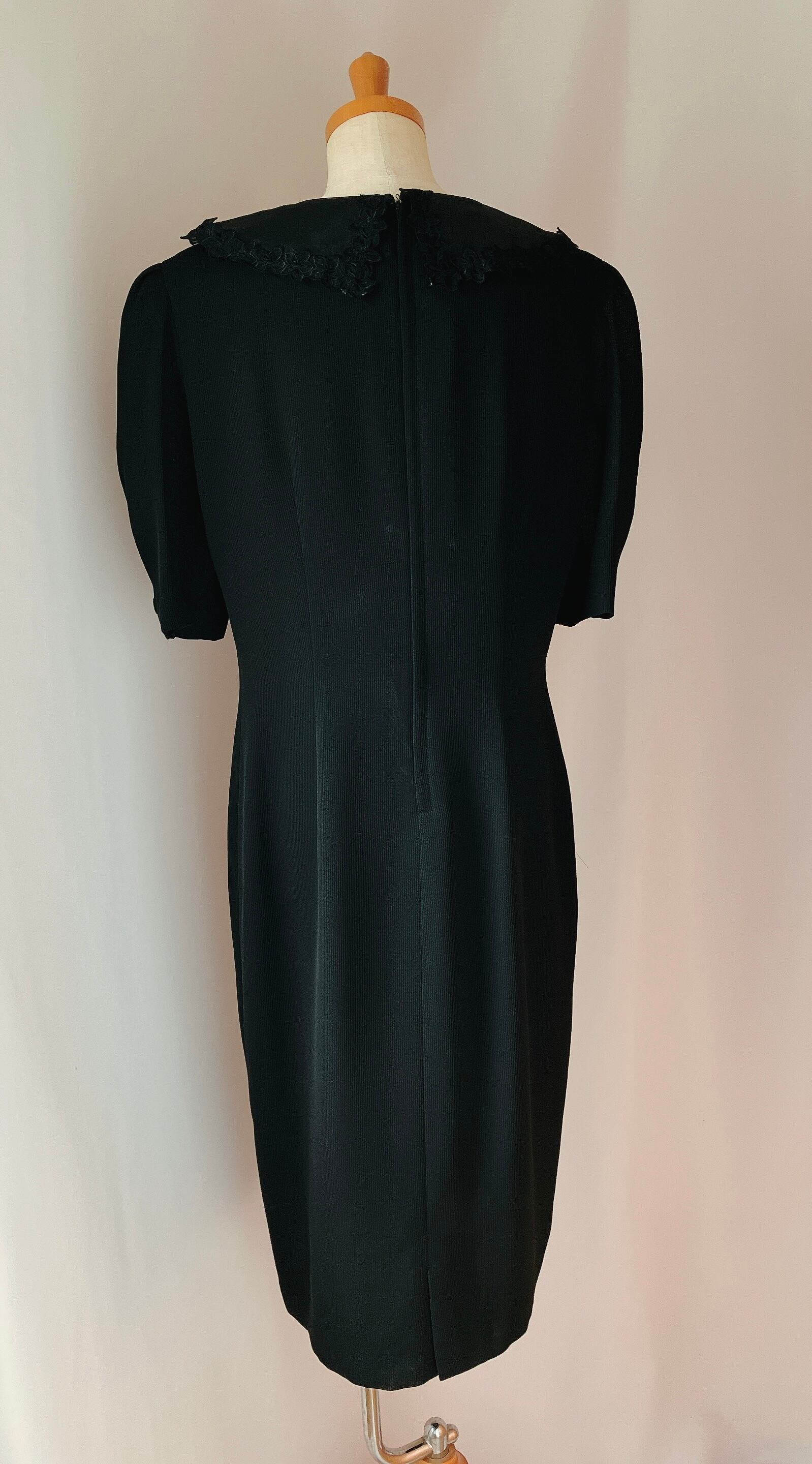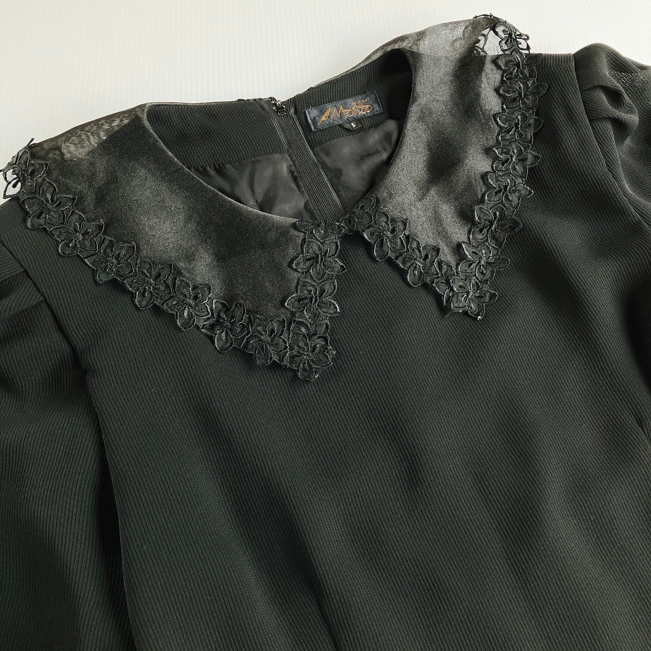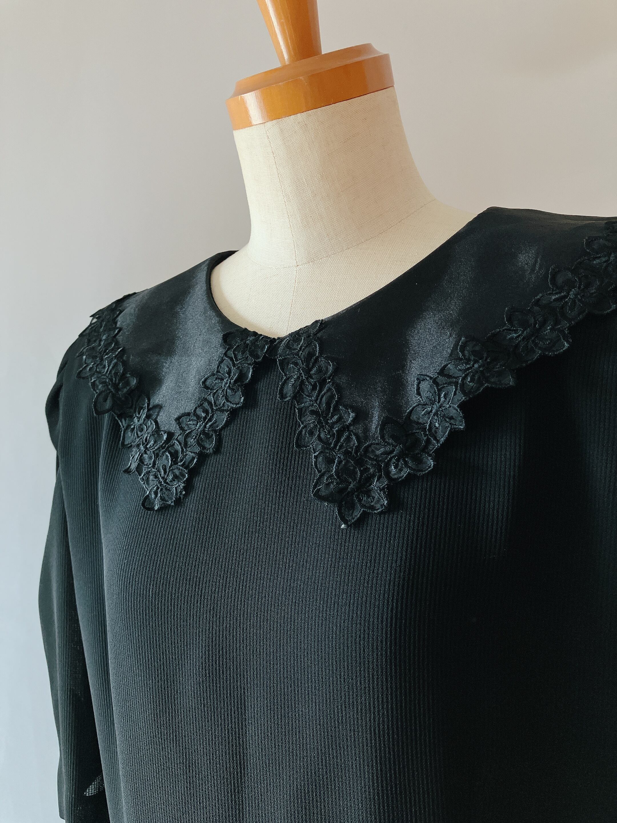 used レトロ シアー襟 黒 ワンピース 古着 ヴィンテージ vintage