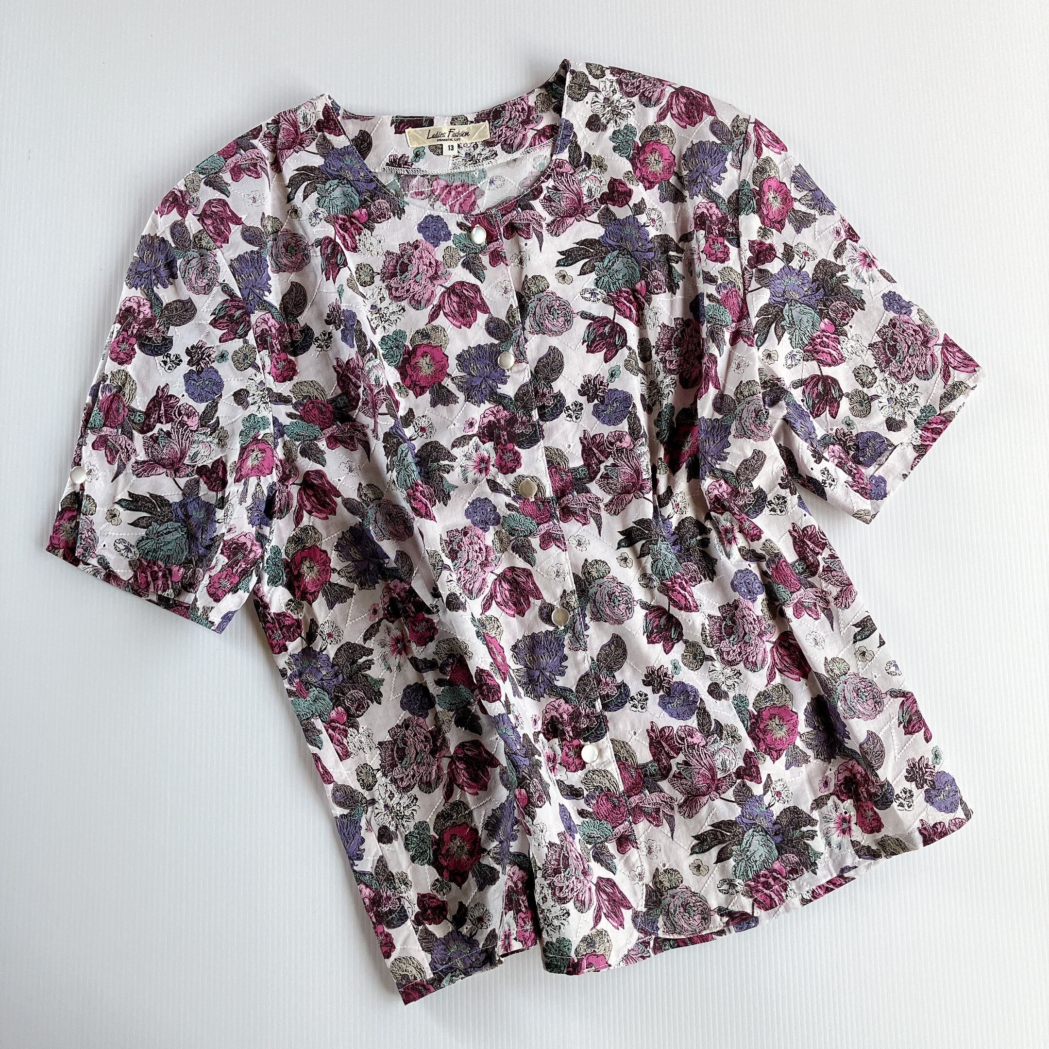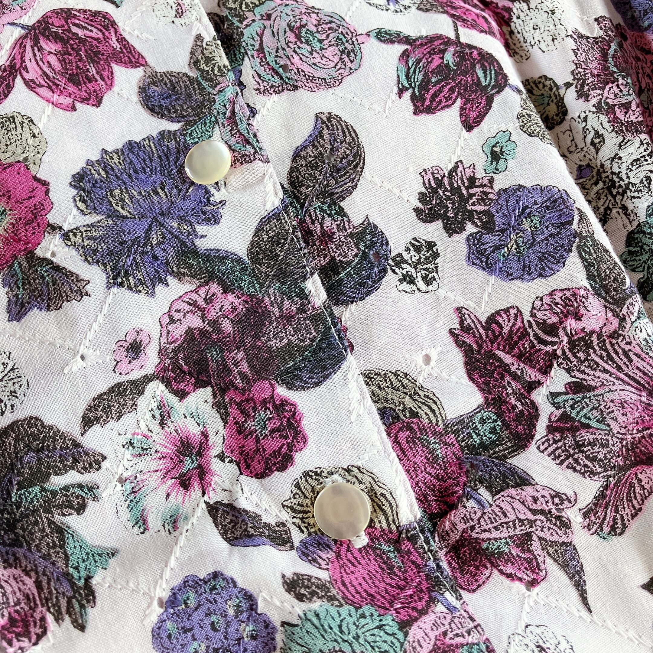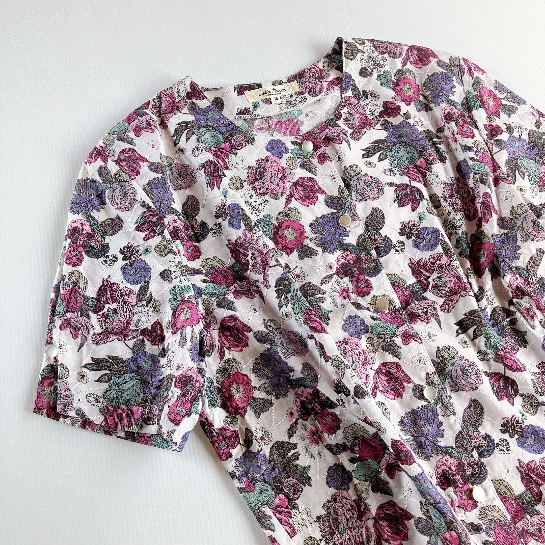 used レトロ ノーカラー 花柄 ブラウス 古着 ヴィンテージ vintage