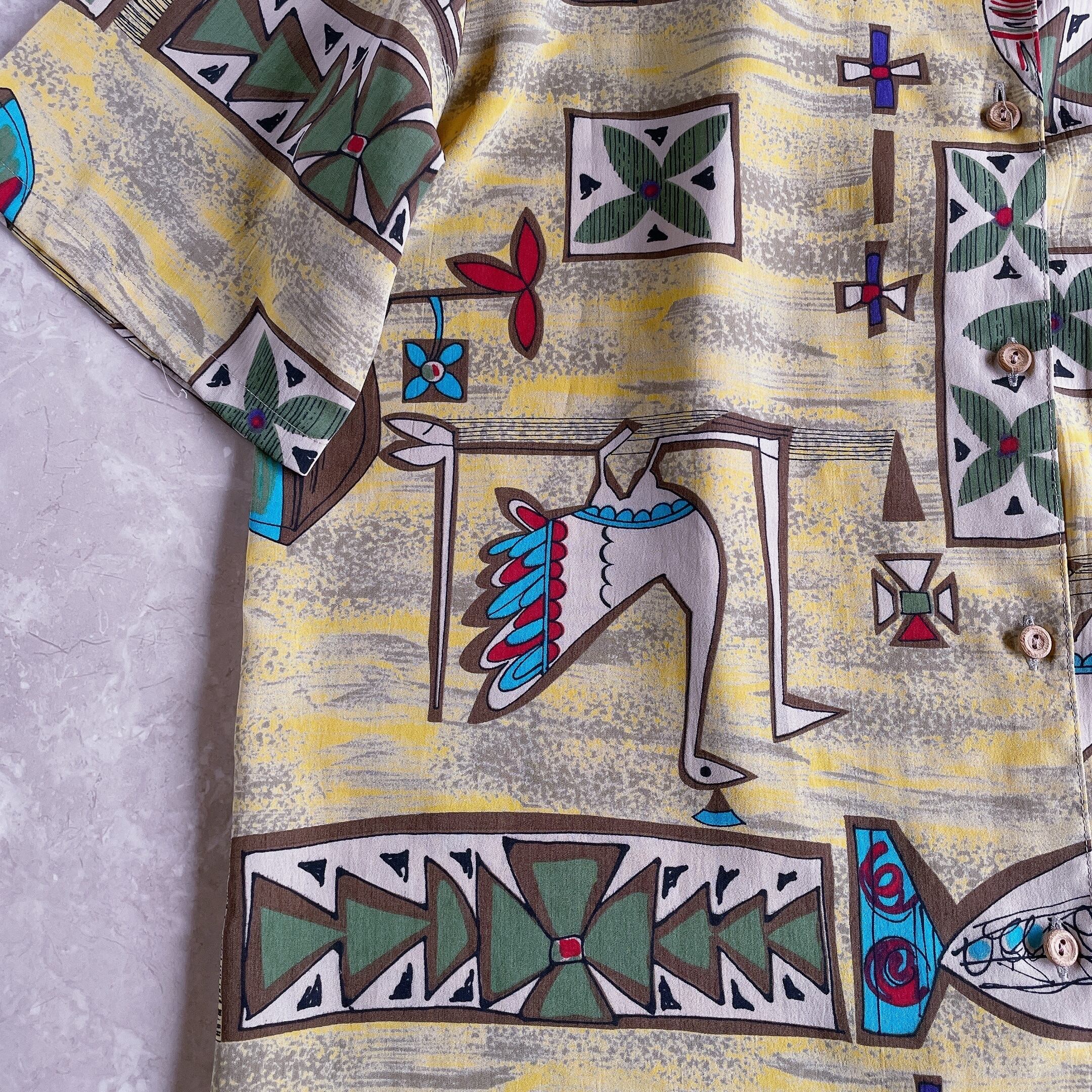 60s 70s 80s 90s の クラシカル で レトロ アンティーク ビンテージ / vintage ヴィンテージ なテイストの 古着 アート柄 個性的 シャツ ブラウス ワンピース を出品しております。一点物 ユニセックス 古着 もたくさん扱っておりますので、ご覧下さいませ♪