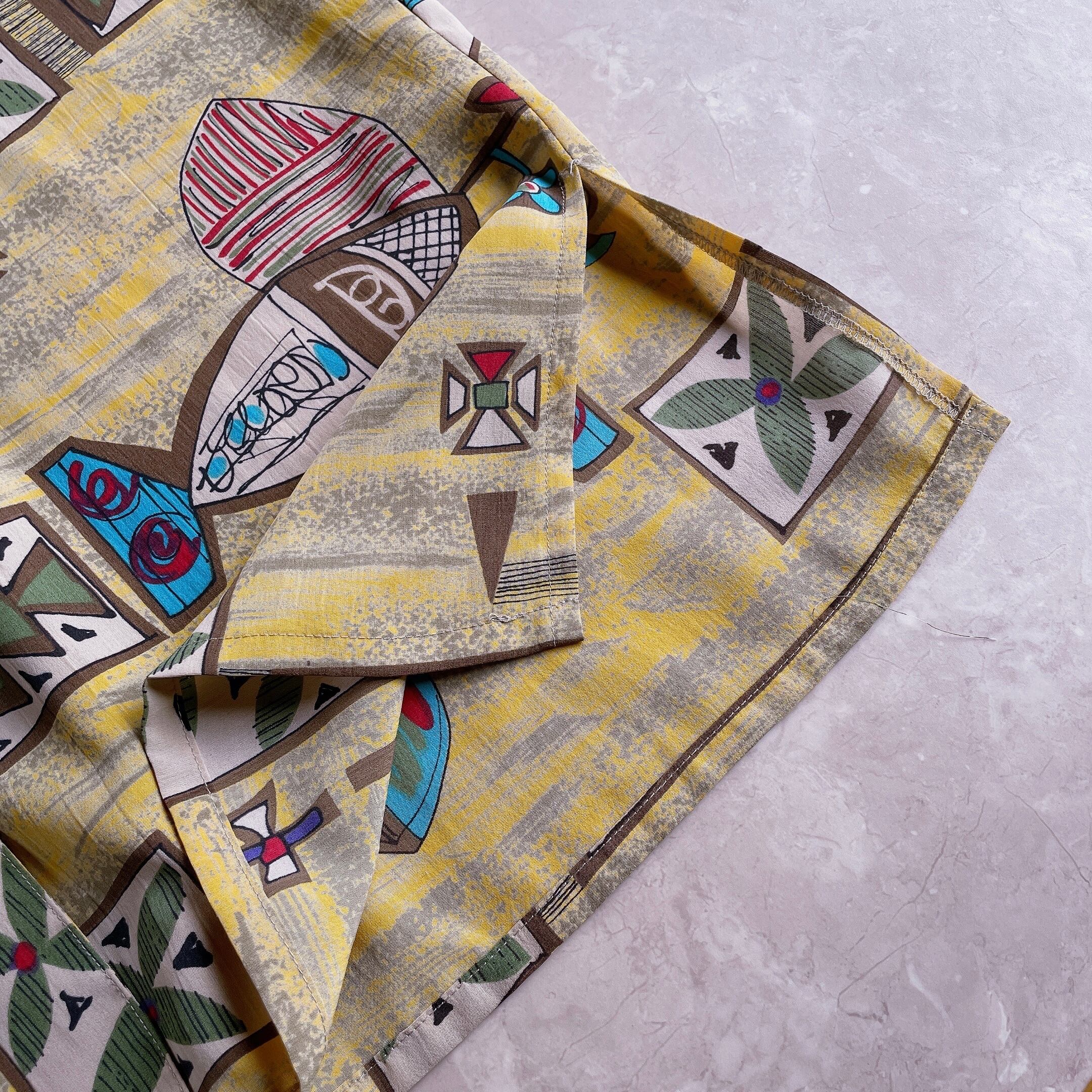 used レトロ 黄色系 総柄 シャツ 古着 ヴィンテージ vintage