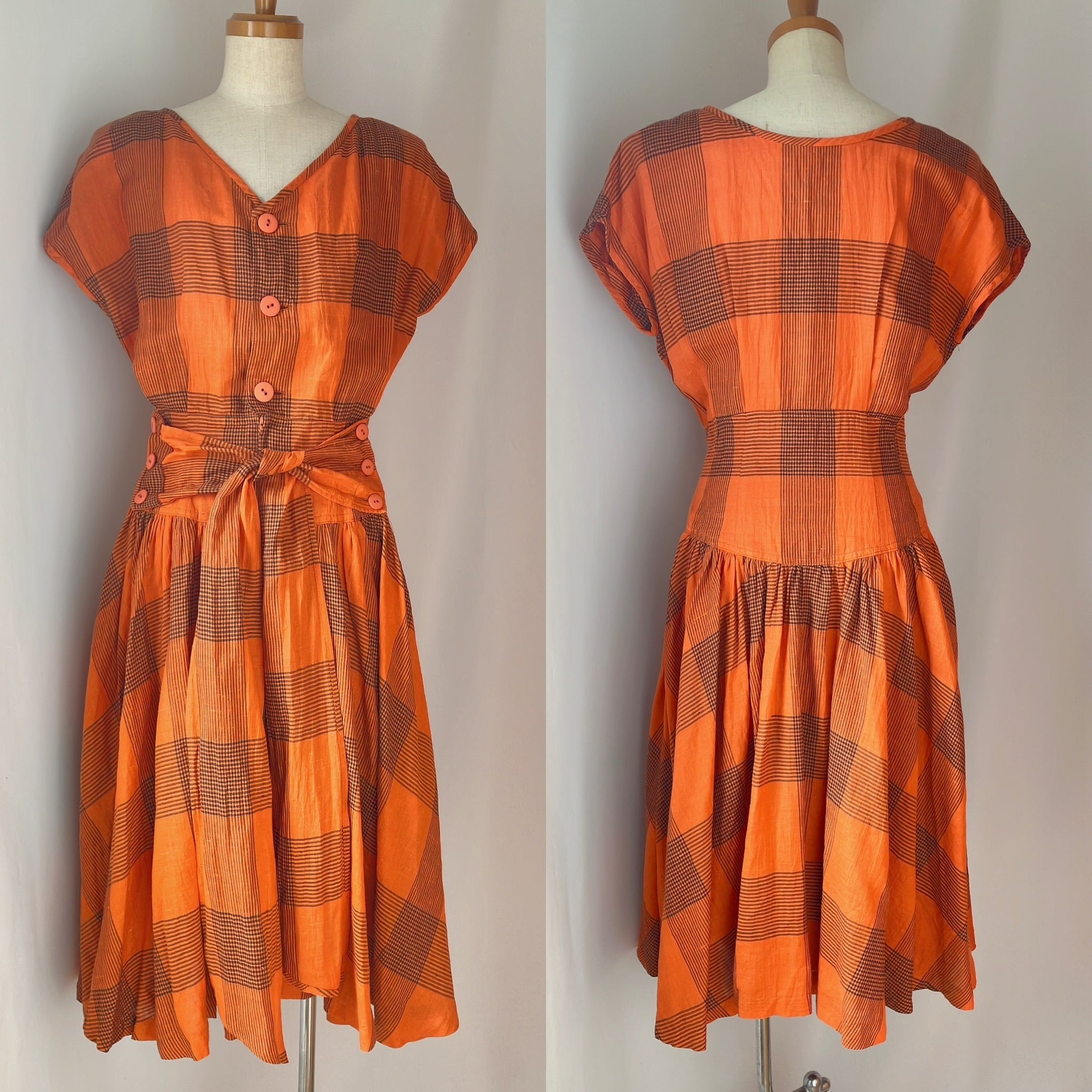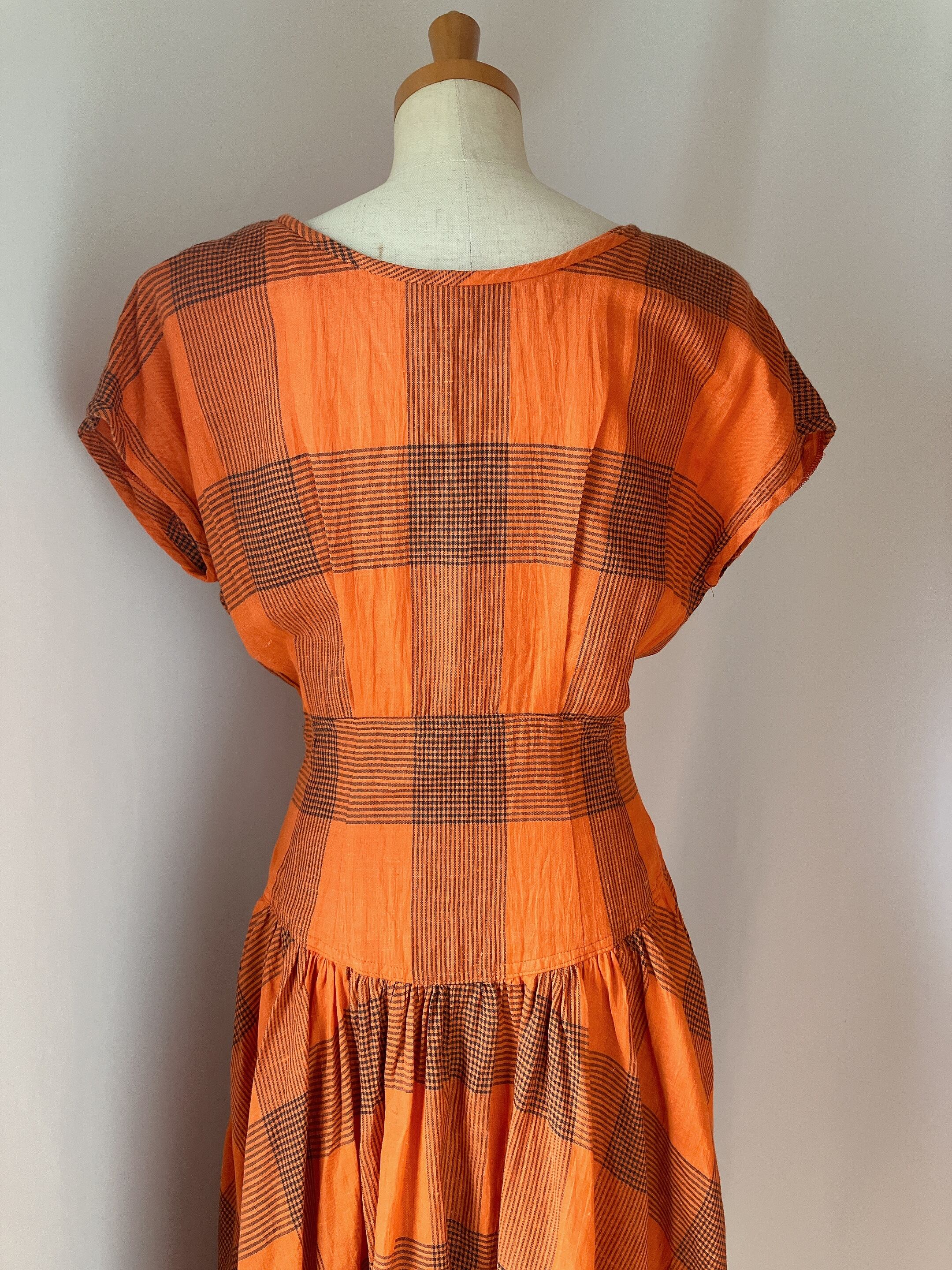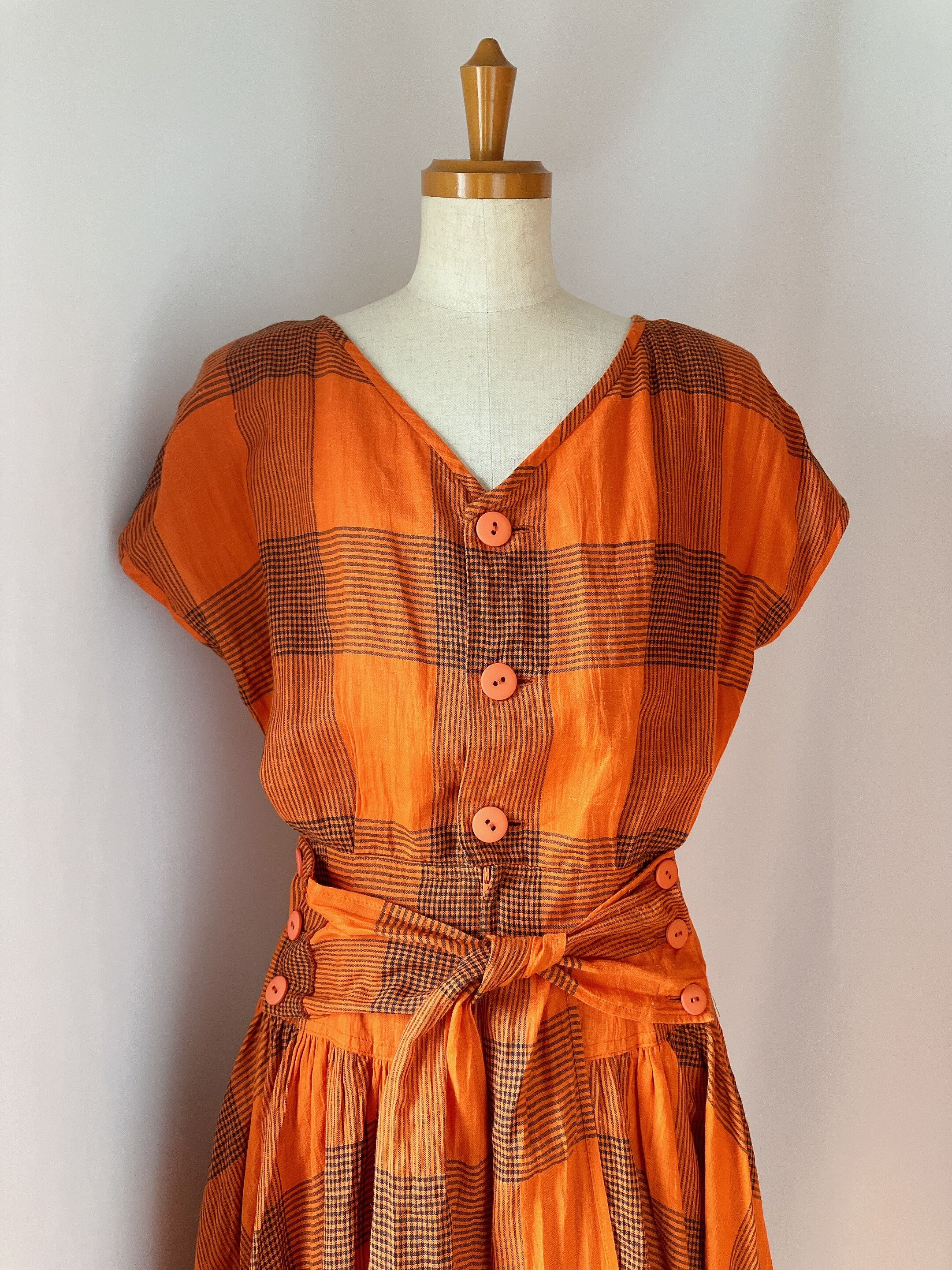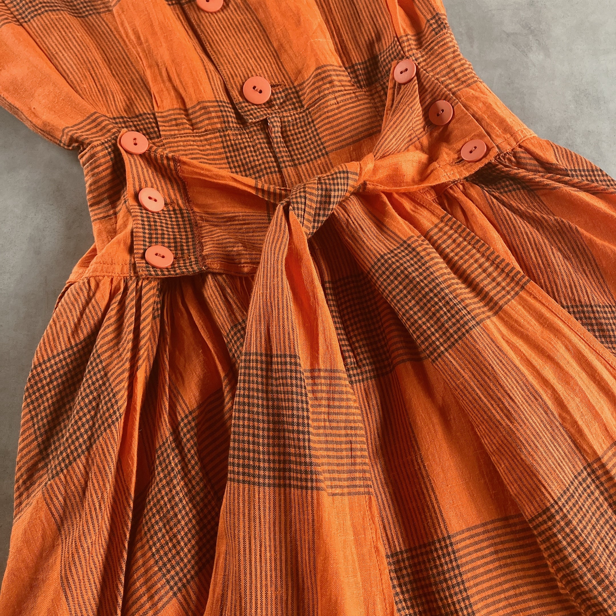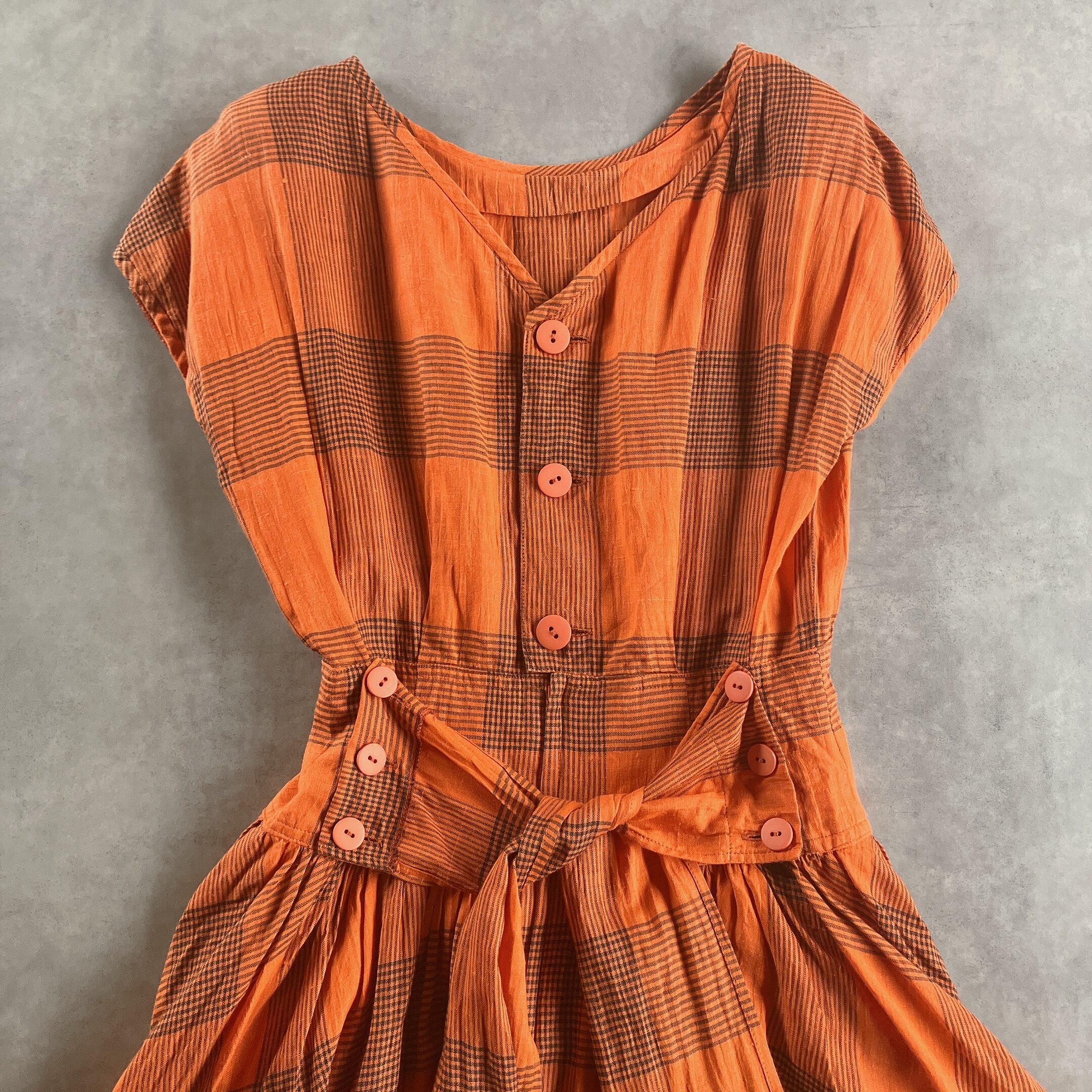 used レトロ オレンジチェック ワンピース古着 ヴィンテージ vintage