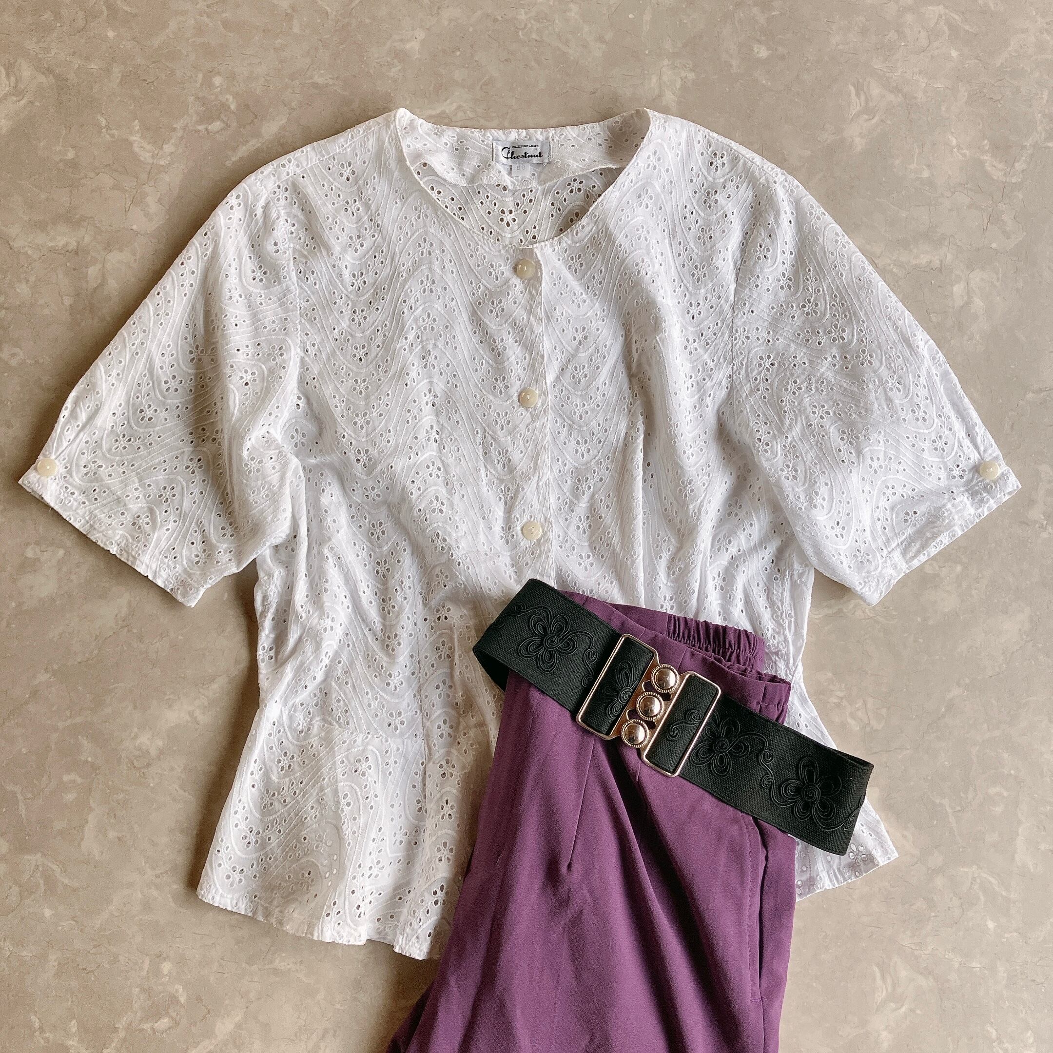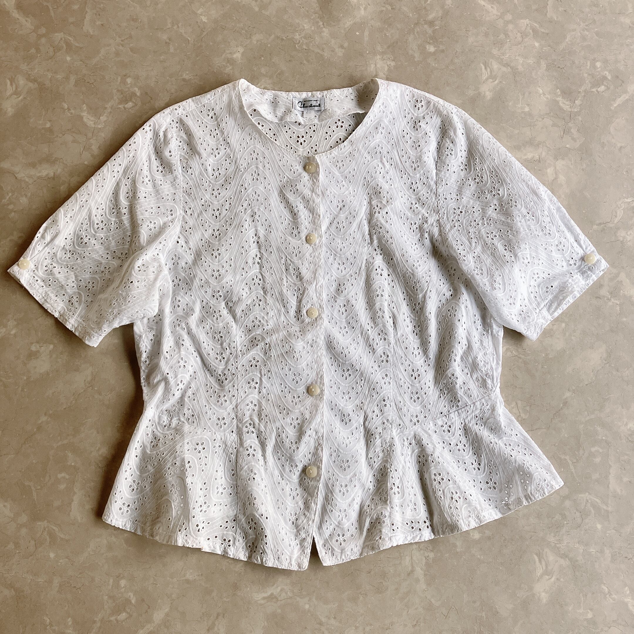 used レトロ カットワーク刺繍 ブラウス 古着 ヴィンテージ vintage