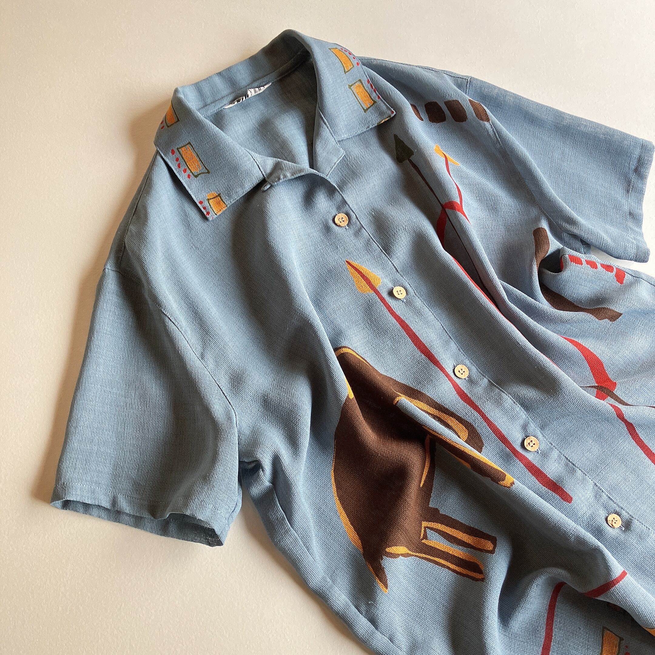 used レトロ 水色 象 デザインシャツ 古着 ヴィンテージ vintage