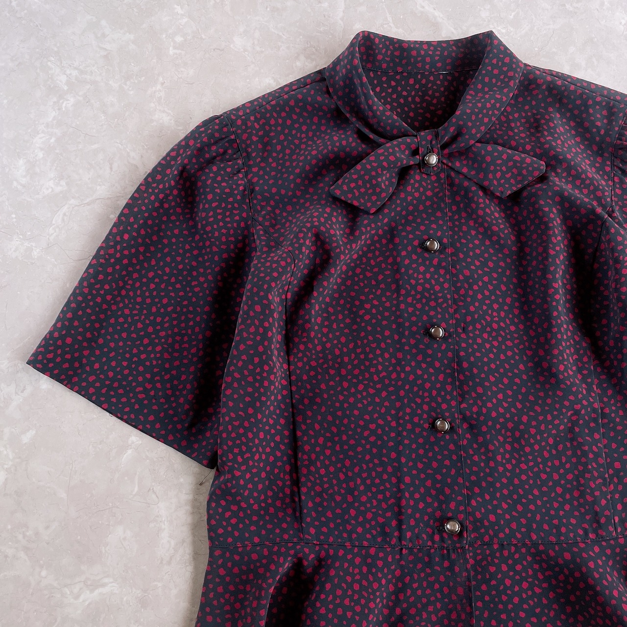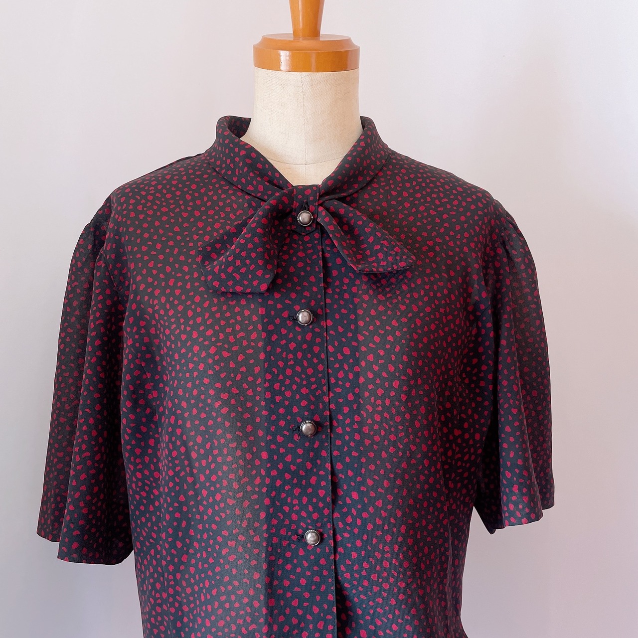 used レトロ リボンタイ 総柄 ブラウス 古着 ヴィンテージ vintage