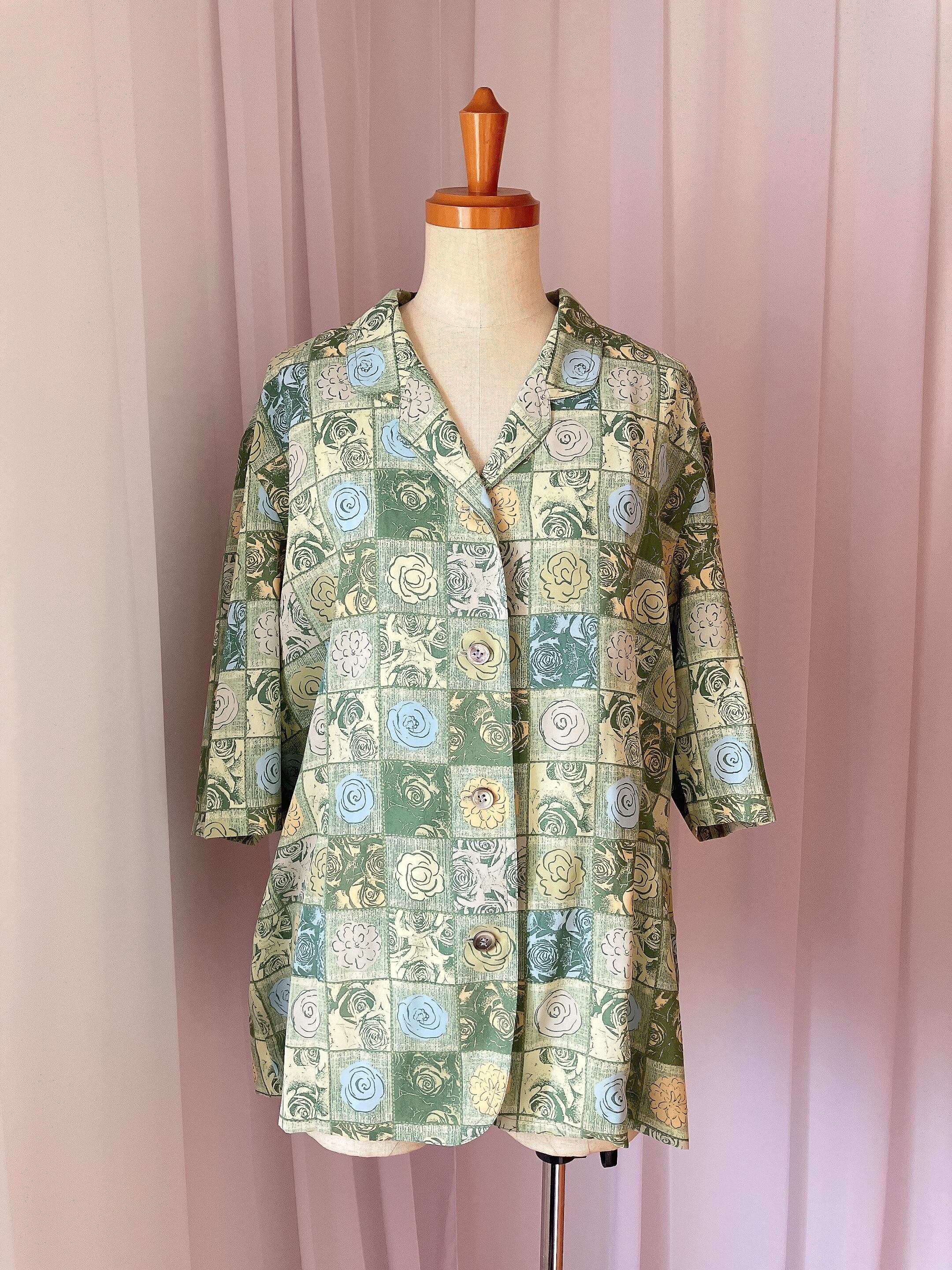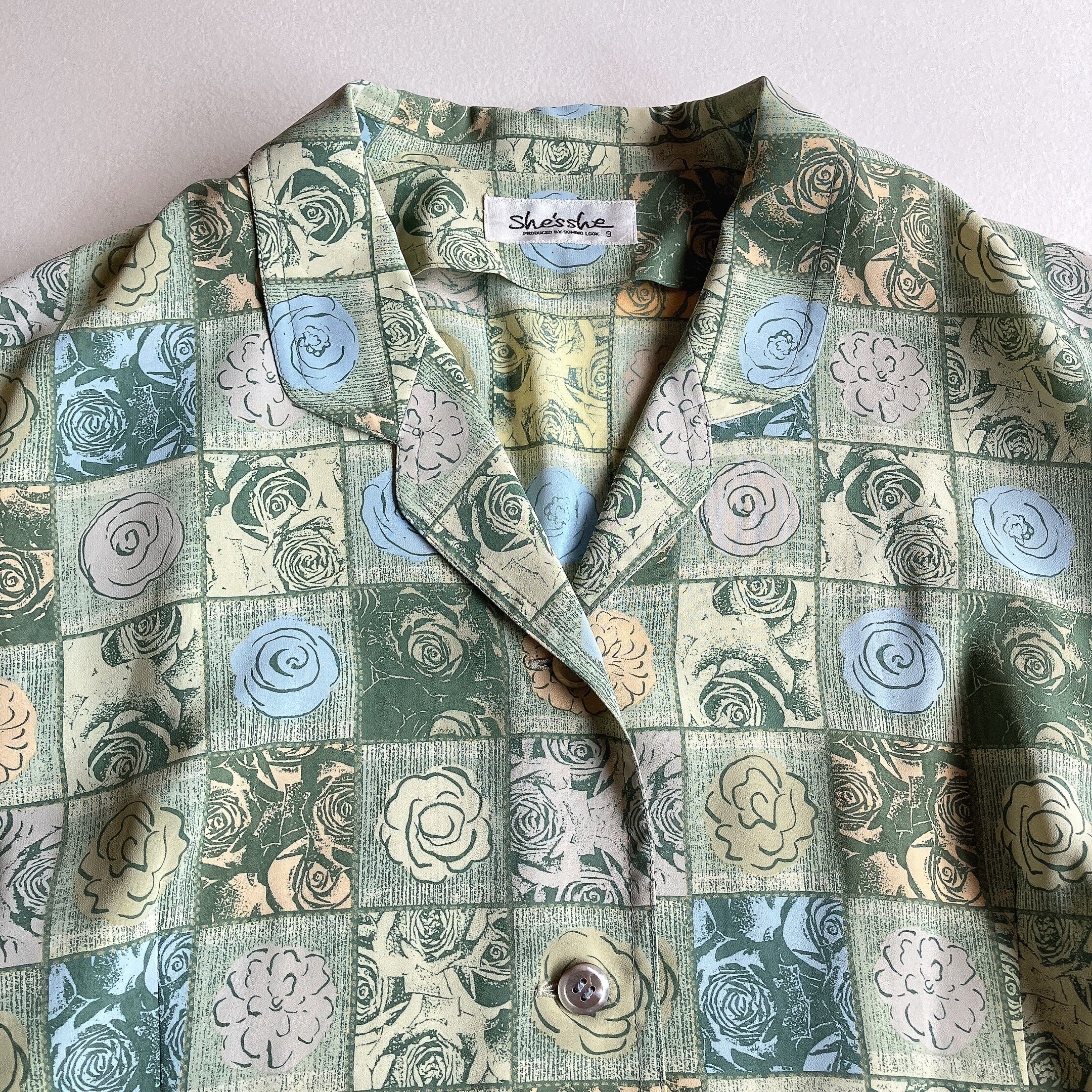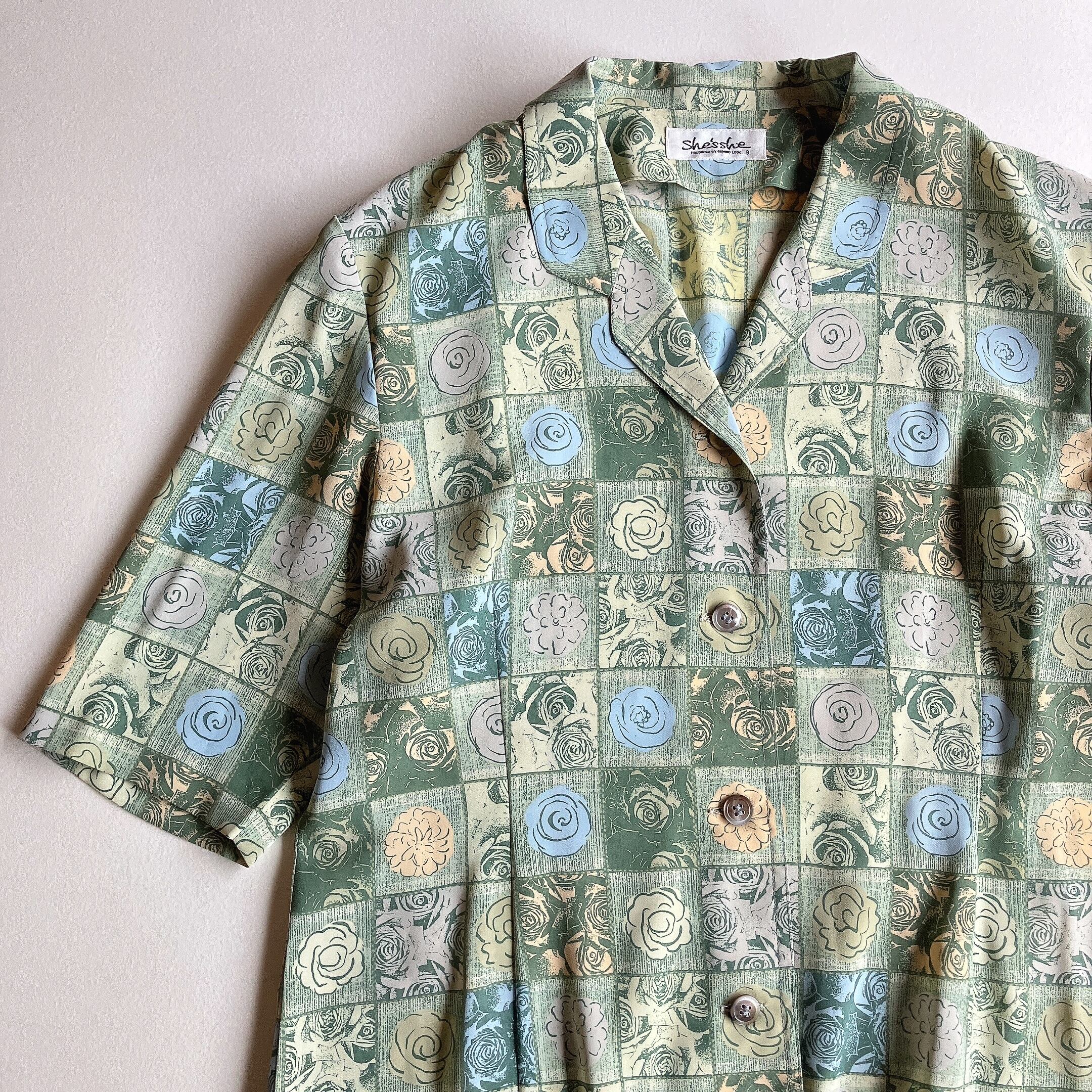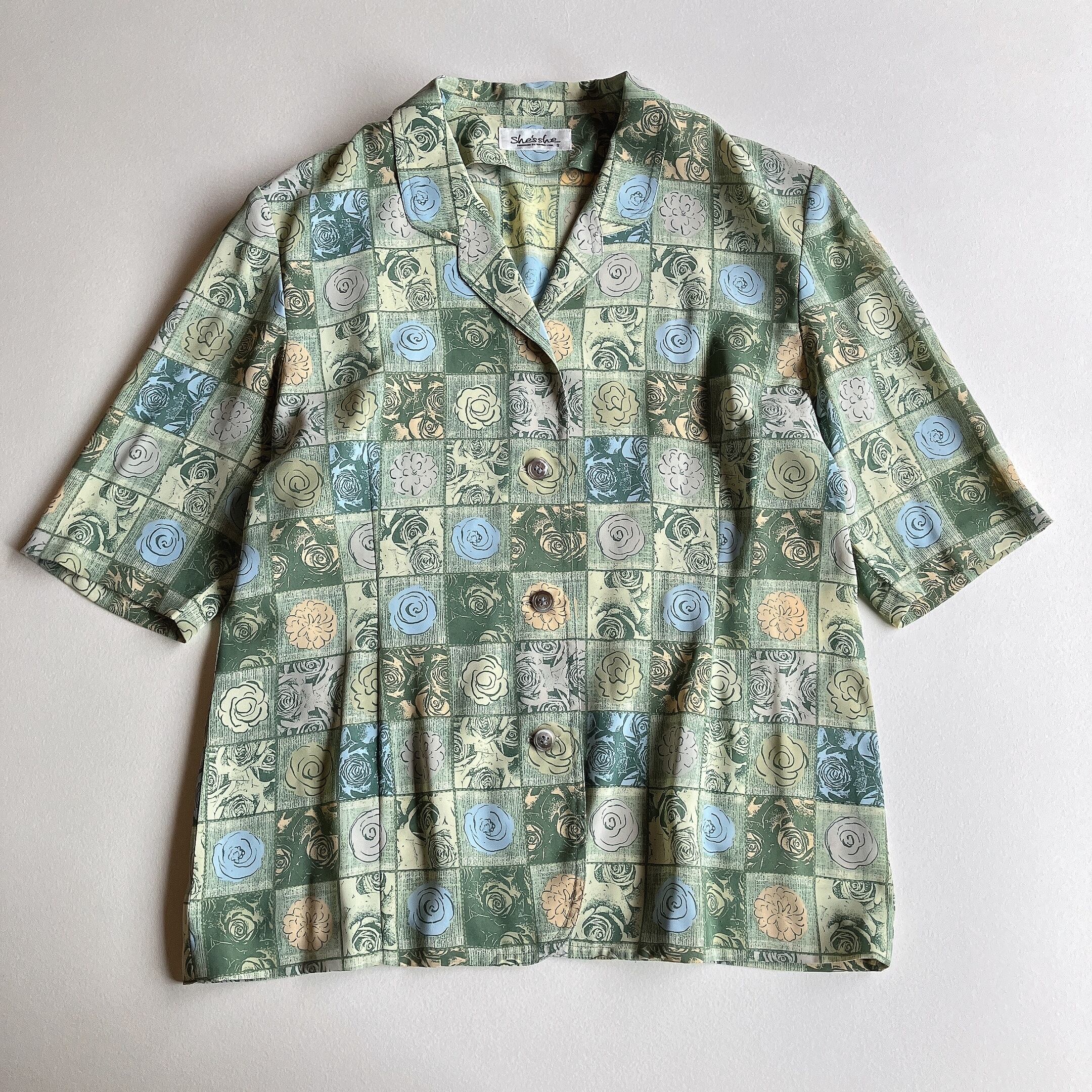 used レトロ 緑系 総柄 ブラウス 古着 ヴィンテージ vintage