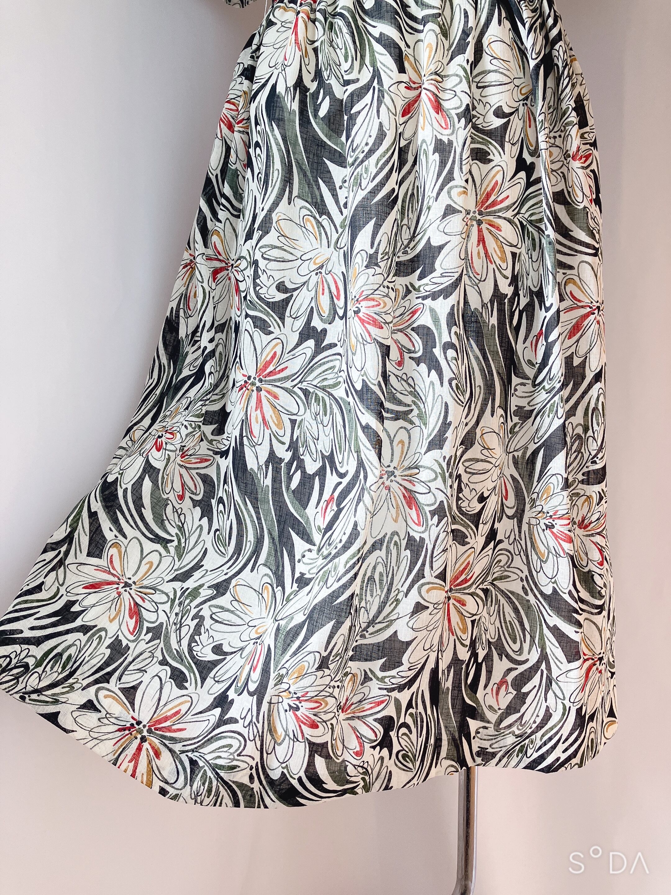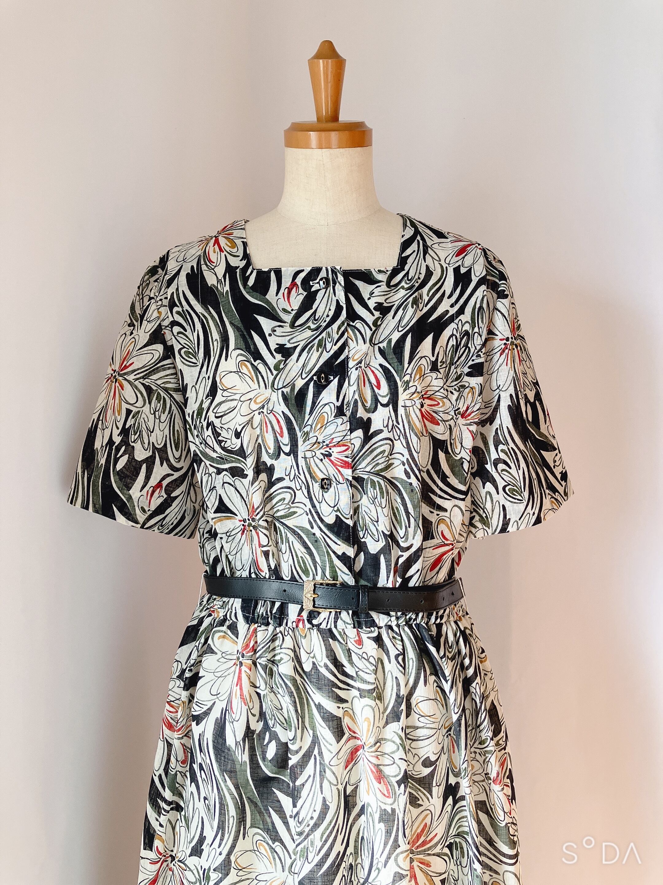 used レトロ 花柄 ベルト付き ワンピース 古着 ヴィンテージvintage