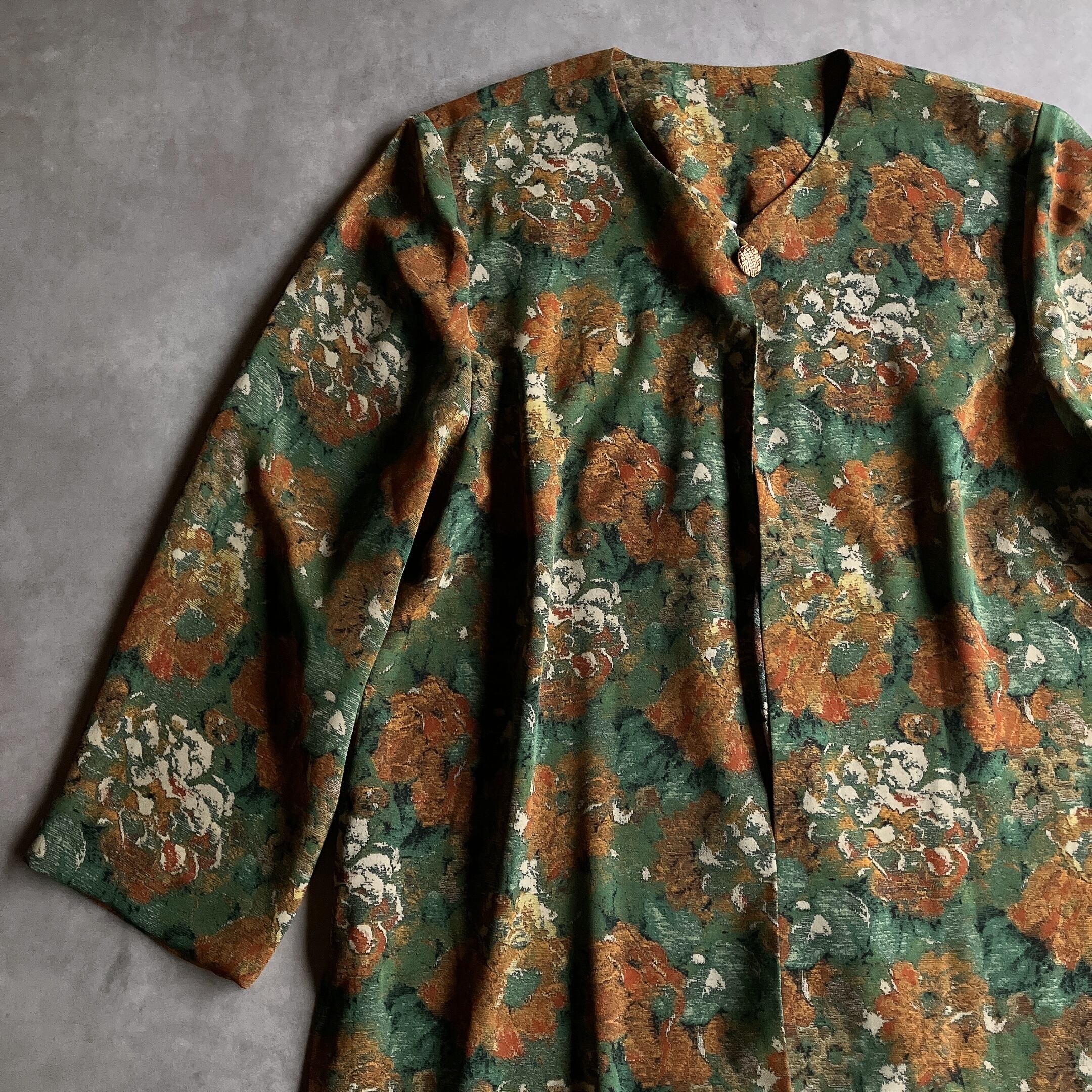 used レトロ 緑系 総柄 カーディガン 古着 ヴィンテージ vintage