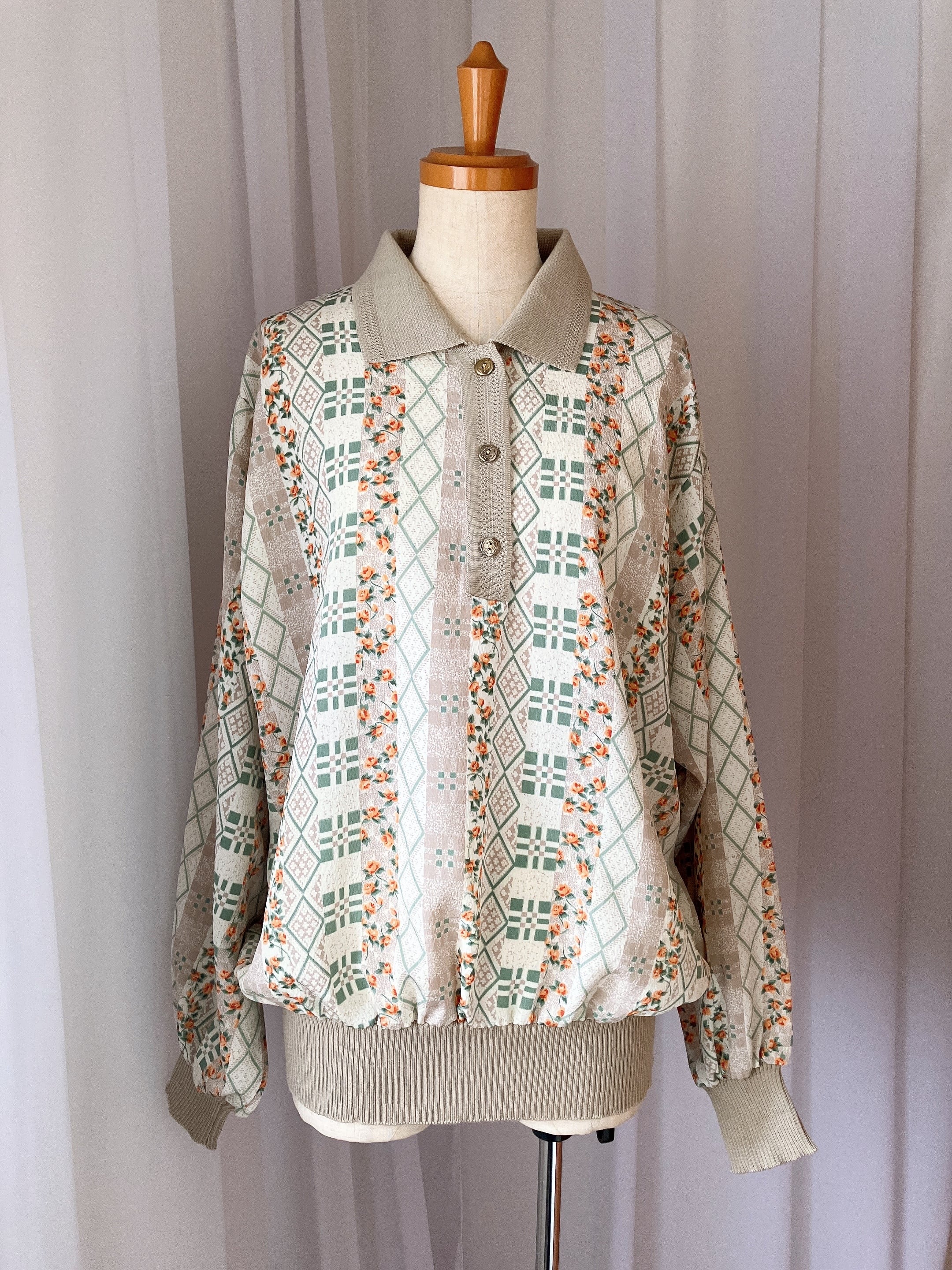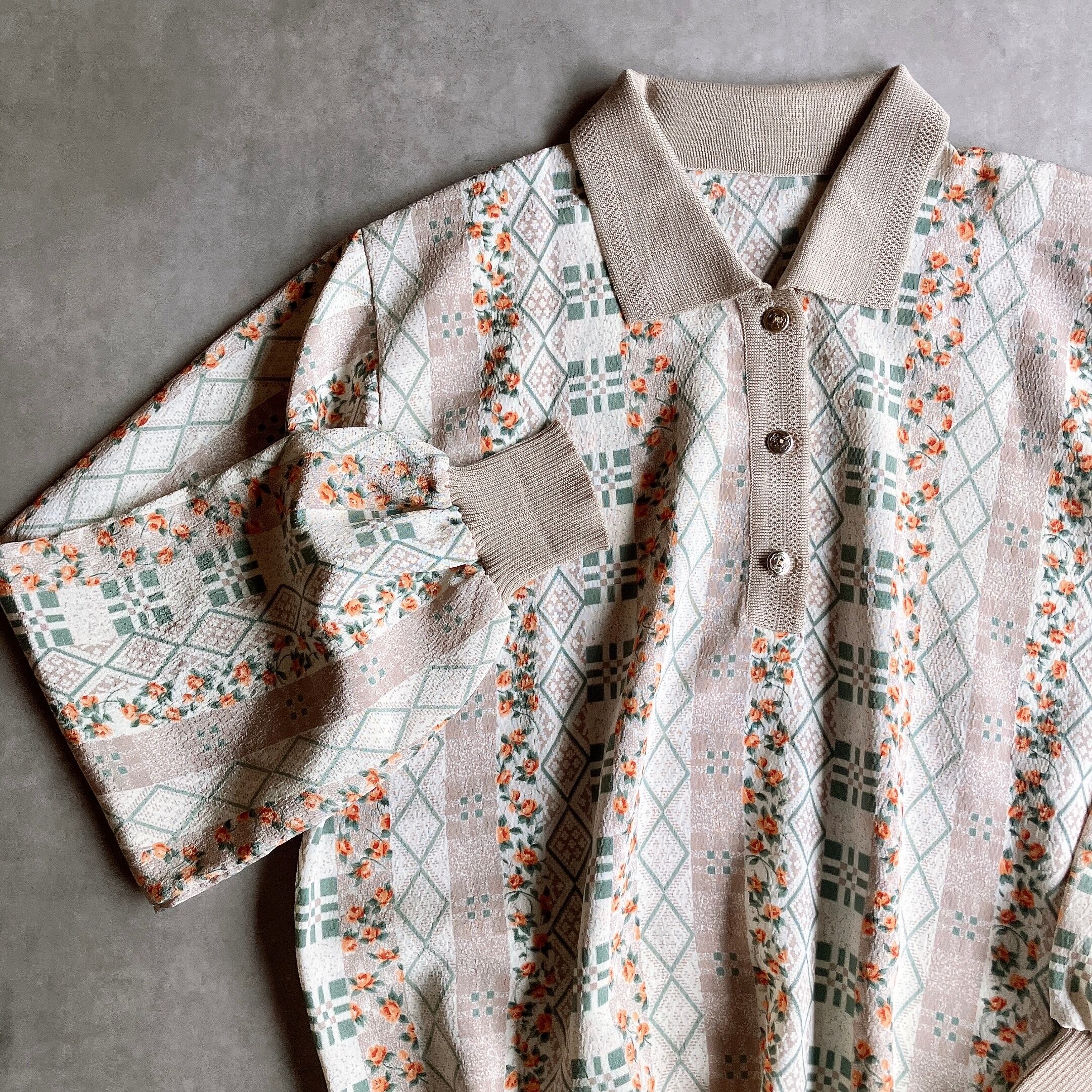 used レトロ 総柄 襟付き トップス 古着 ヴィンテージ vintage