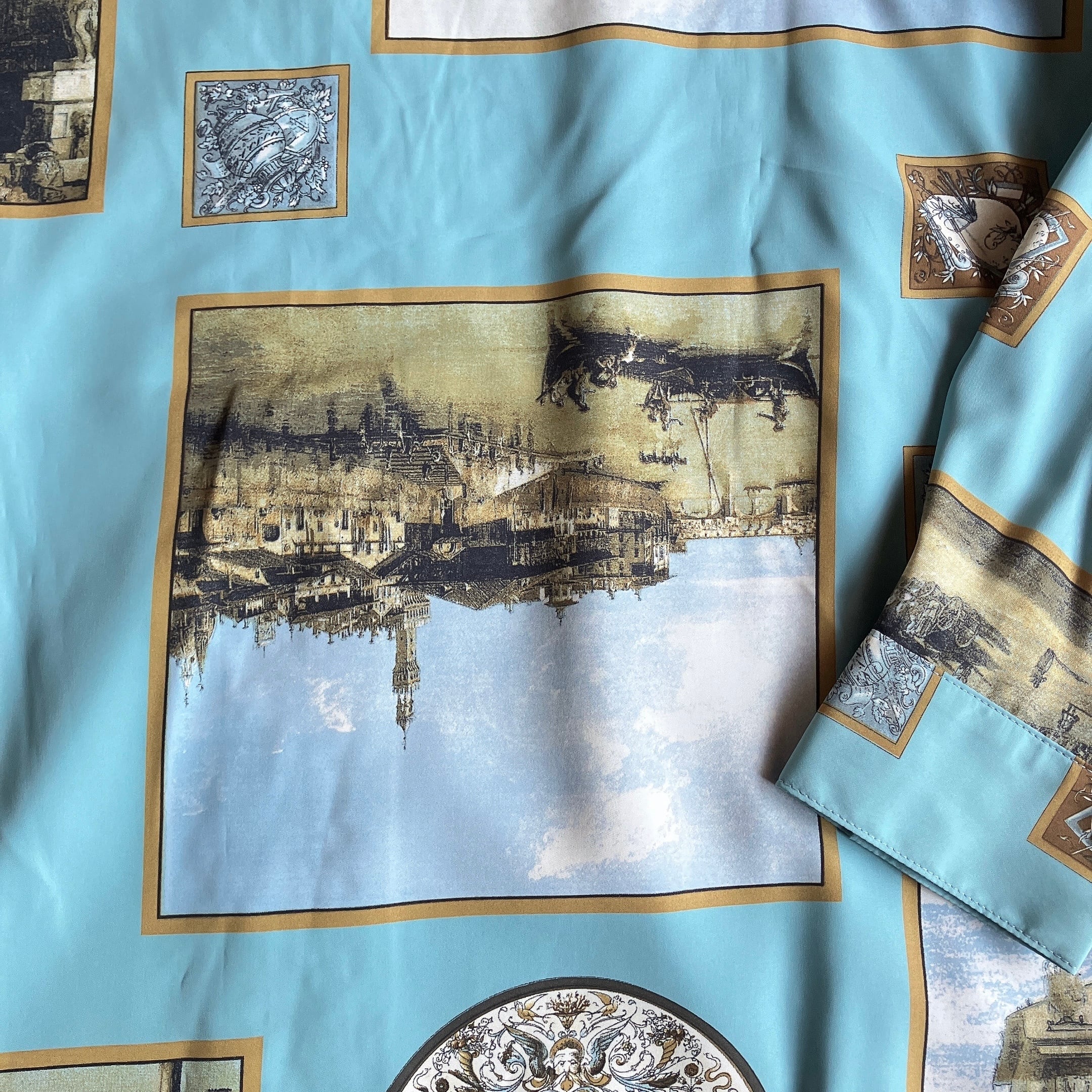 used レトロ 水色 風景画 シャツ 古着 ヴィンテージ vintage