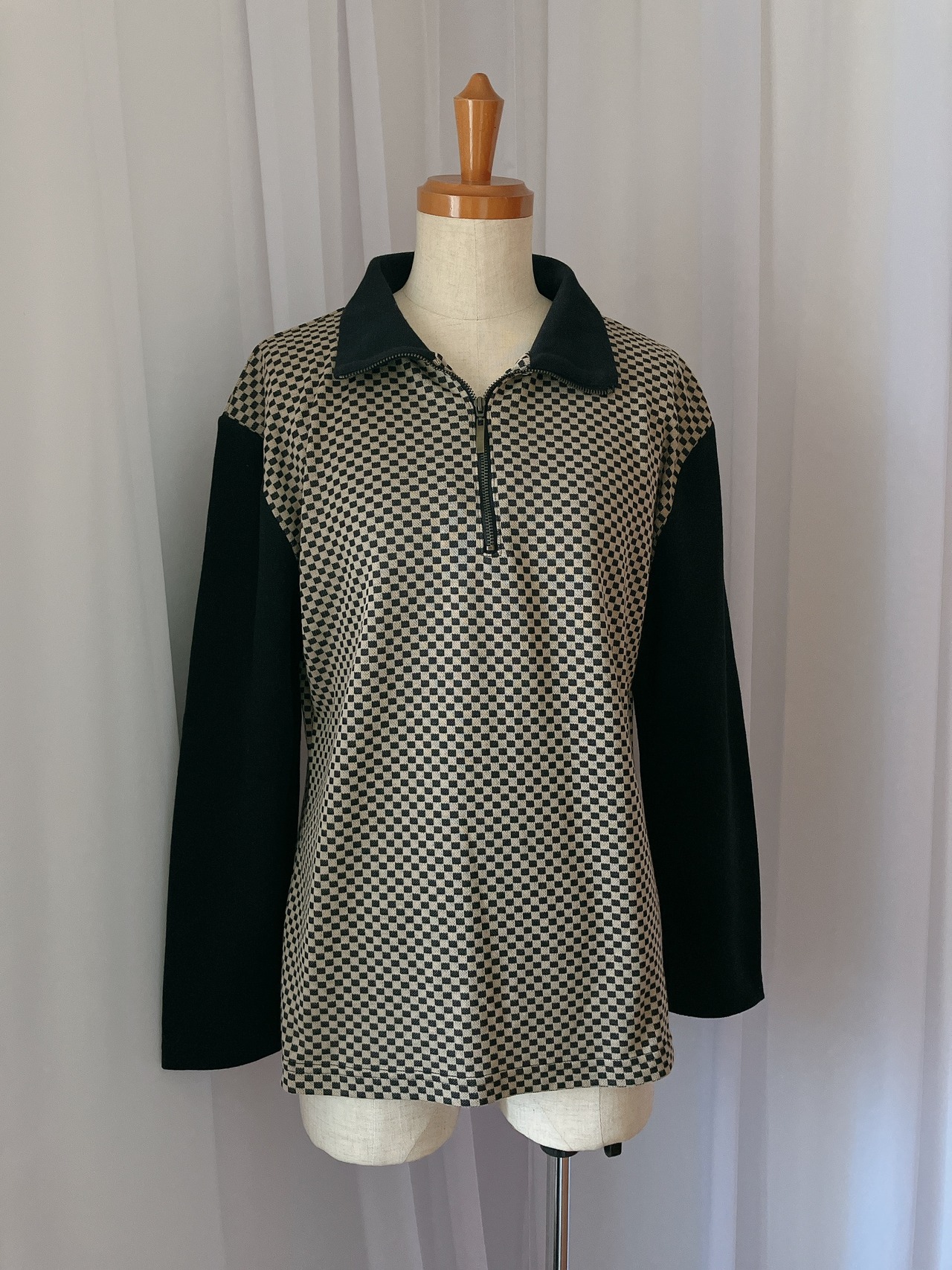 used レトロ 格子柄 ジップ トップス 古着 ヴィンテージ vintage