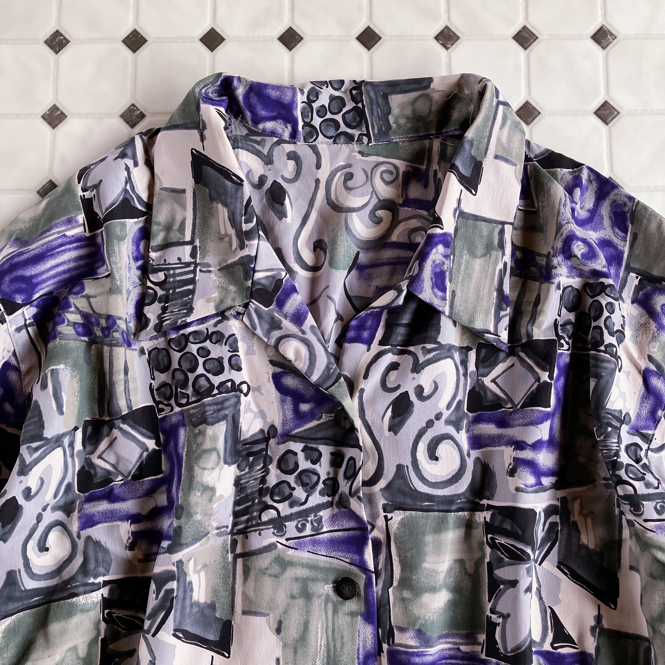 60s 70s 80s 90s の クラシカル で レトロ アンティーク ビンテージ / vintage ヴィンテージ なテイストの 古着 アート柄 ユニセックス シャツ ブラウス ワンピース を出品しております。一点物 古着 もたくさん扱っておりますので、ご覧下さいませ♪
