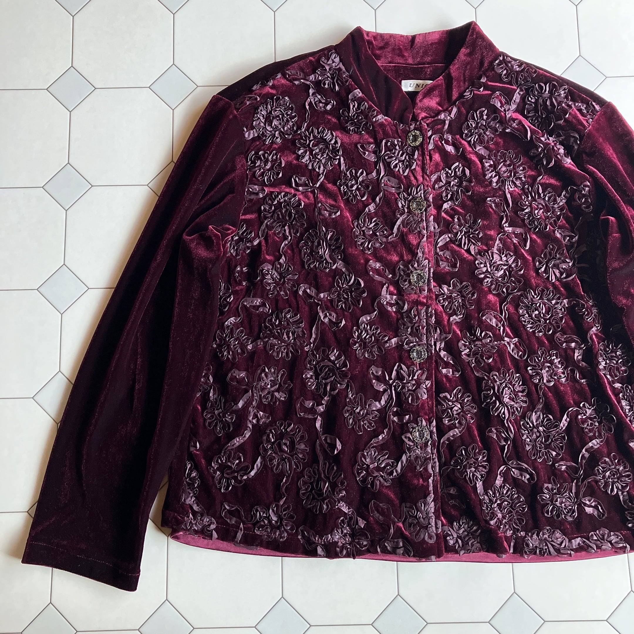used レトロ コード刺繍 ベロアジャケット古着 ヴィンテージ vintage
