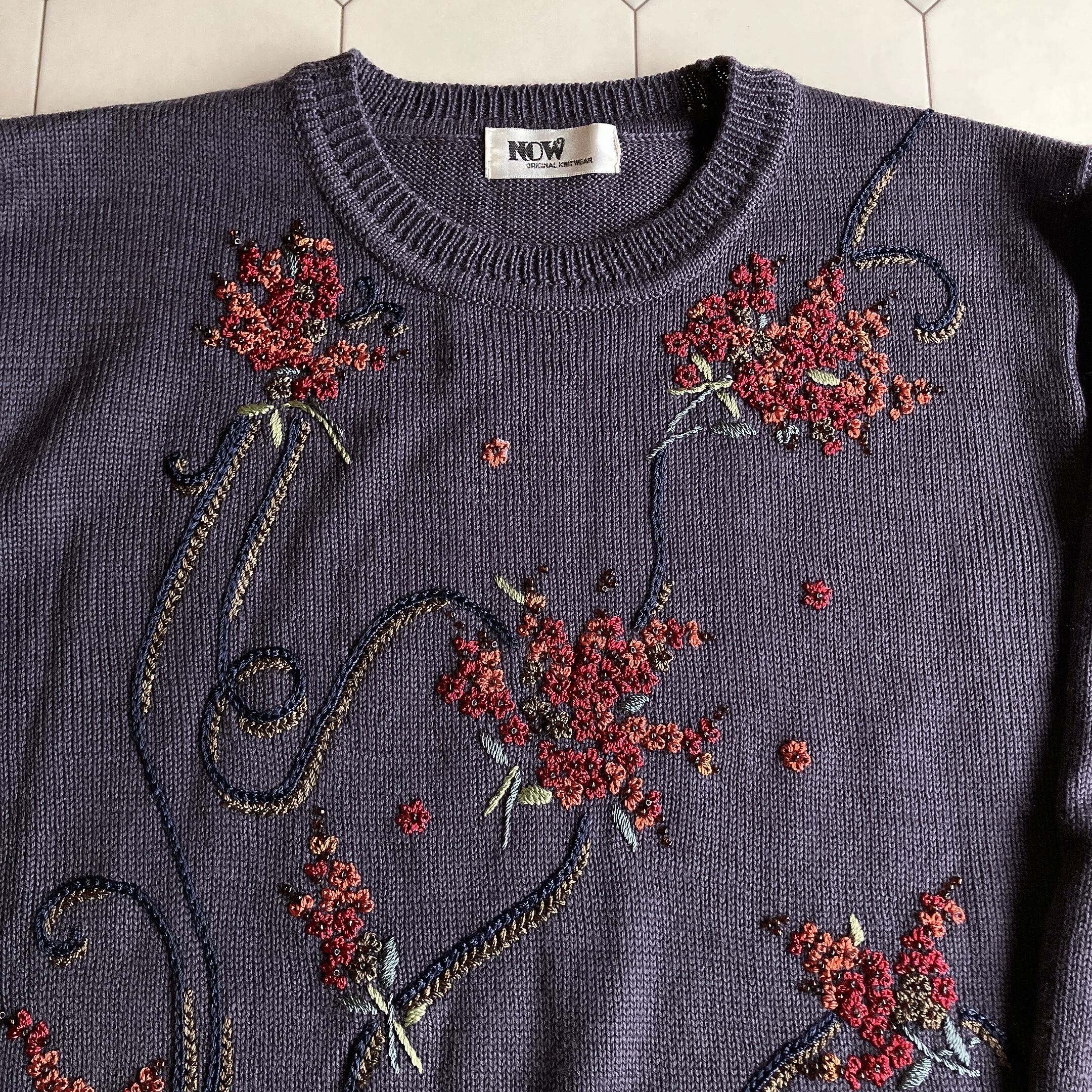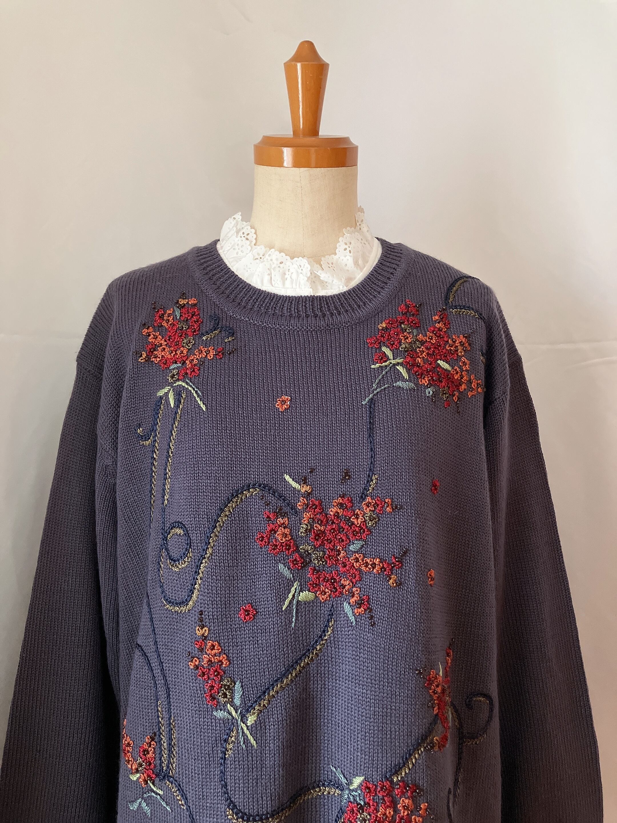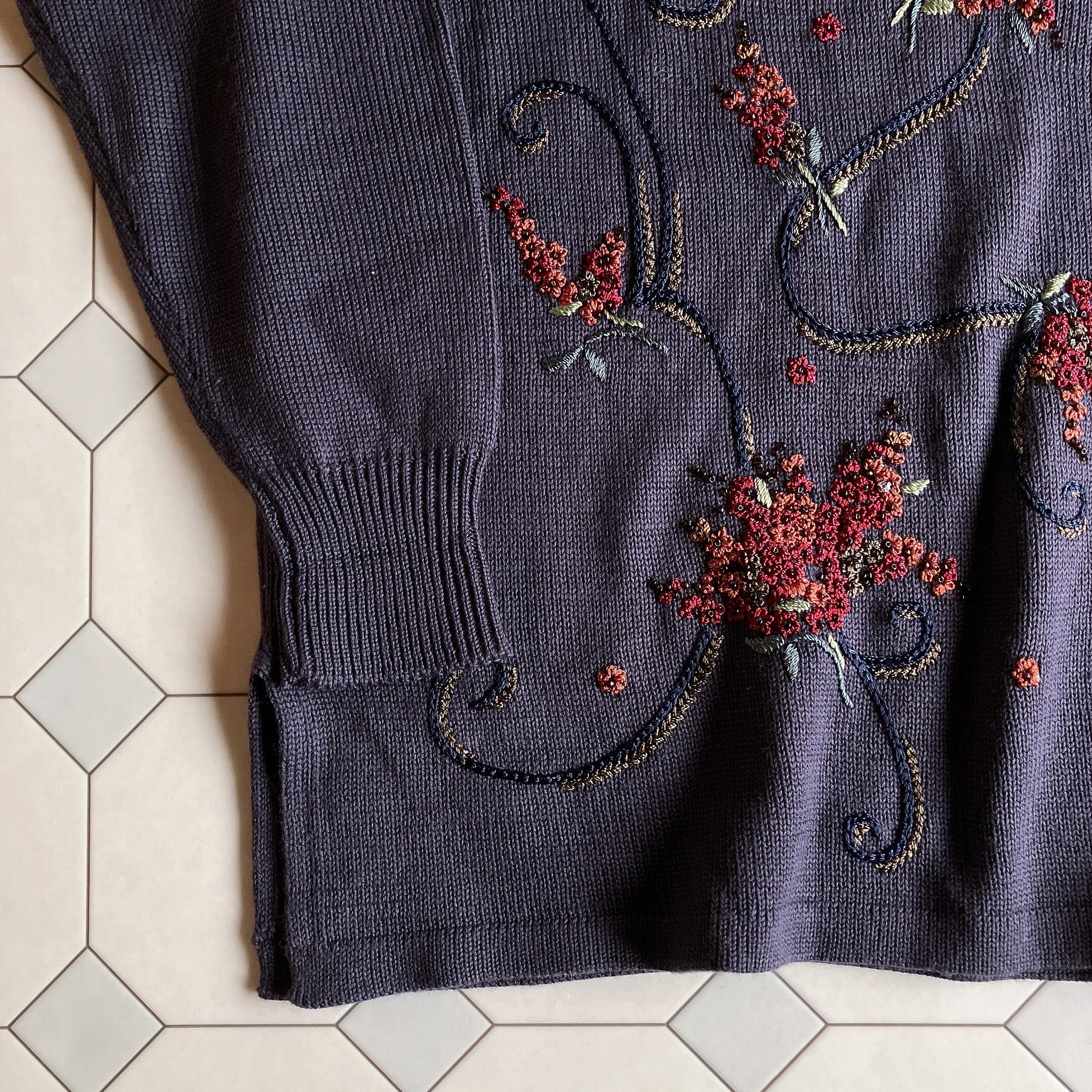 used レトロ 花刺繍 ニットトップス 古着 ヴィンテージ vintage