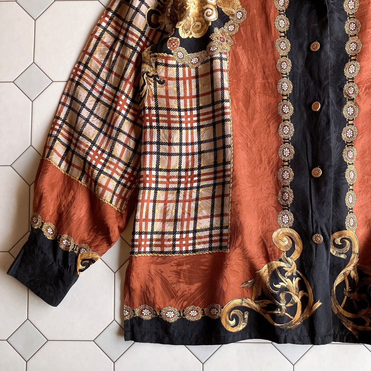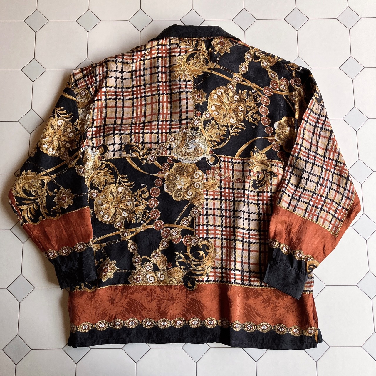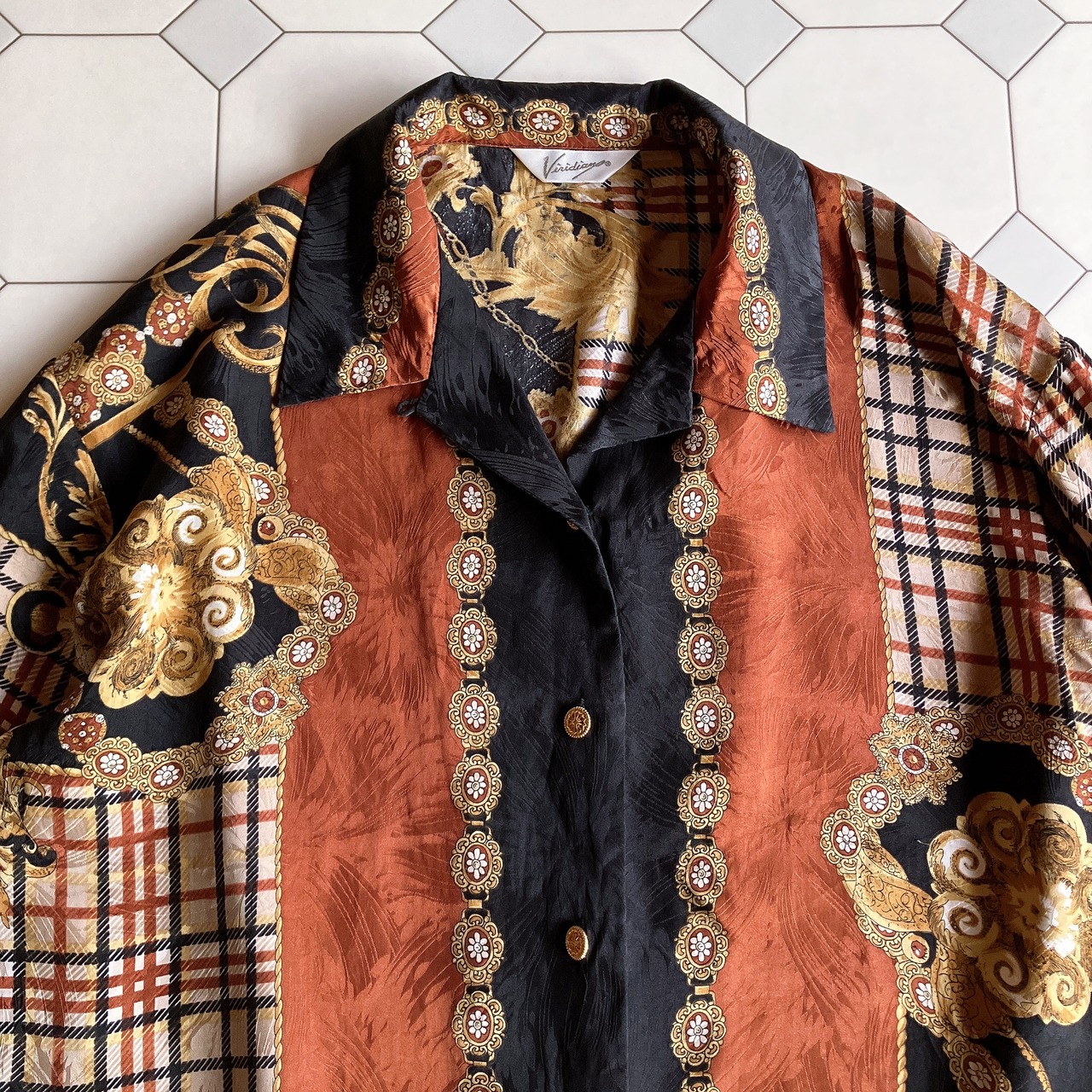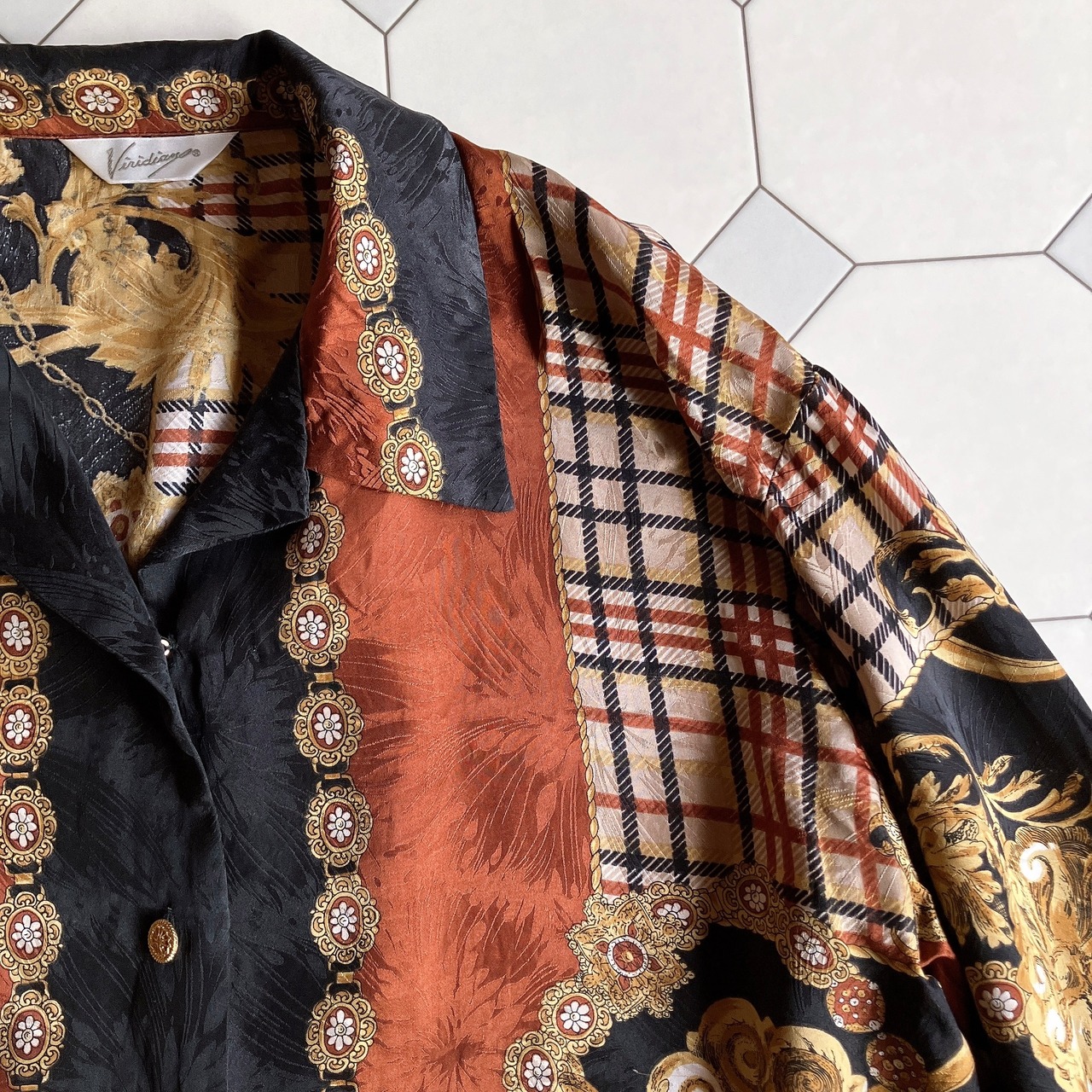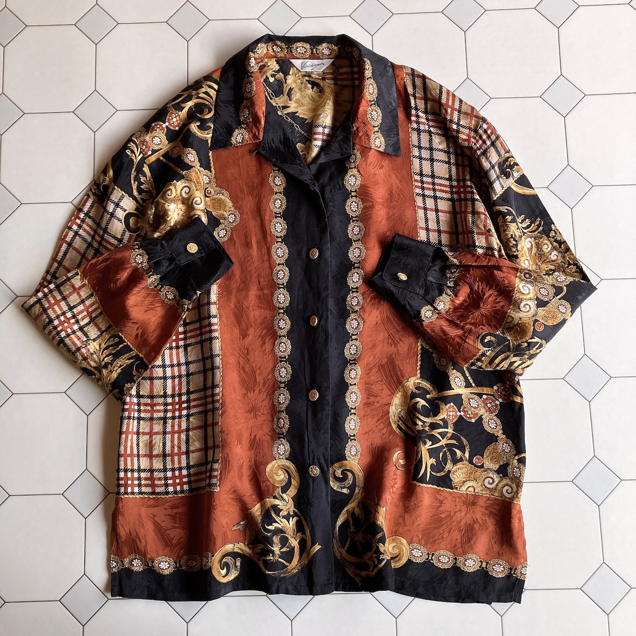 used レトロ スカーフ模様 総柄ブラウス 古着 ヴィンテージ vintage