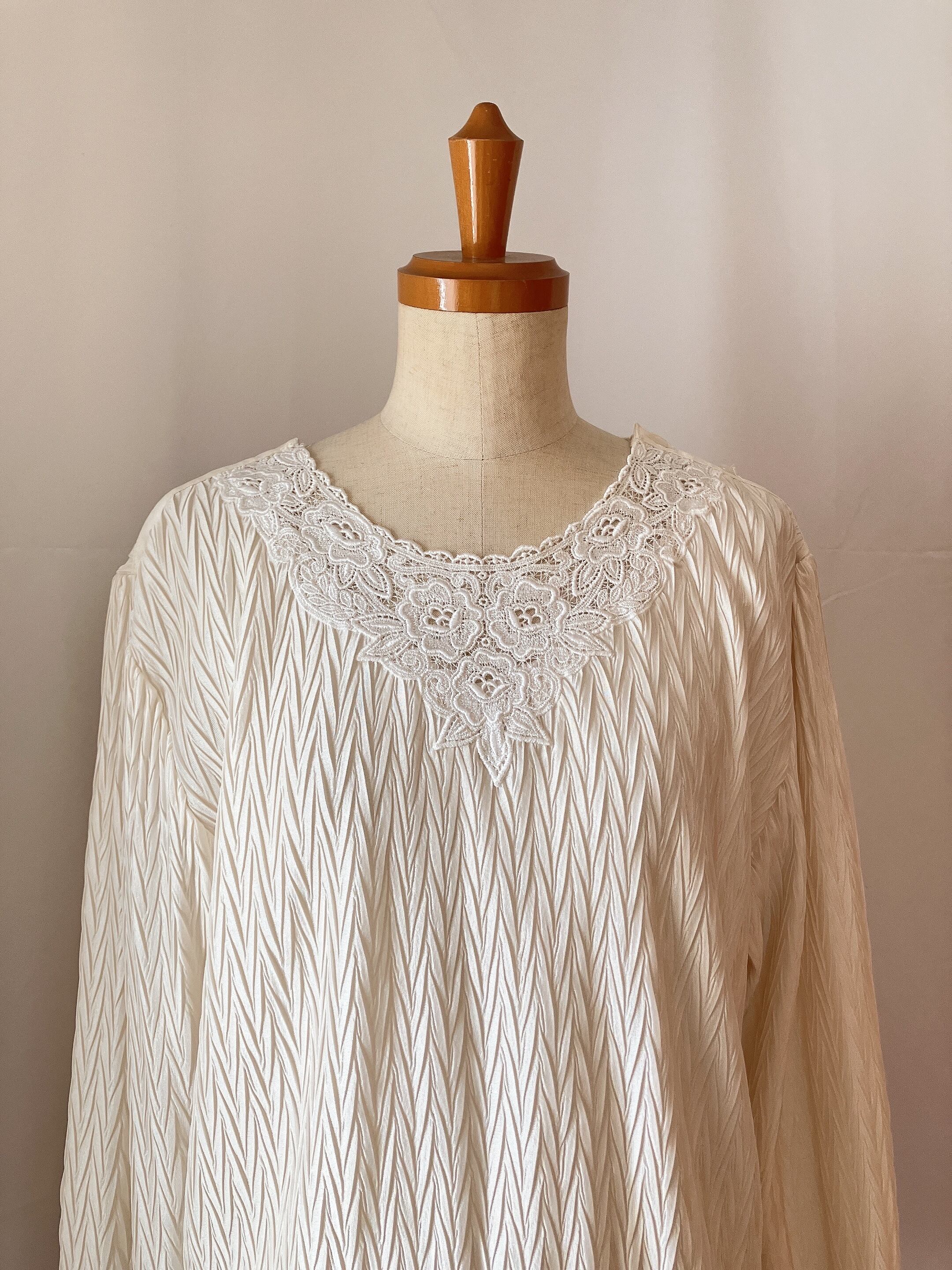 used レトロ 白プリーツ トップス 古着 ヴィンテージ vintage