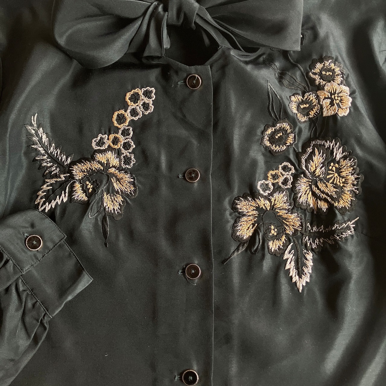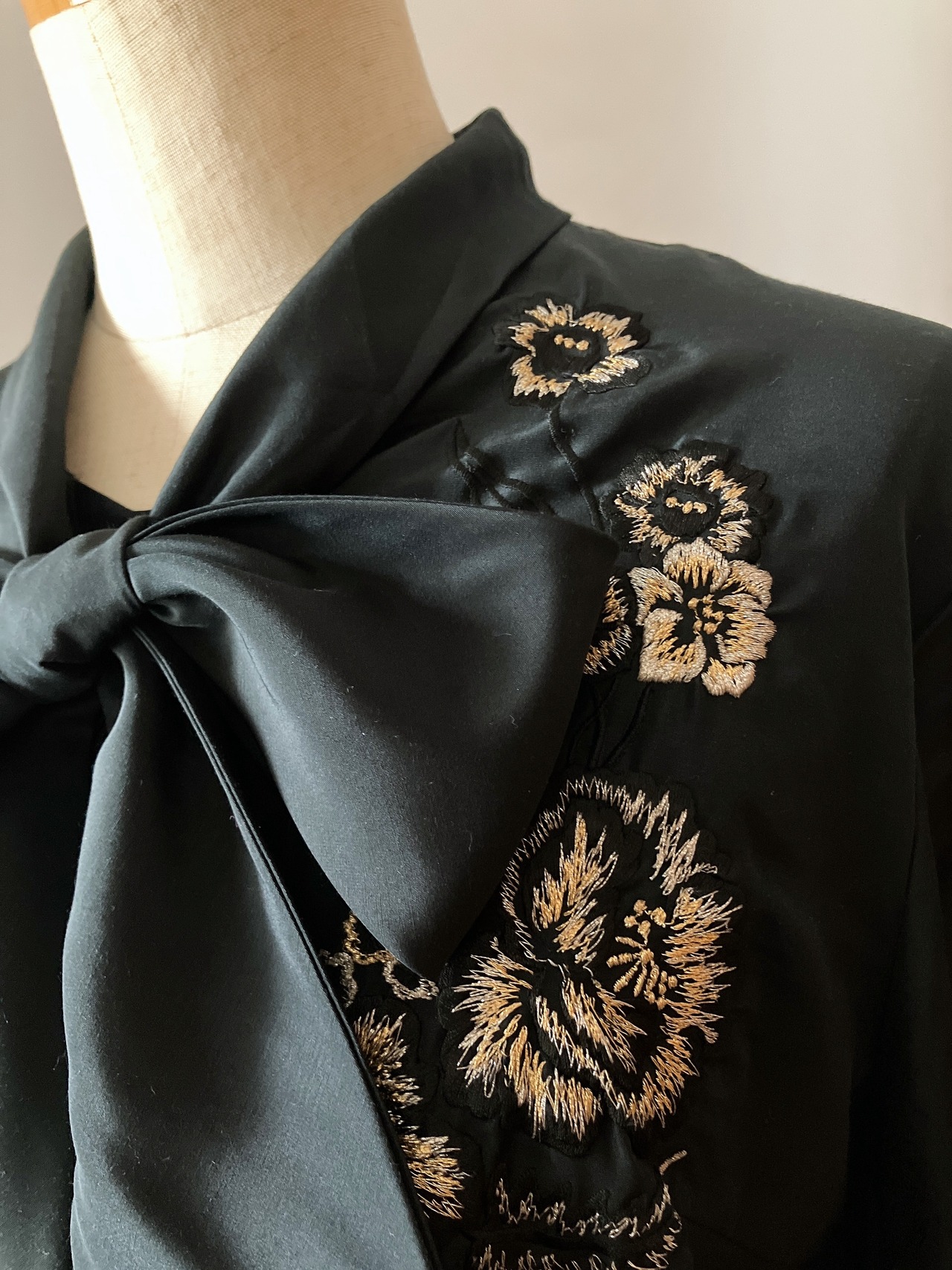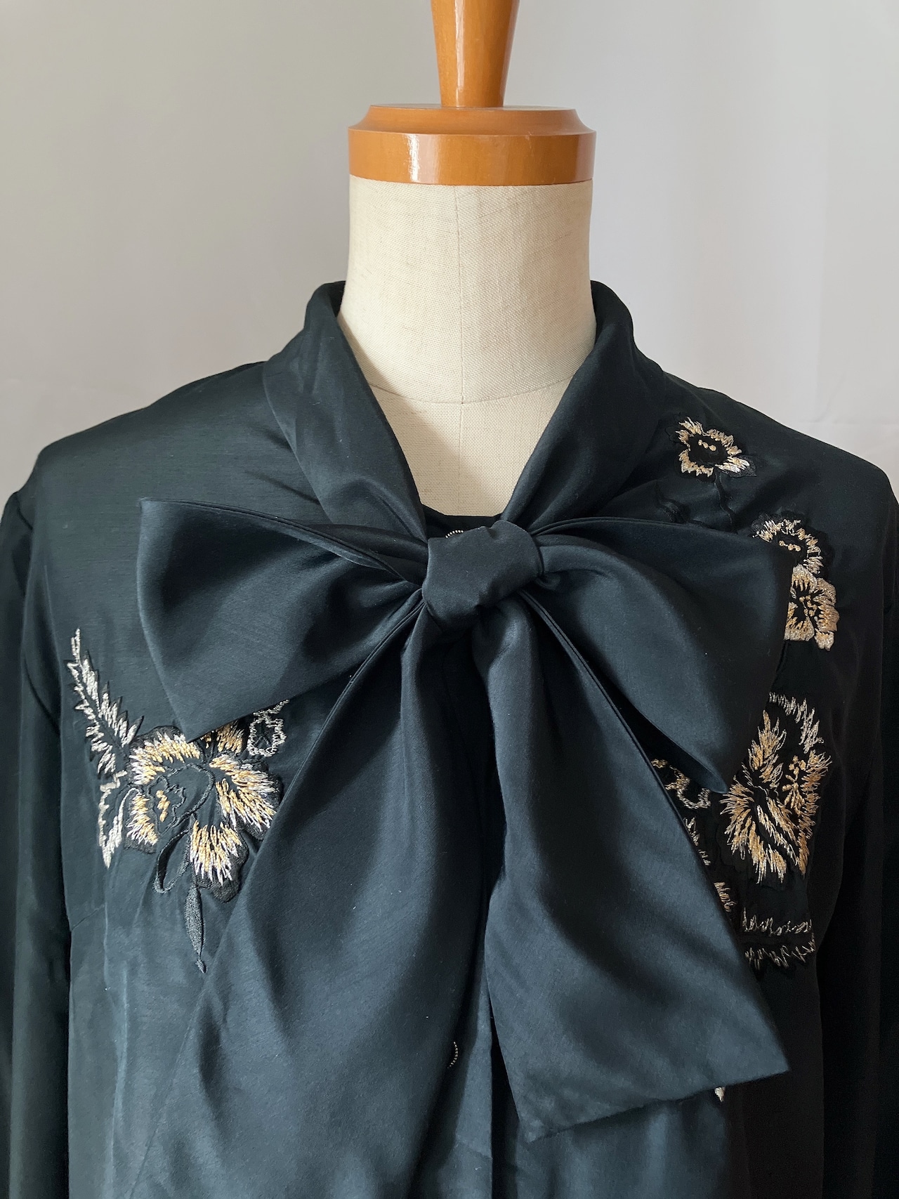 used レトロ 黒 リボンタイ ブラウス 古着 ヴィンテージ vintage