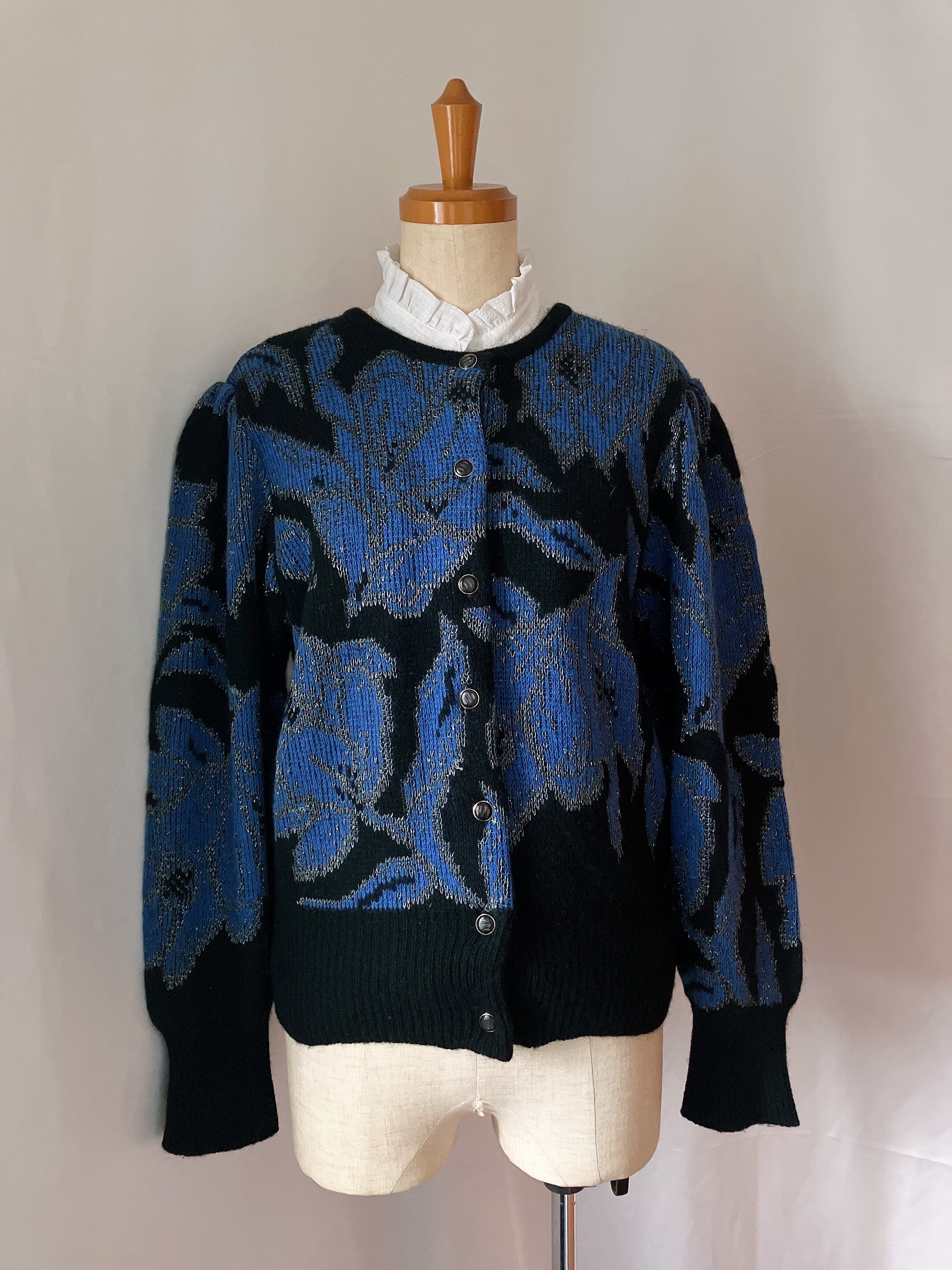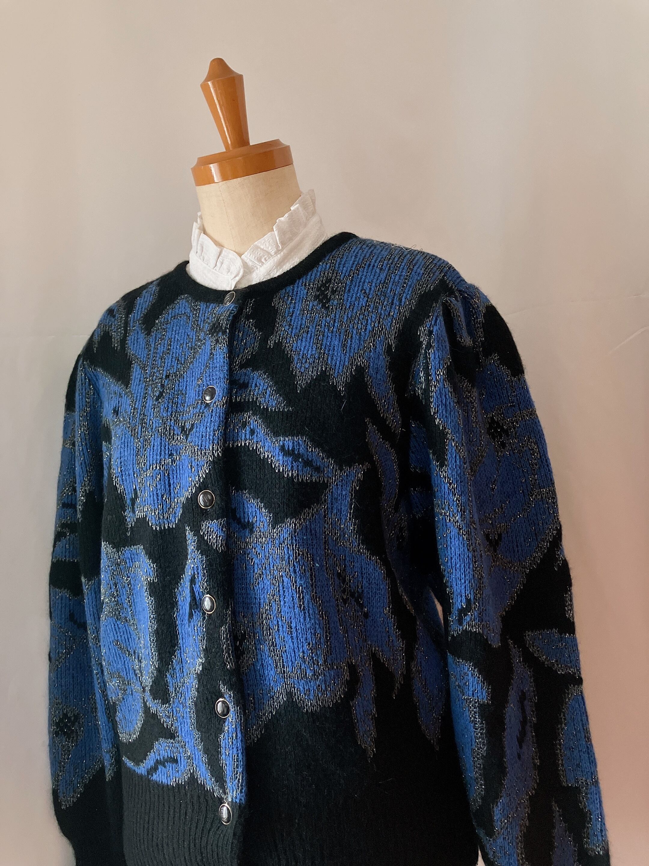 used レトロ 青×黒 ニットカーディガン 古着 ヴィンテージ vintage