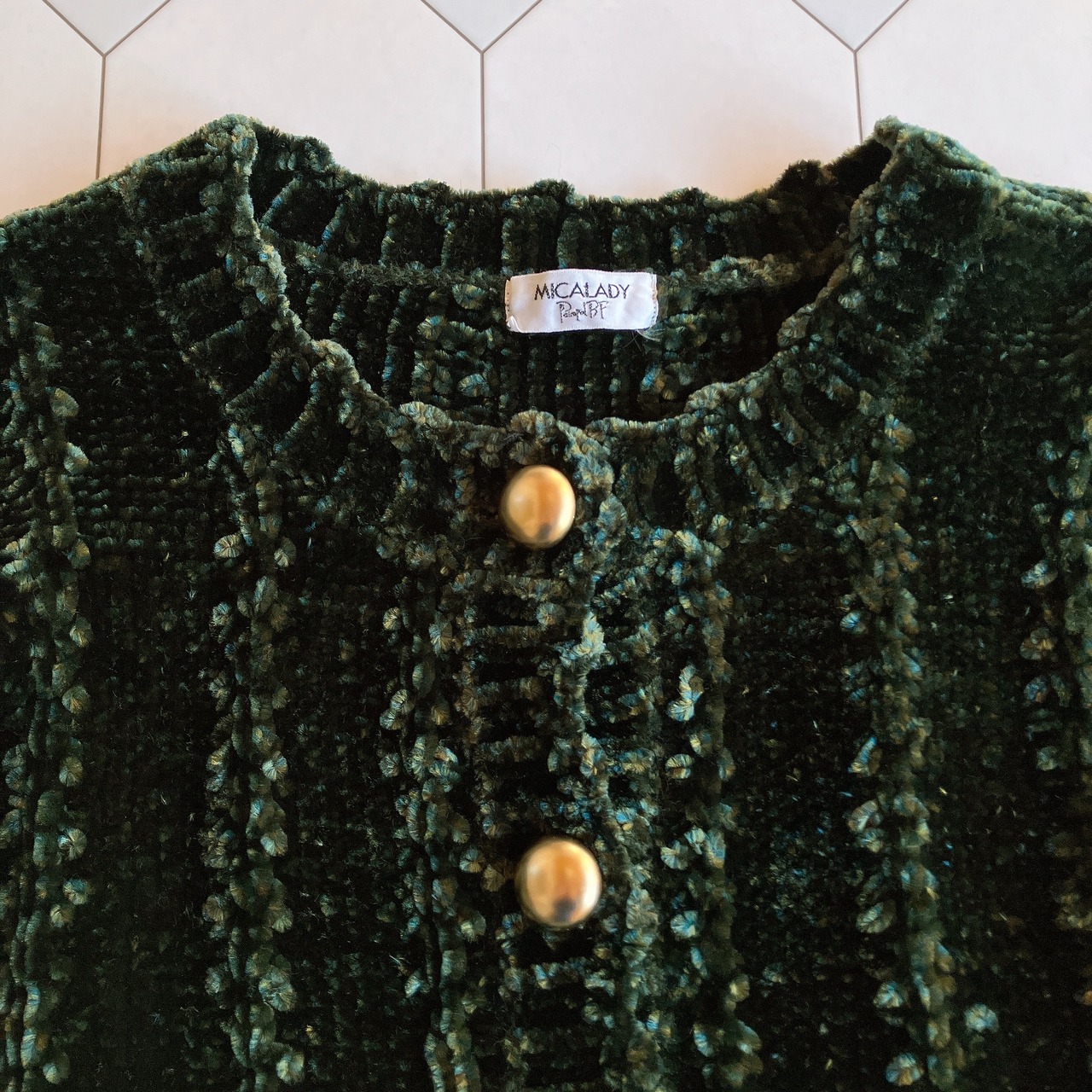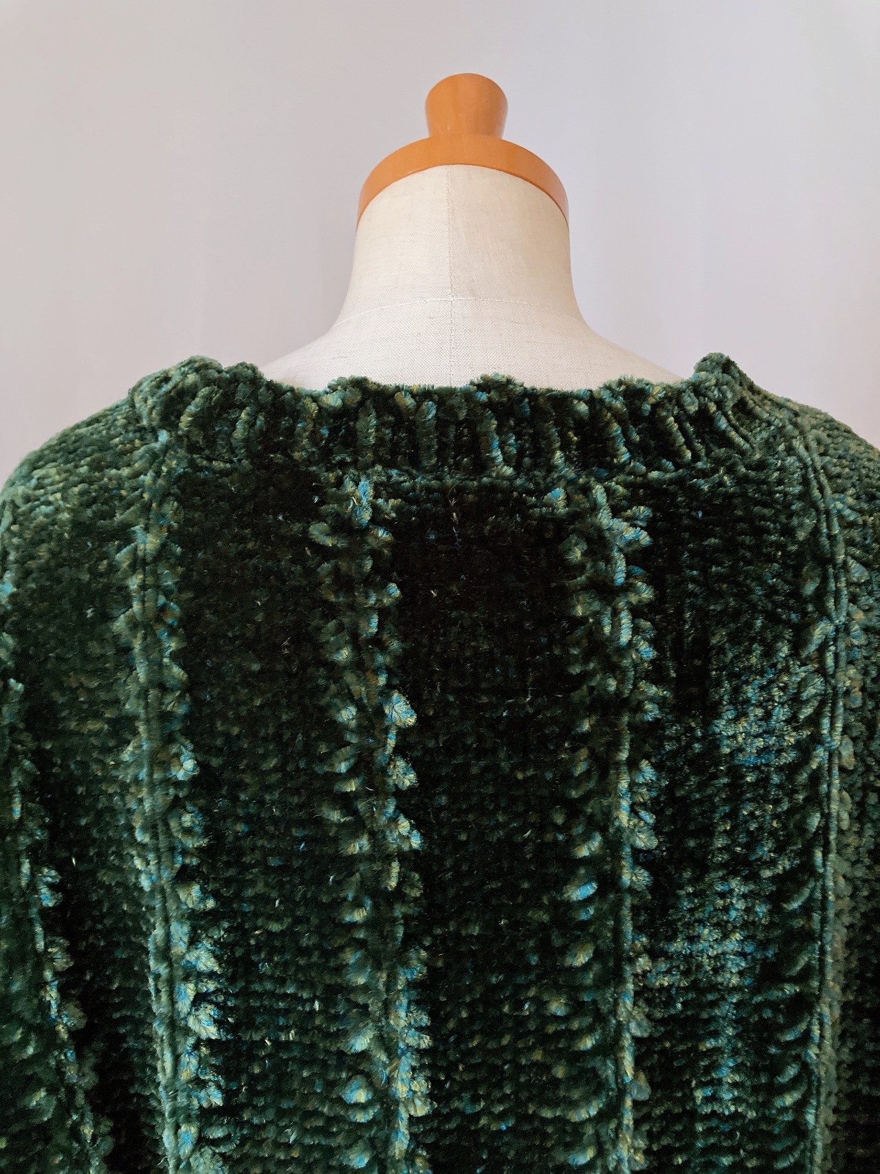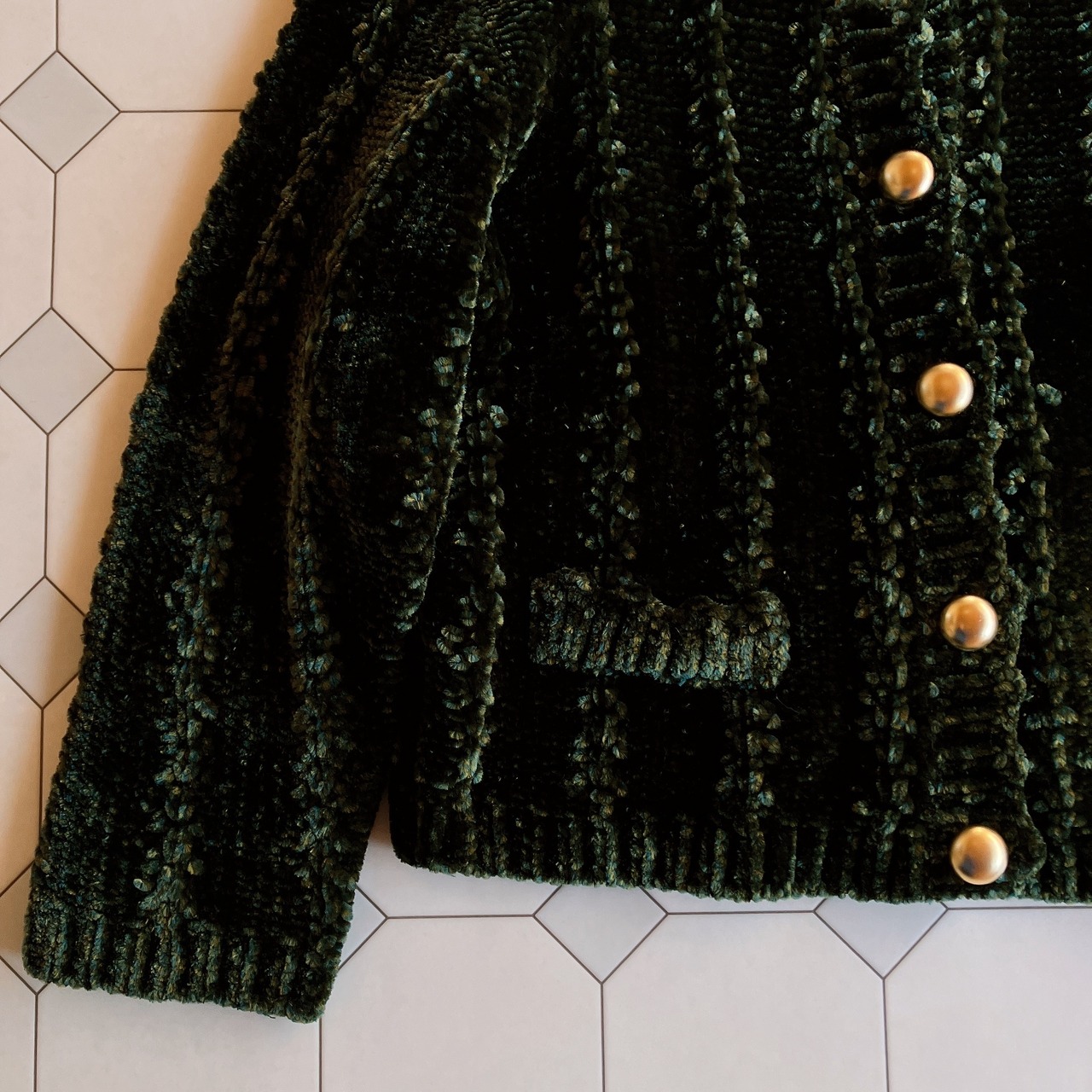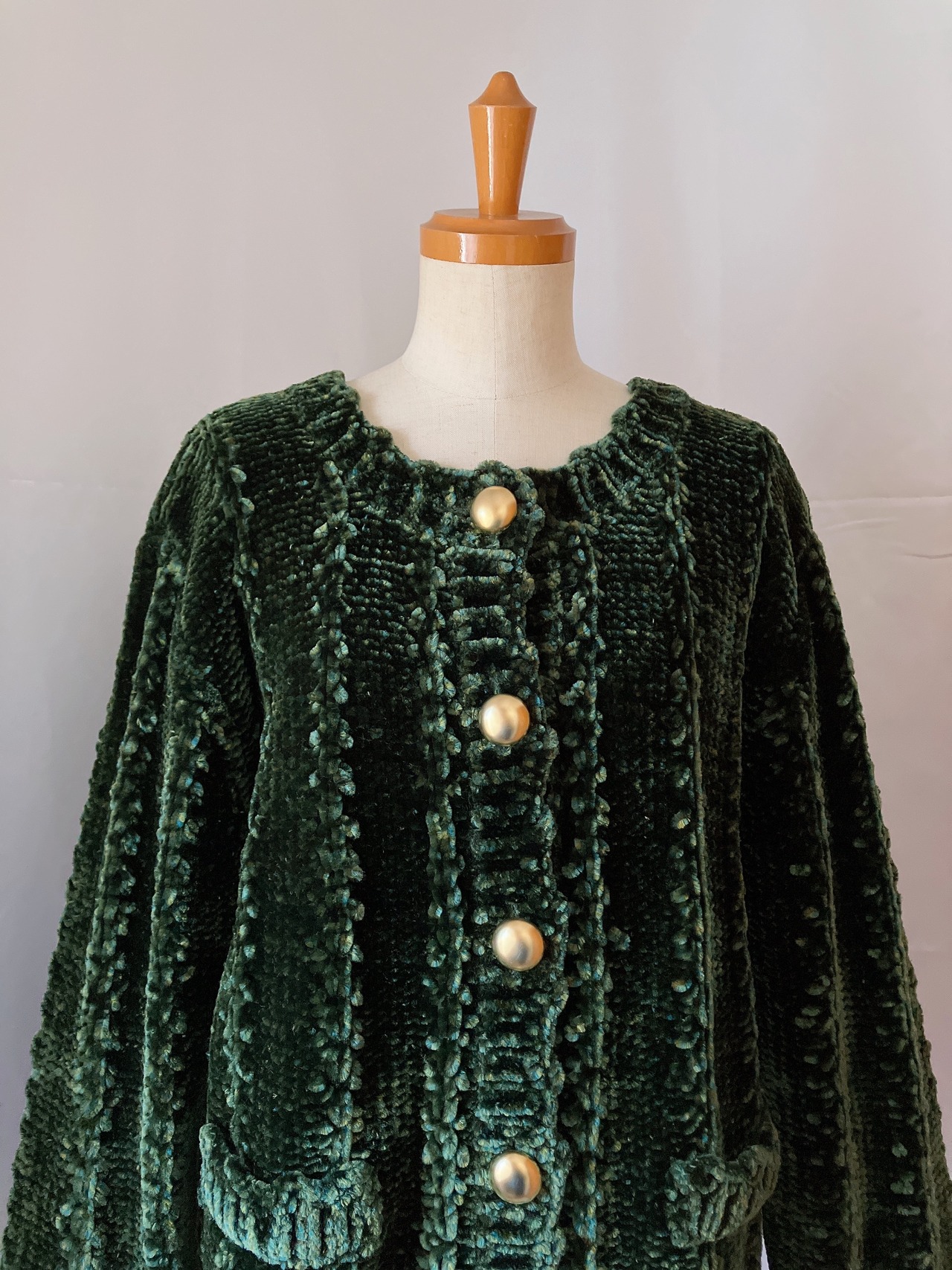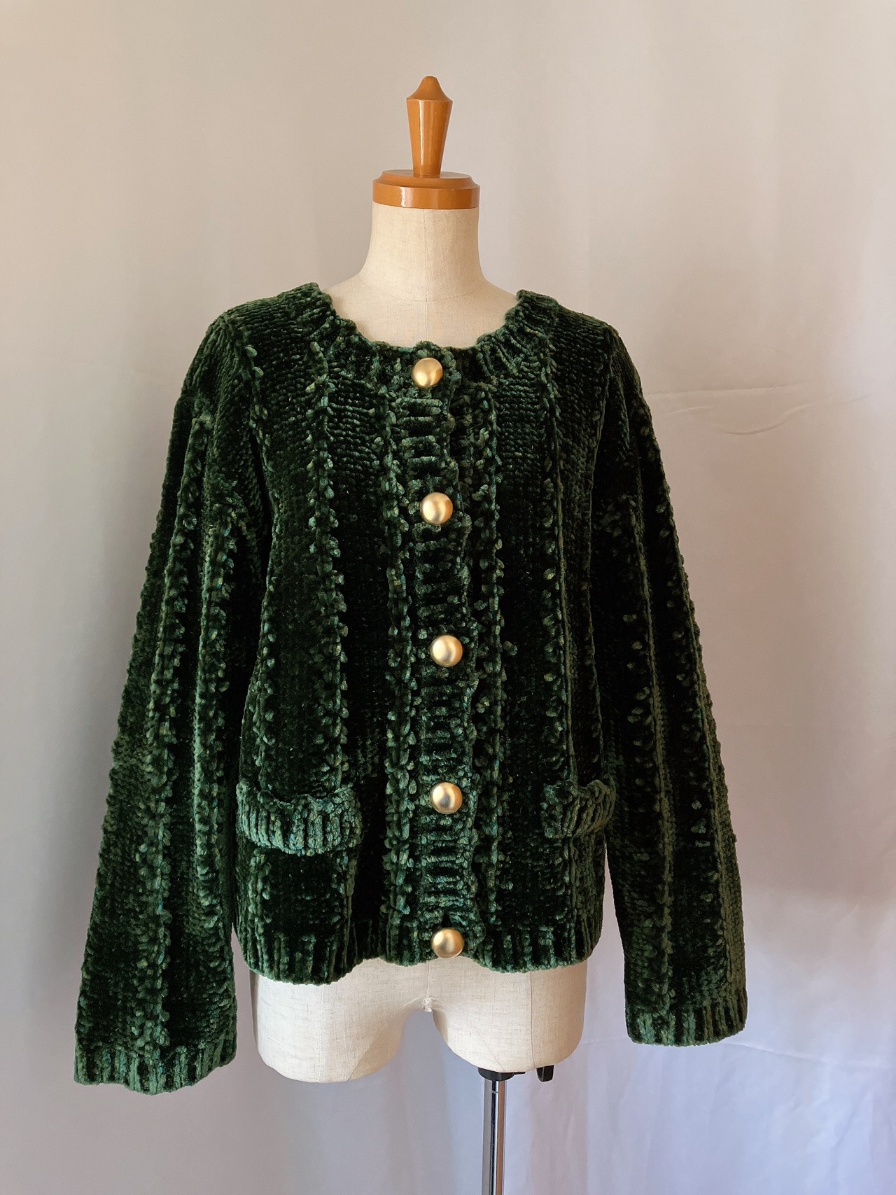 このカーディガンは、ベルベット素材で作られており、柔らかく高級感があります。