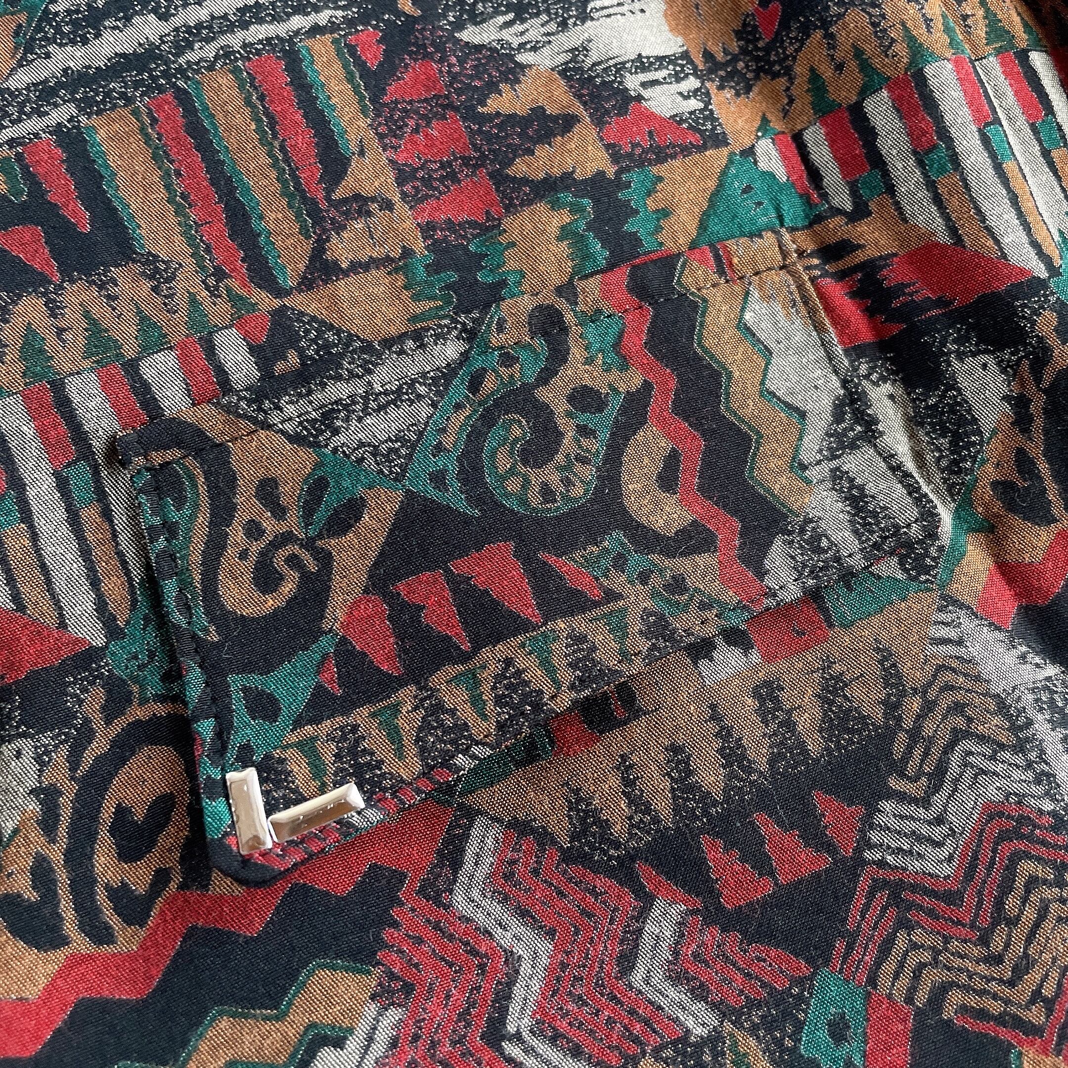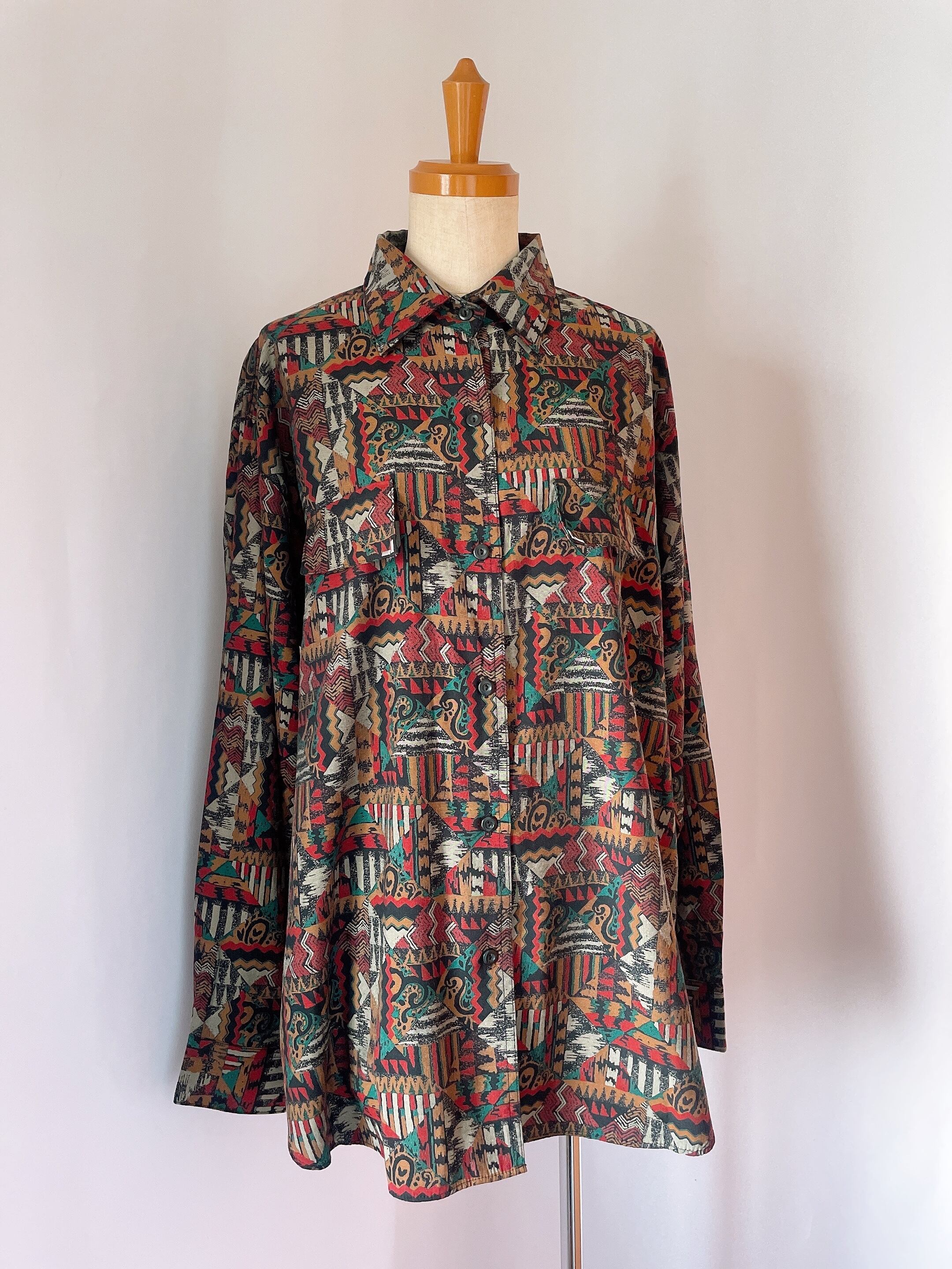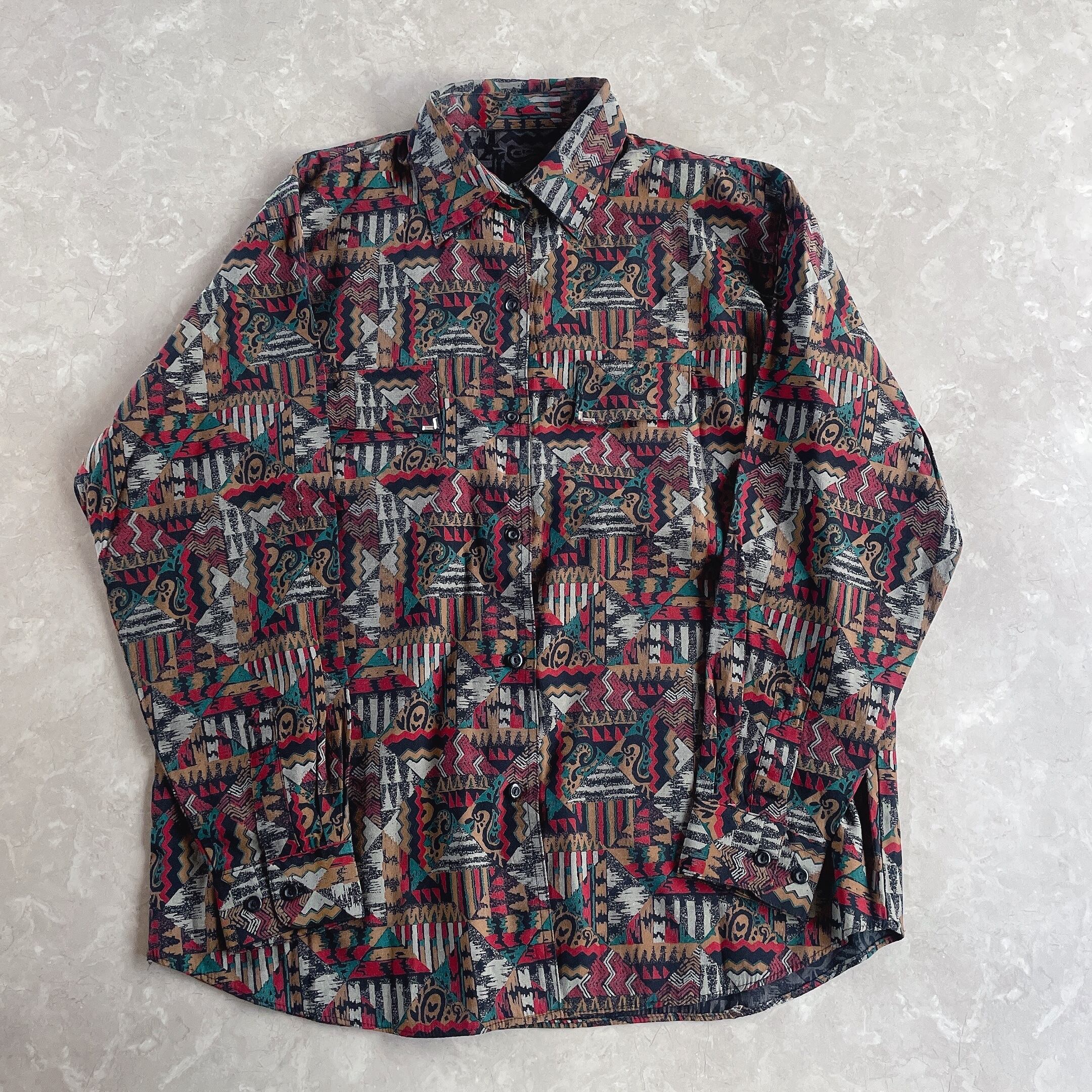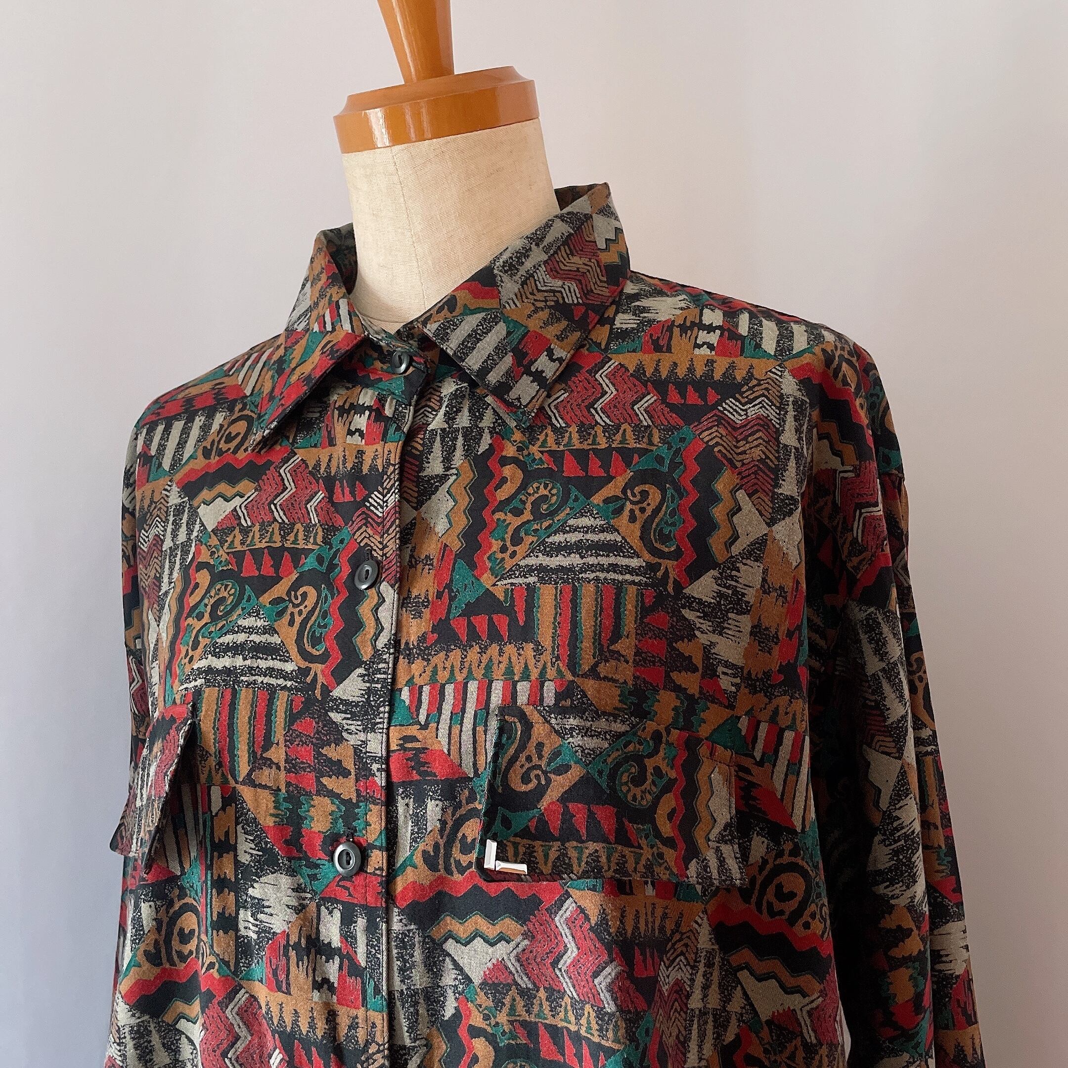 used レトロ 幾何学模様 総柄 シャツ 古着 ヴィンテージ vintage