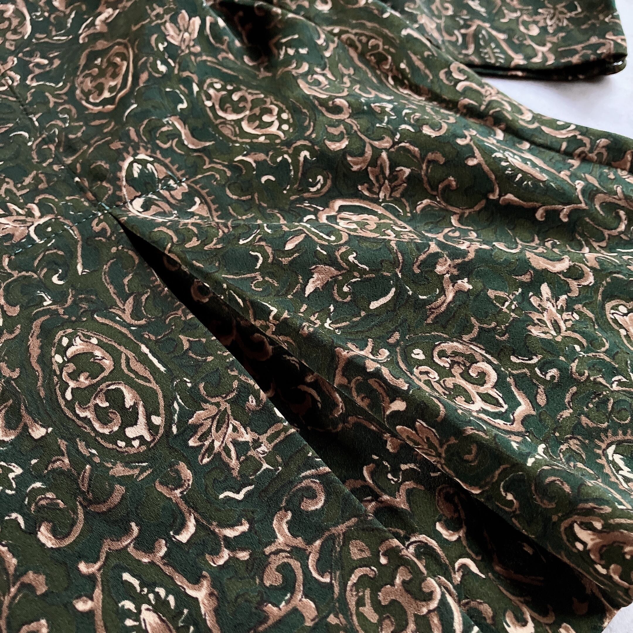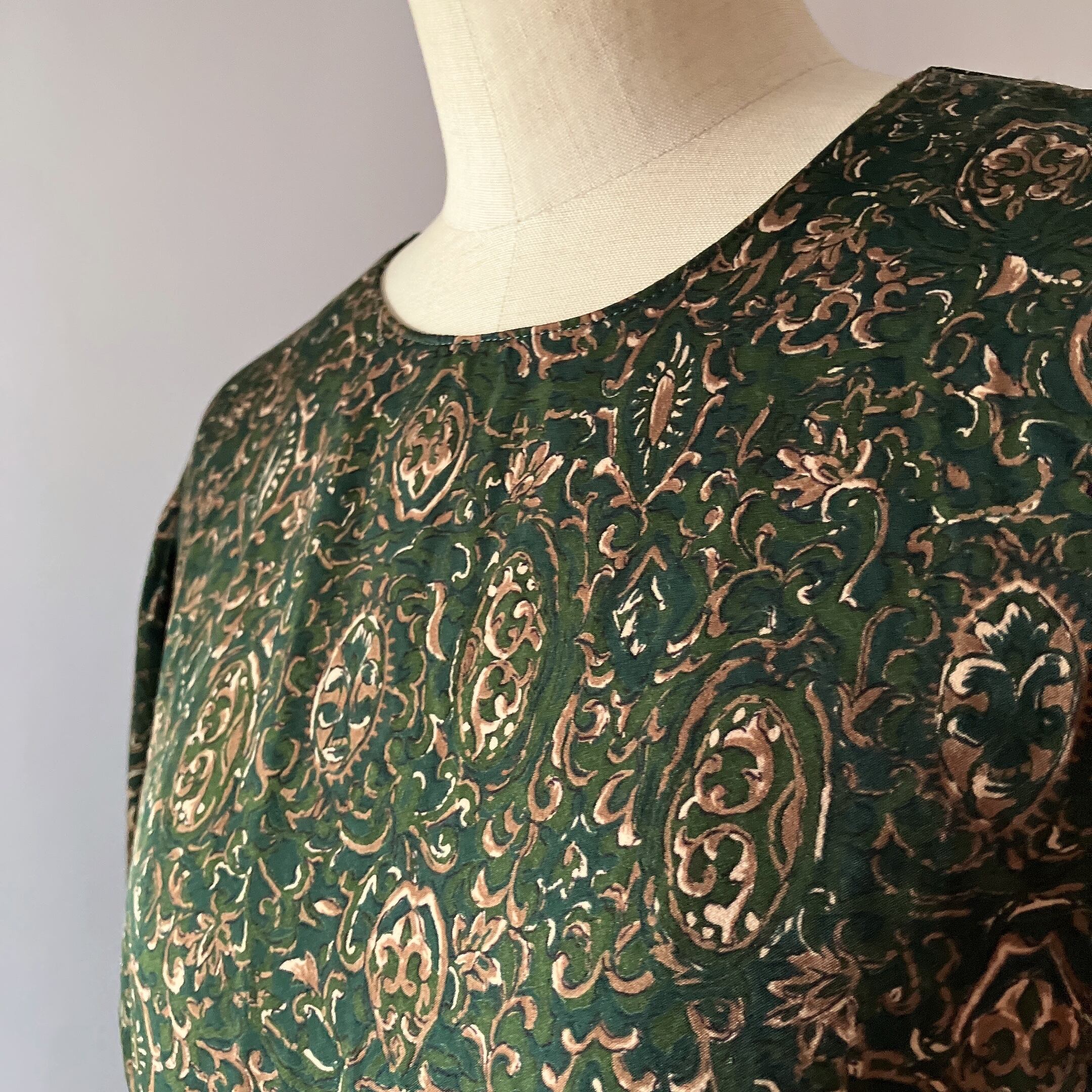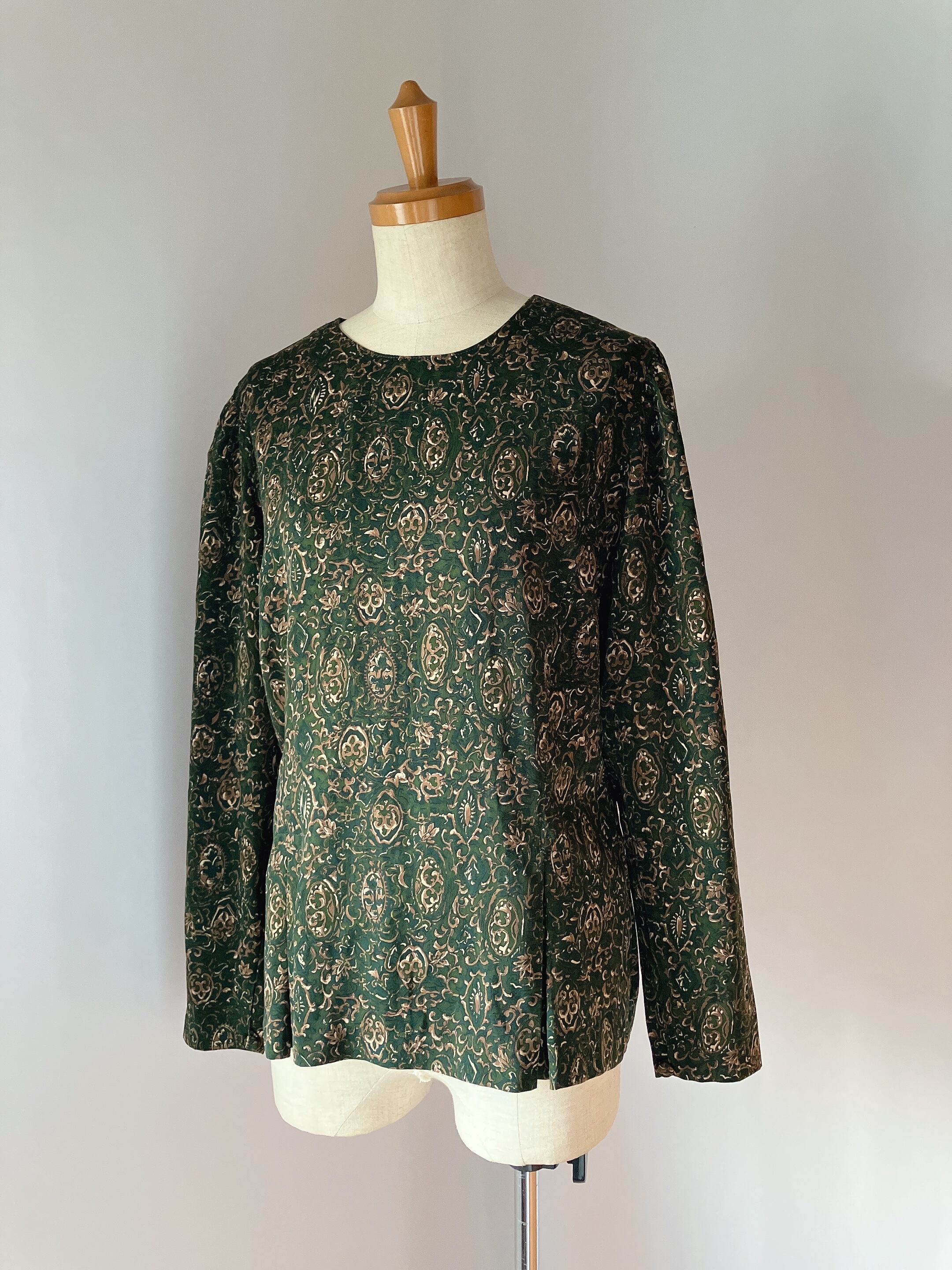 used レトロ 深緑 総柄 トップス 古着 ヴィンテージ vintage