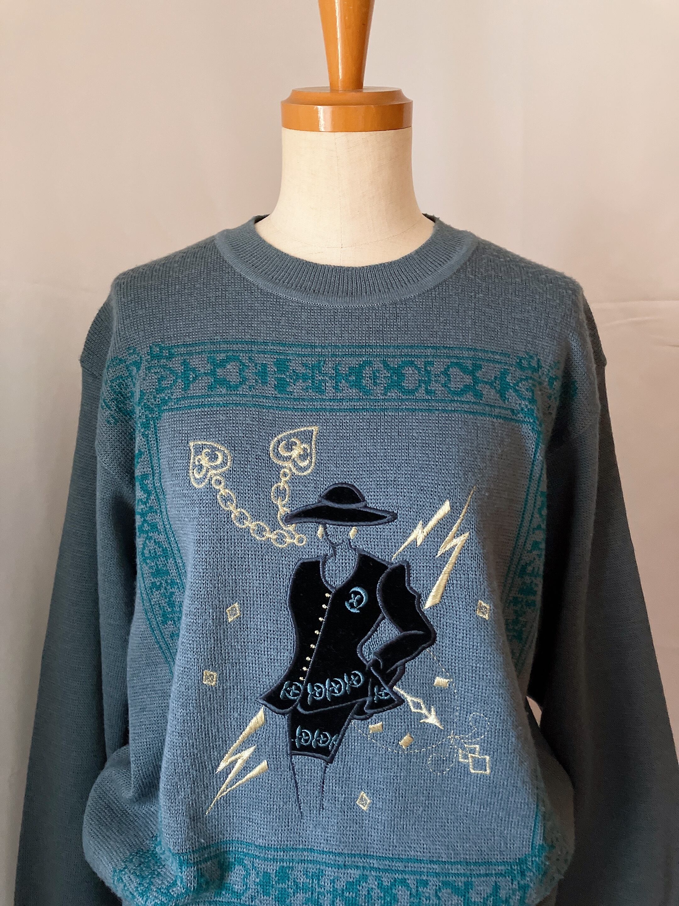 used レトロ アップリケ 刺繍ニット 古着 ヴィンテージ vintage