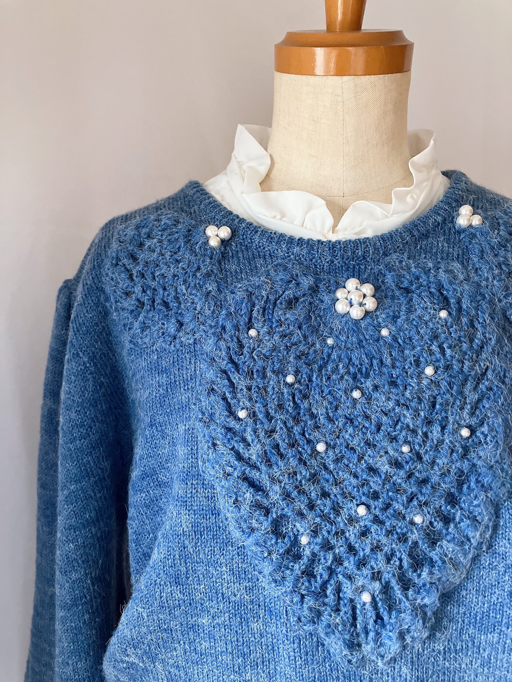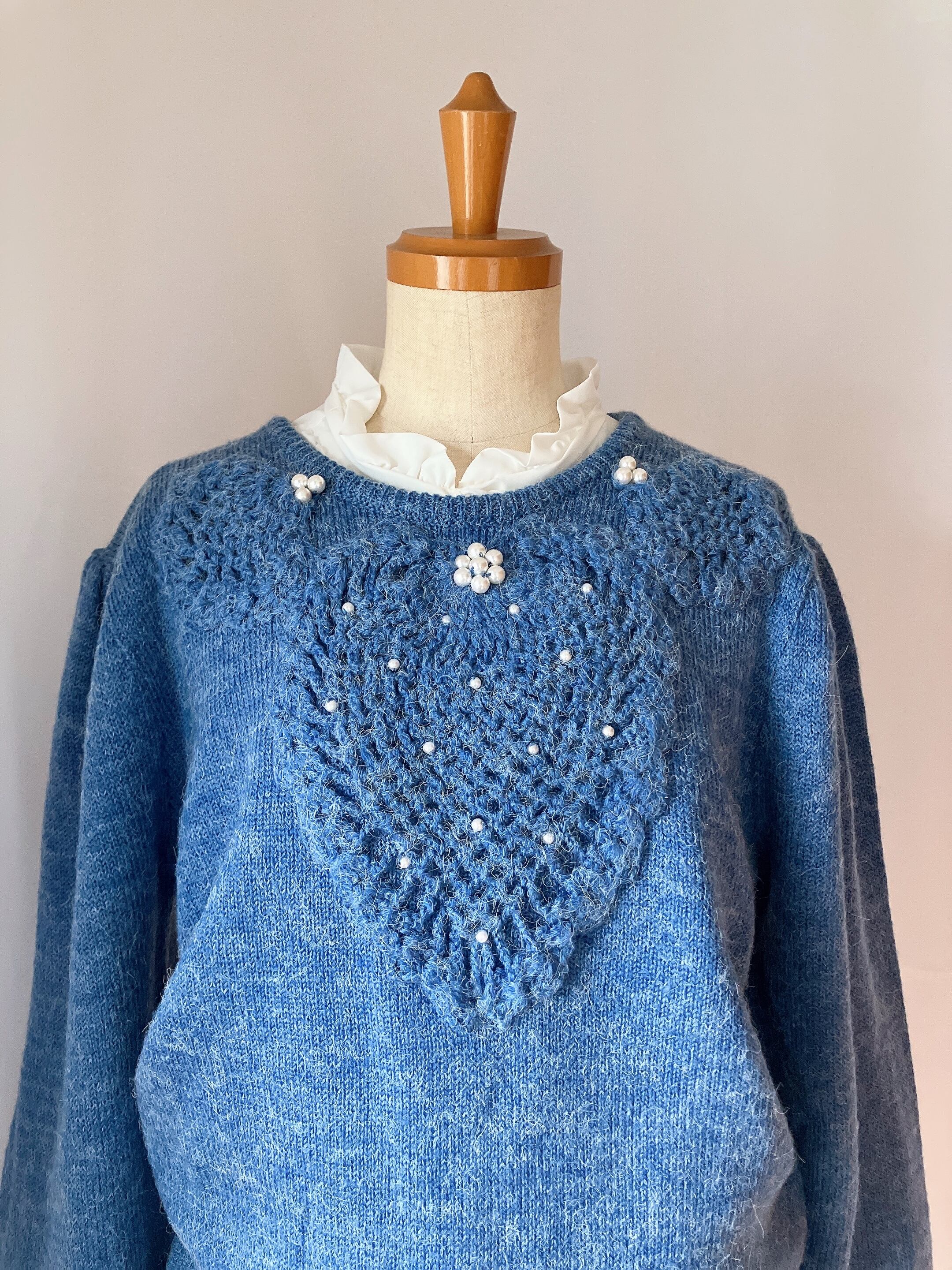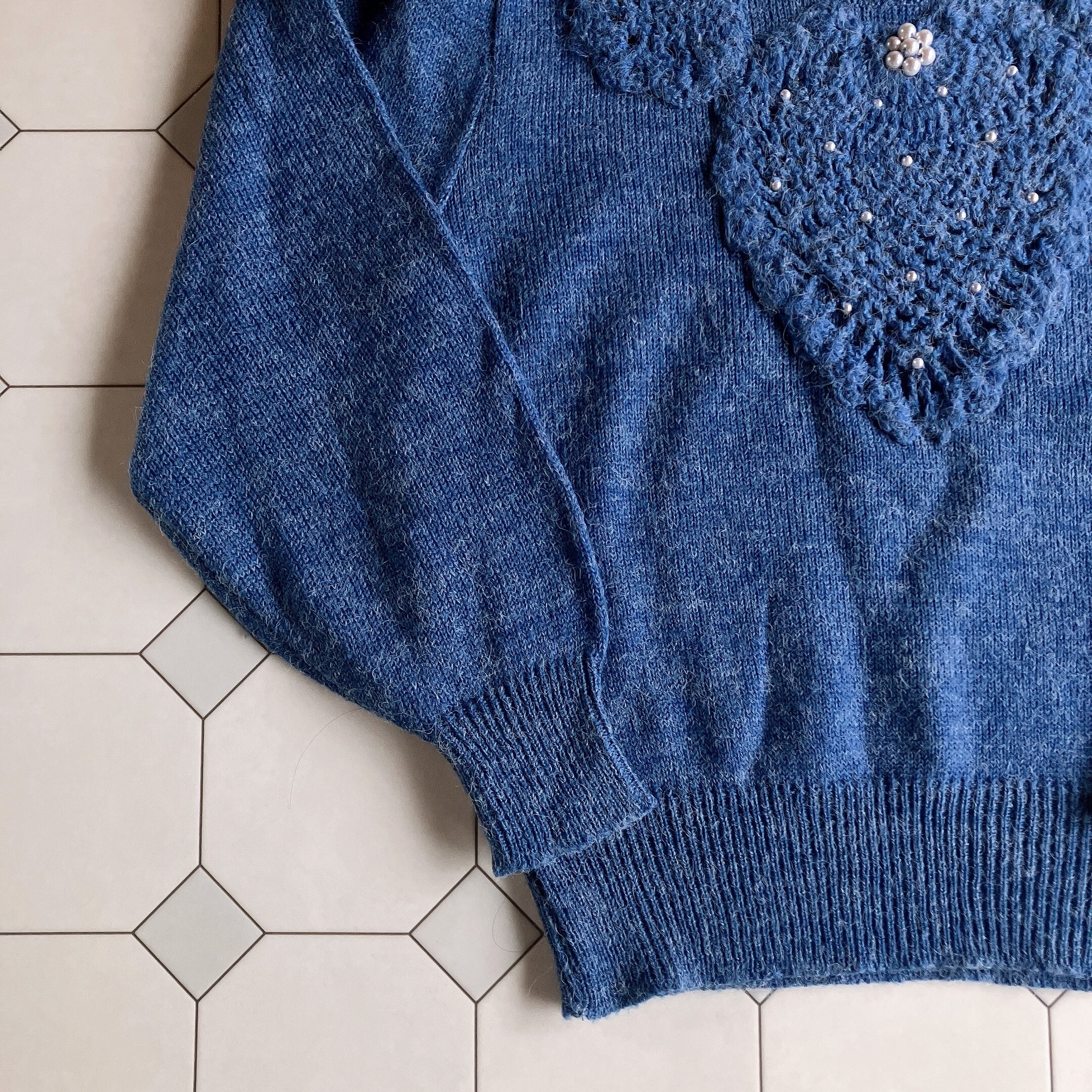 used レトロ 青 ビース装飾 ニットセーター古着 ヴィンテージvintage