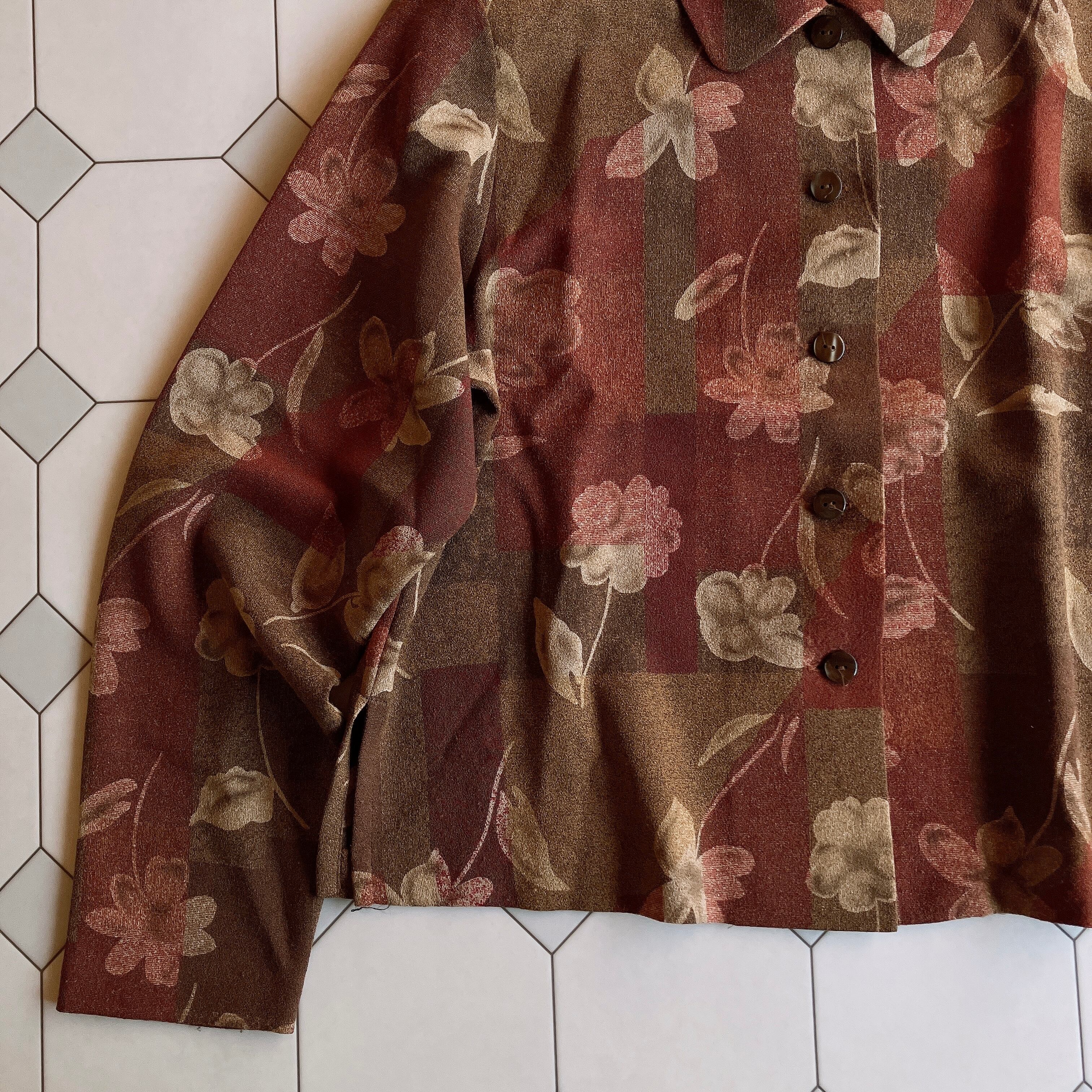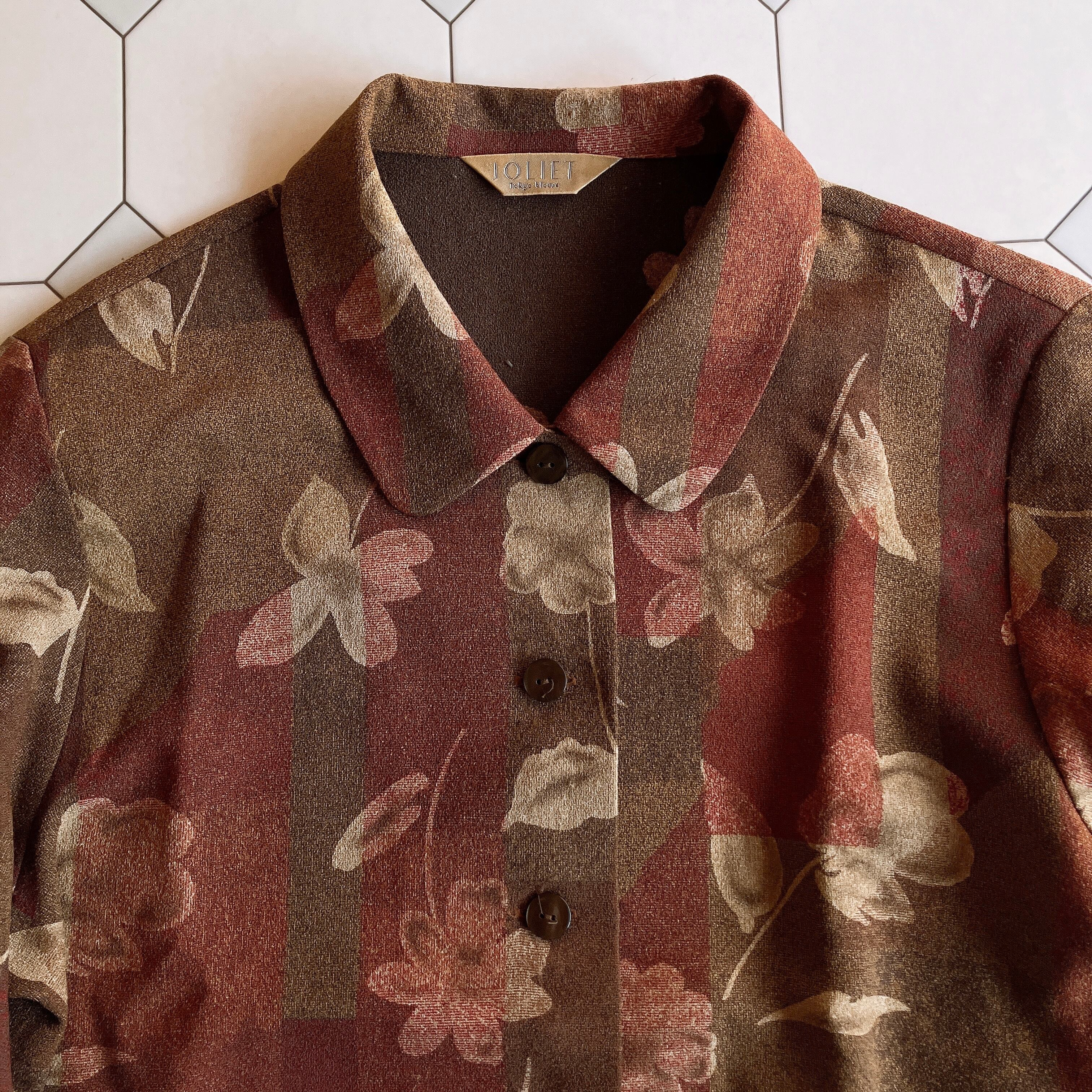 used レトロ 花柄 茶系 総柄ブラウス 古着 ヴィンテージ vintage