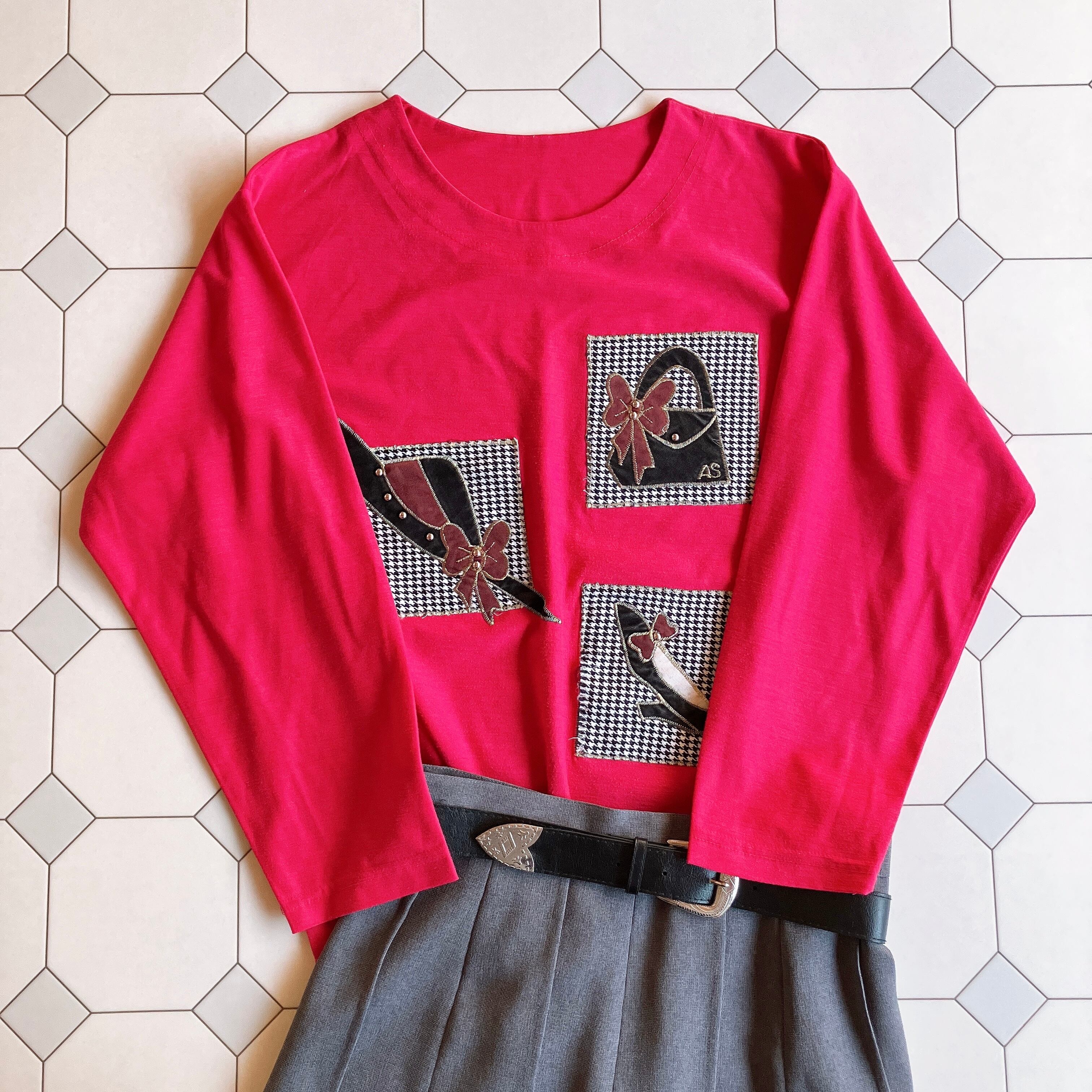 used レトロ ピンクワッペン トップス 古着 ヴィンテージ vintage