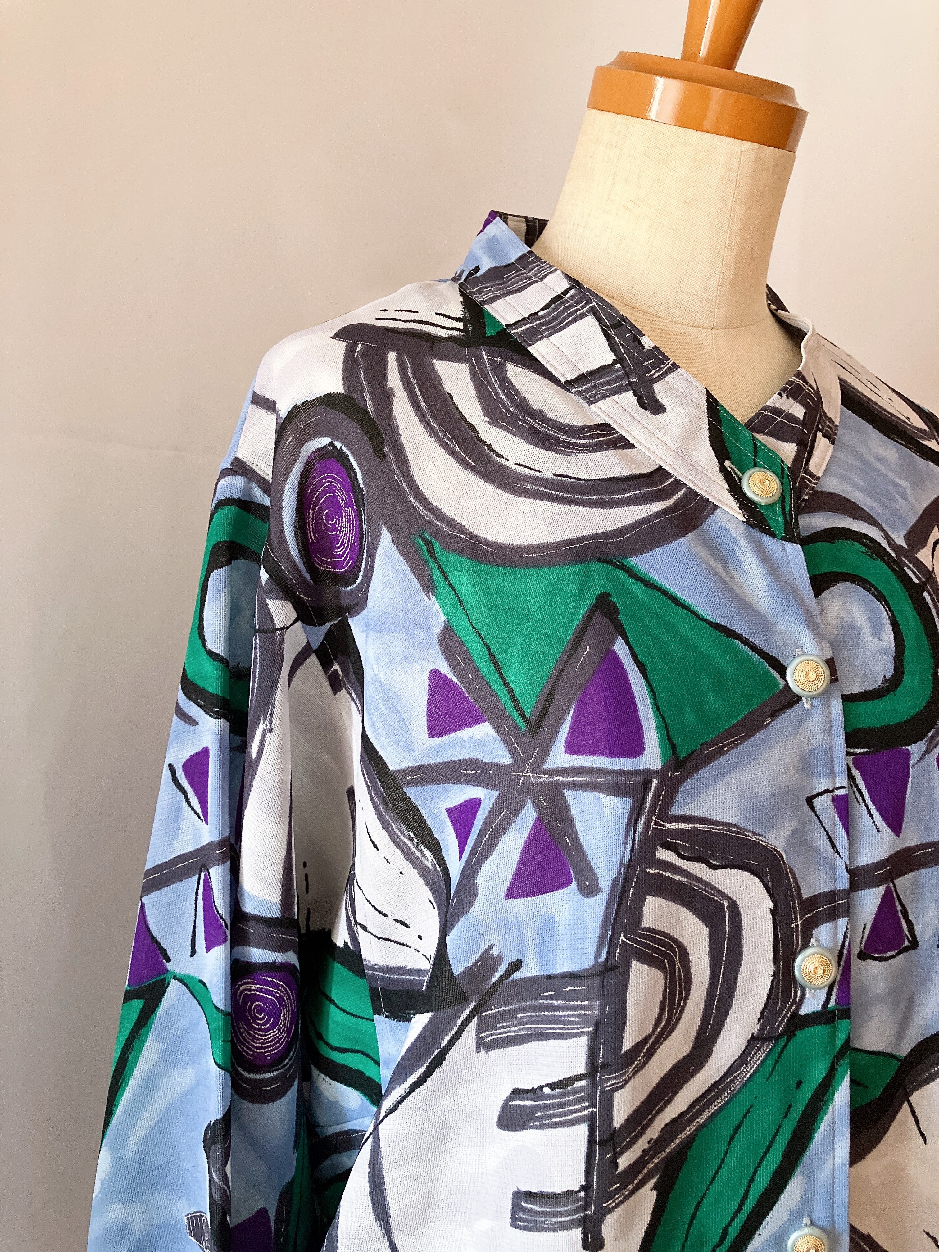 used レトロ アート総柄 シャツ 古着 ヴィンテージ vintage