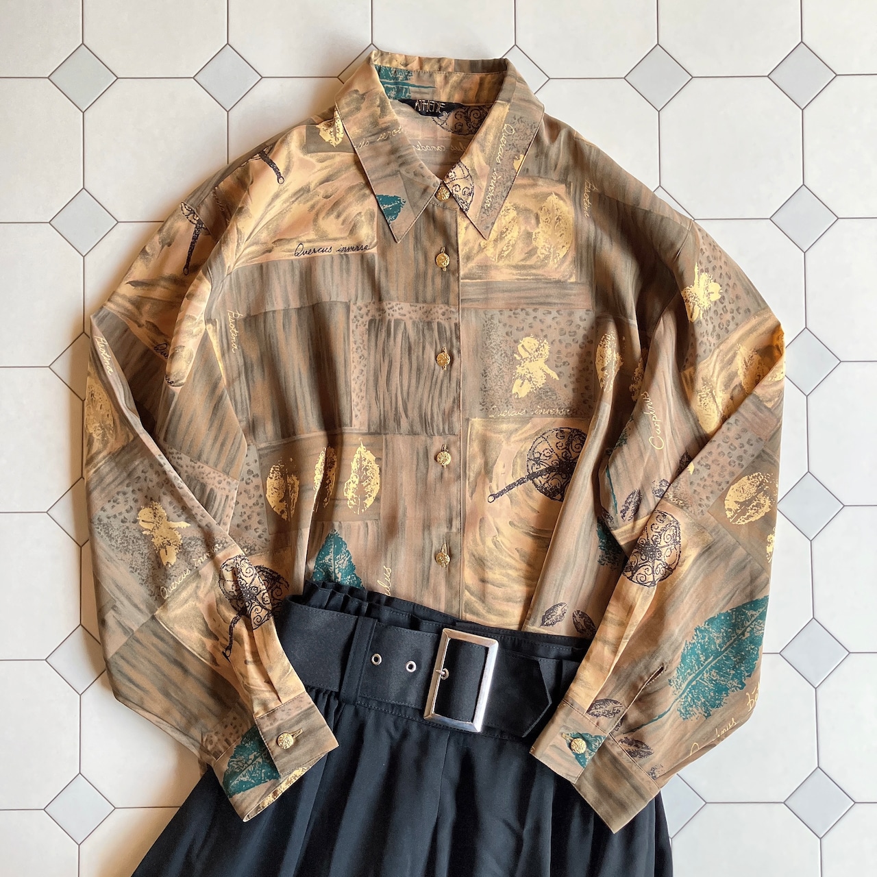 60s 70s 80s 90s の クラシカル で レトロ アンティーク ビンテージ / vintage ヴィンテージ なテイストの 古着 アート柄 総柄 個性的 希少 シャツ ブラウス ワンピース を出品しております。一点物 ユニセックス 古着 もたくさん扱っておりますので、ご覧下さいませ♪