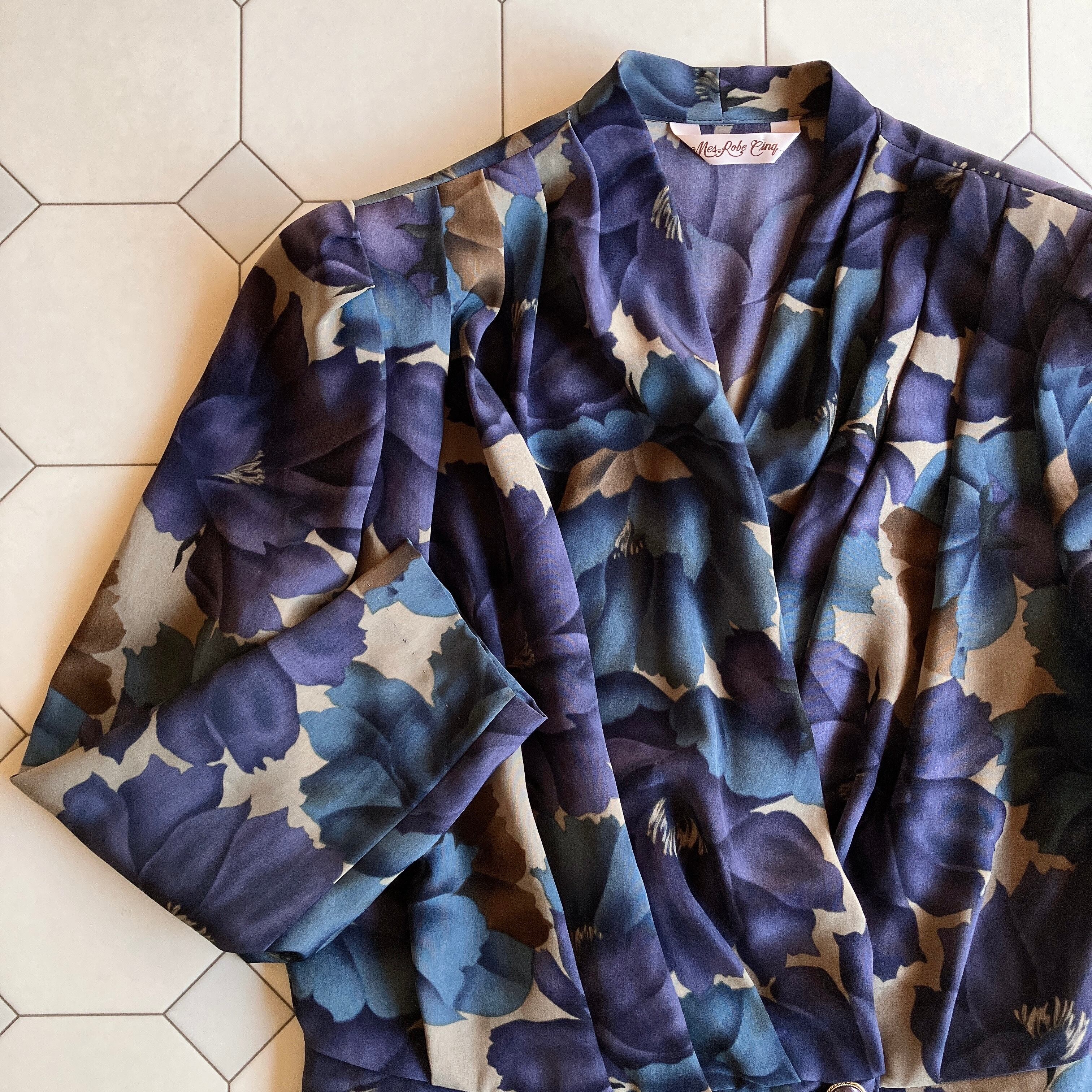used レトロ 花柄 ラップスタイルブラウス 古着 ヴィンテージvintage