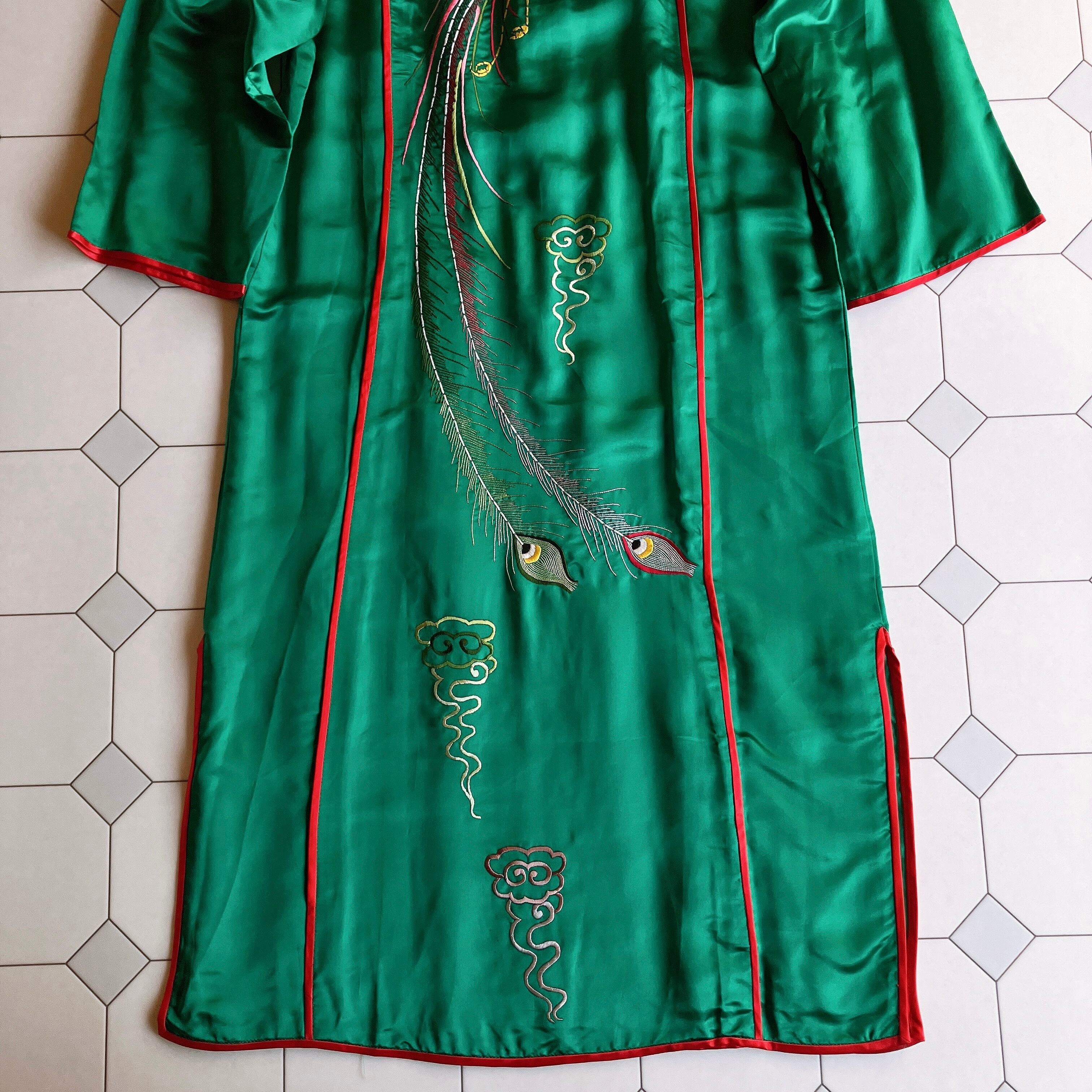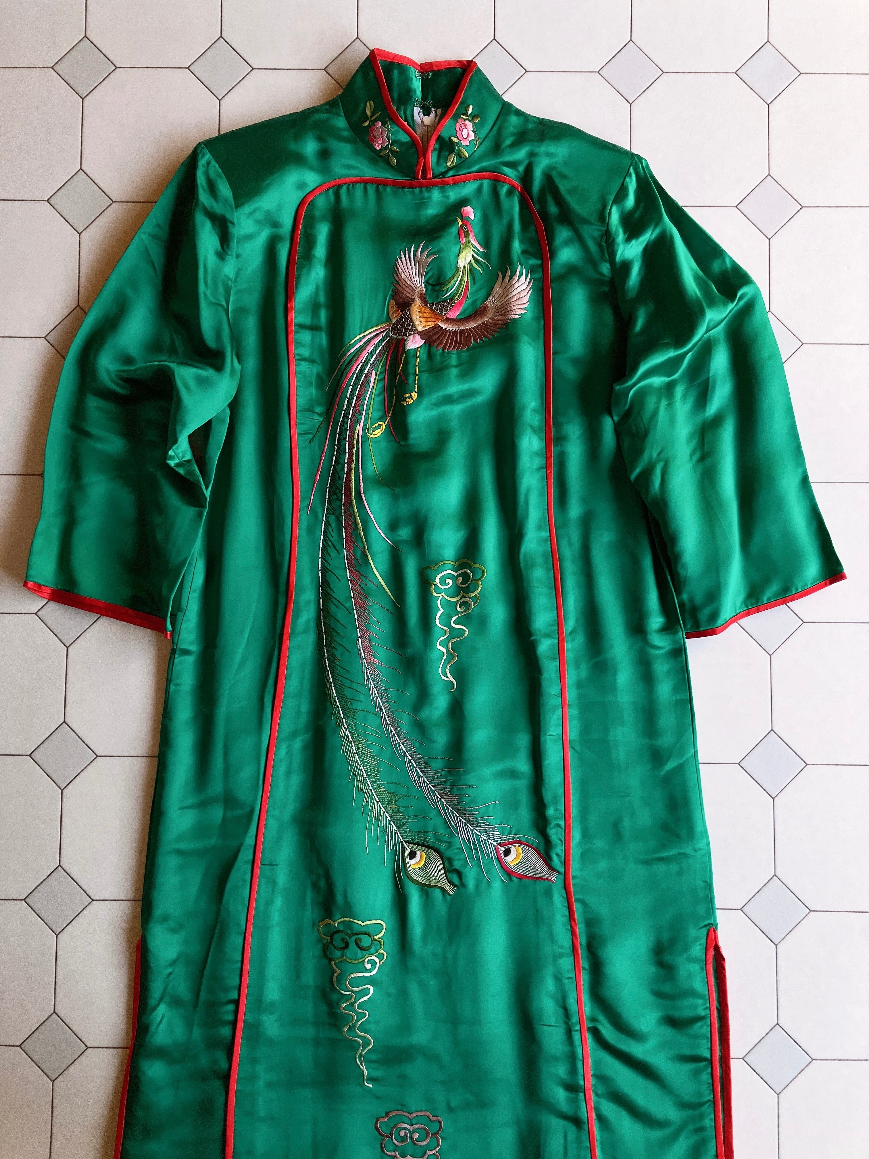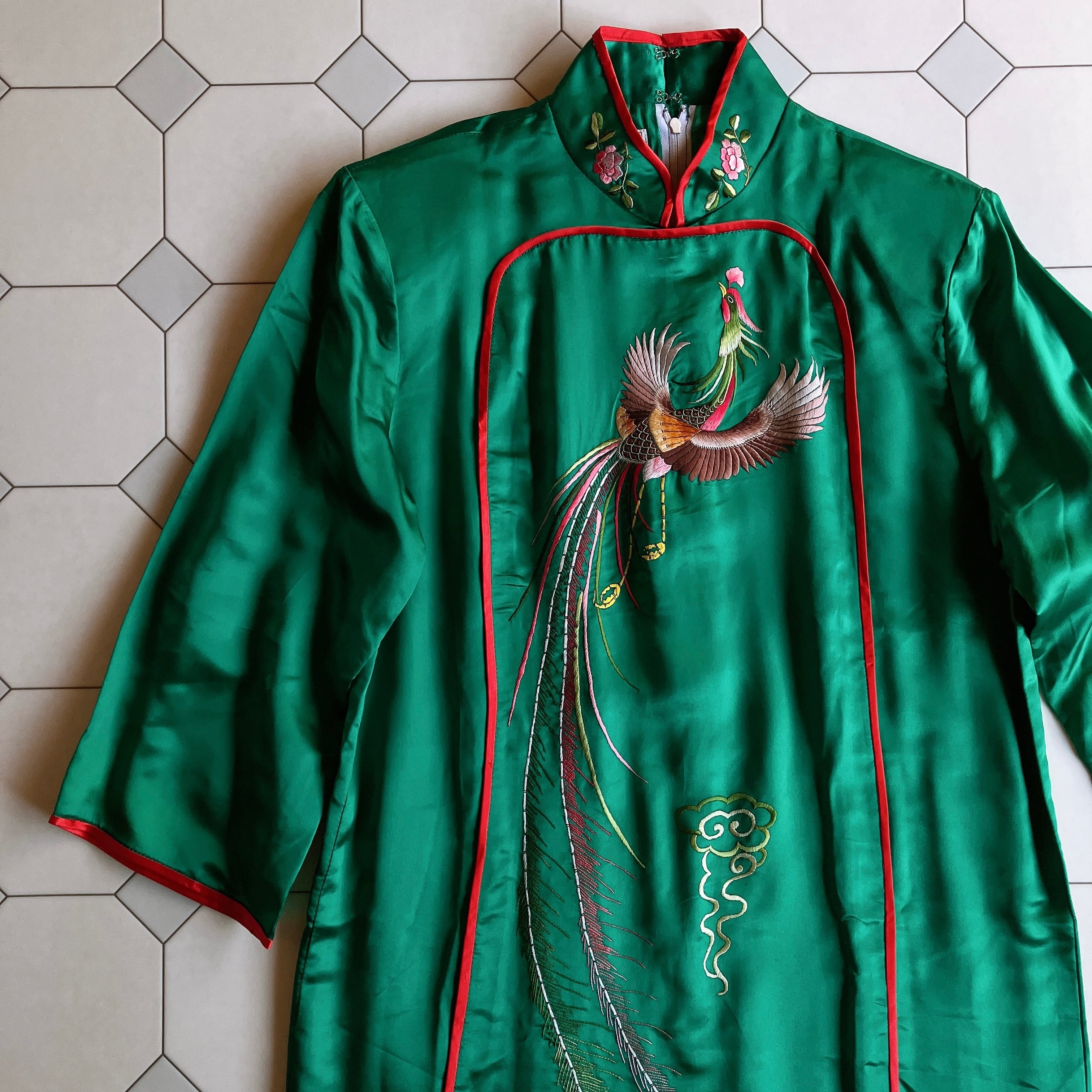 used レトロ 緑 刺繍 チャイナワンピース 古着 ヴィンテージvintage